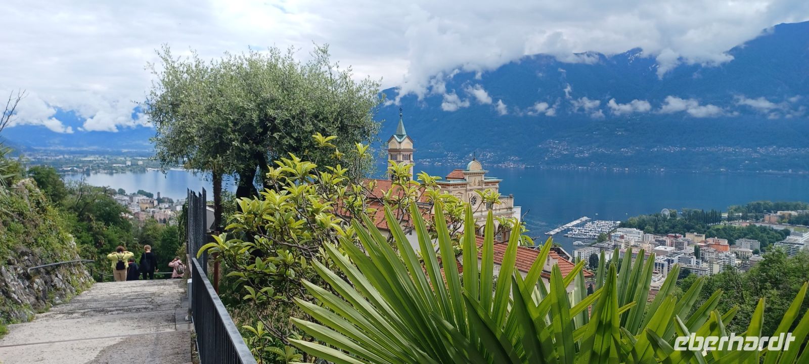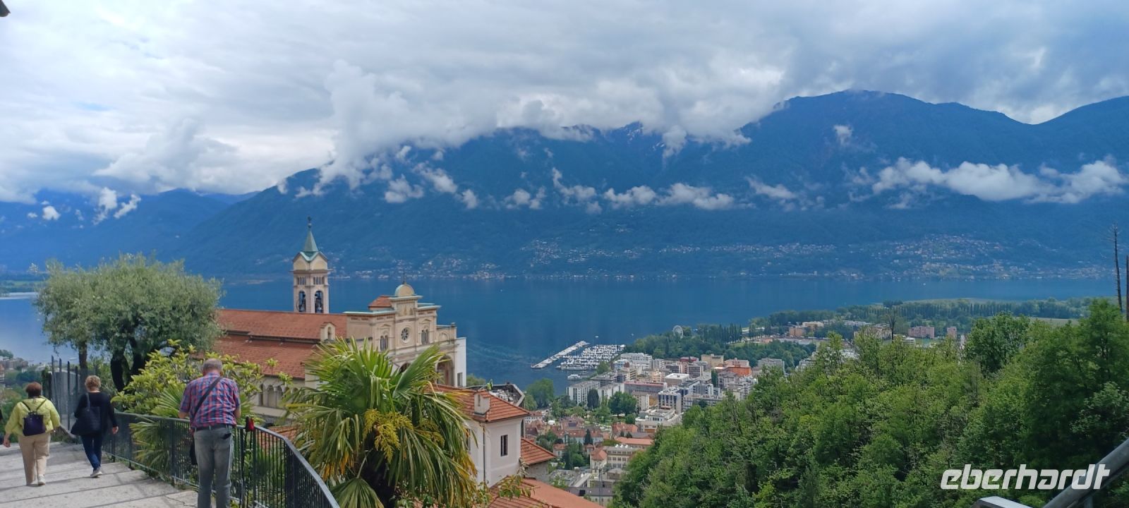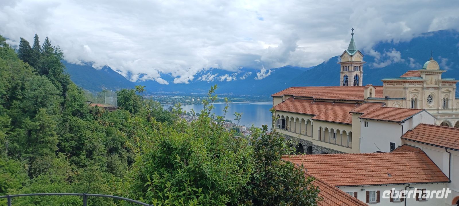 Da es unser letzter Ausflugstag ist, gedenken wir mit einem Fläschchen Campari Soda dem Erfinder des Bitterlikörs. Heute reisen wir mit einer touristischen Bahn von Domodossola im italienischen Piemont nach Locarno im Schweizerischen Kanton Tessin. Die internationale Verbindung zwischen Italien u. der Schweiz wurde 1923 durch einen Staatsvertrag eröffnet. Wir benötigen für die 51 km lange Strecke 1 h 45 Min. u. erleben eine herrliche Landschaftsfahrt. Den höchsten Punkt mit 836 m ü.M. erreichen wir auf der italienischen Seite in Santa Maria Maggiore. In Locarno fahren wir über einen Tunnel ein. Gleich am Bahnhof befindet sich die Standseilbahn zur Wallfahrtskirche Madonna del Sasso. Die Klosteranlage liegt auf einem Felsvorsprung in 376 m Höhe. Die Sicht auf Locarno, der nördlichsten Stadt am Lago Maggiore, ist wunderbar. Einige Gäste "pilgern" den Weg zurück zur Altstadt. Wir verbringen eine gute Stunde bei einem Bummel u. treffen uns am Schokoladenlädchen "Läderach", wo die Gelegenheit besteht, ein hübsch verpacktes Schokoladensouvenir aus der Schweiz zu erwerben. Noch ein letztes Mal genießen wir während der Rückfahrt die Küstenstraße am Lago Maggiore von Norden südwärts über Verbano nach Baveno.