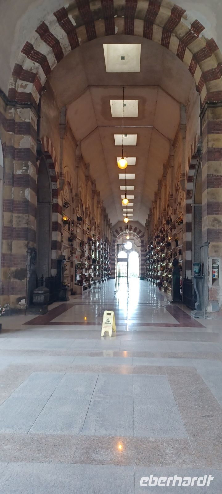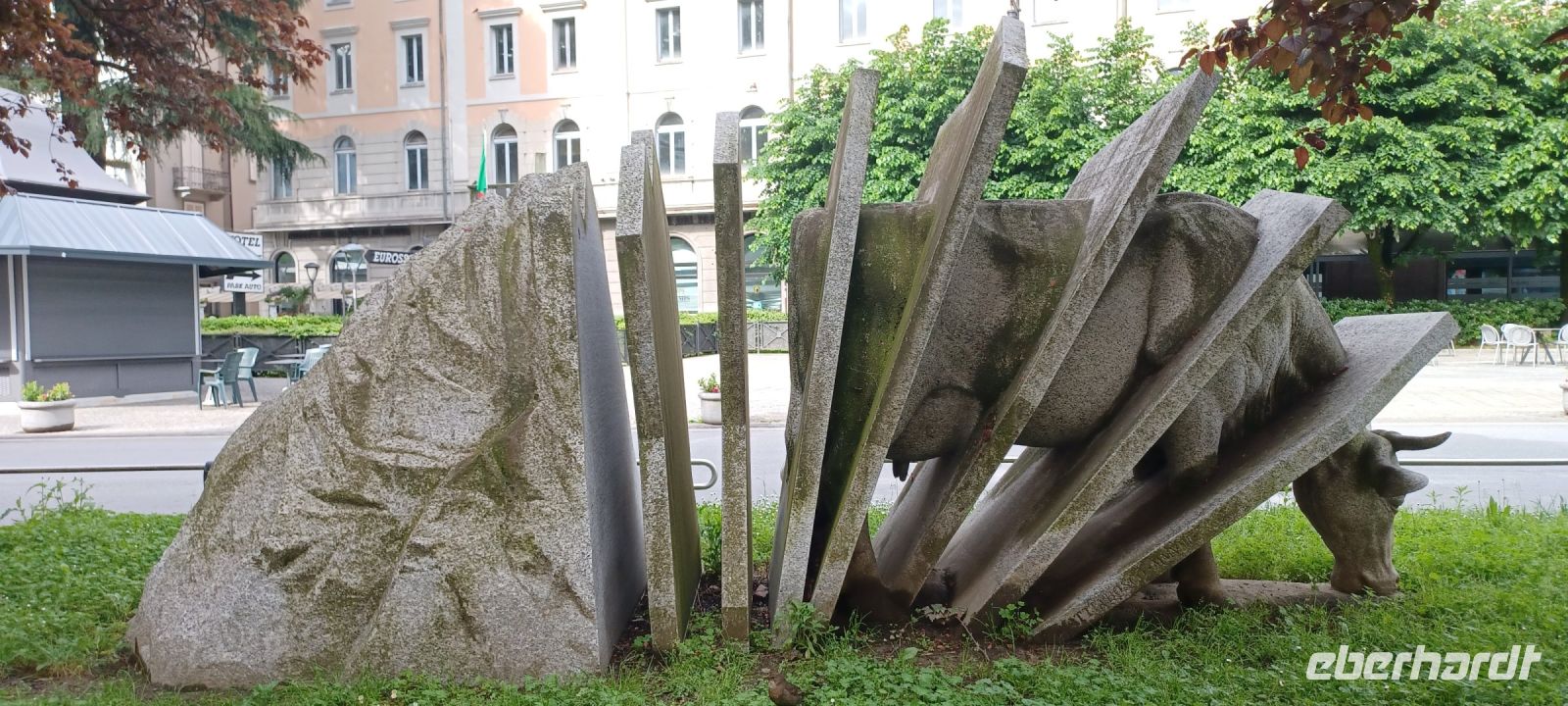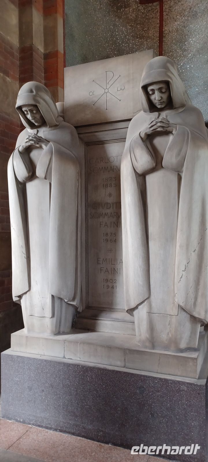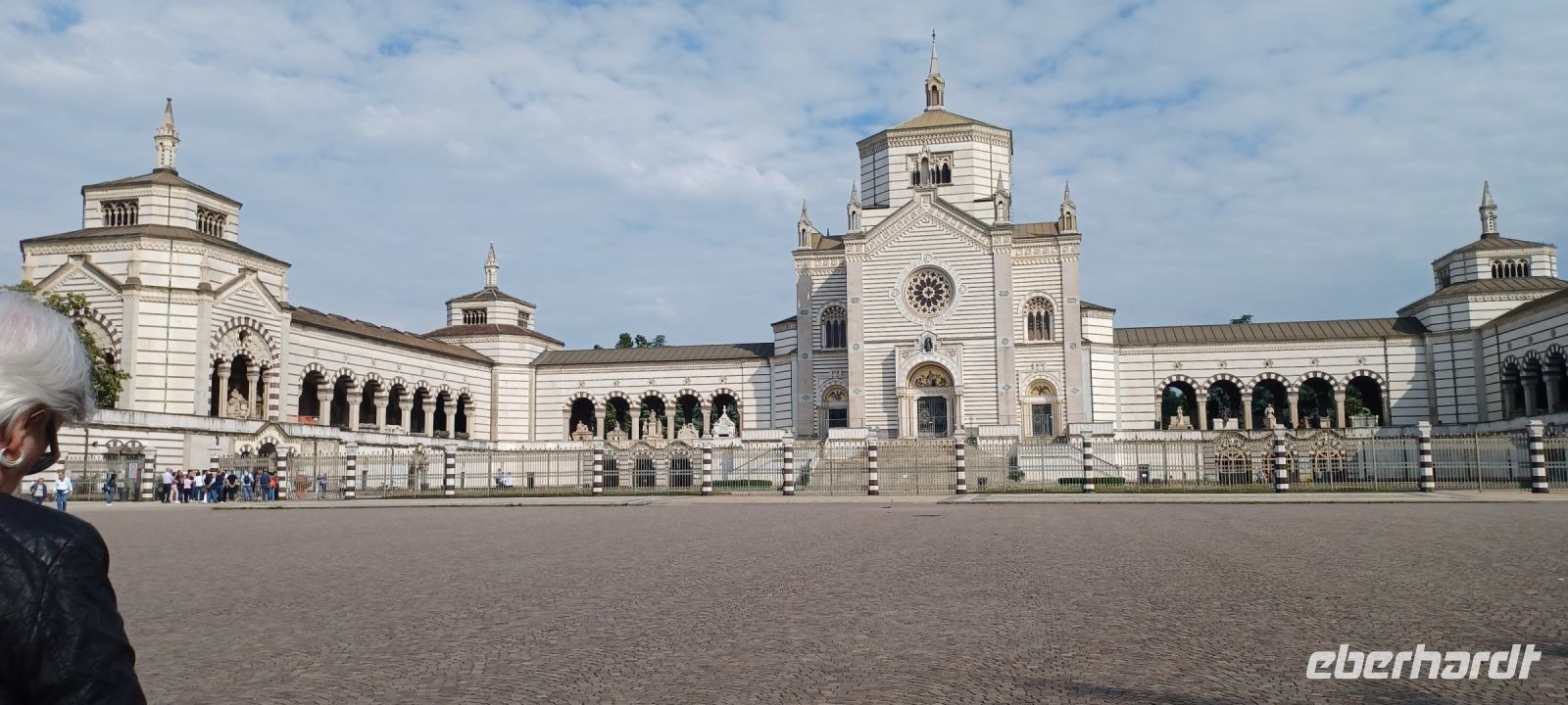 Mailand am Sonntag: es war ein guter Plan, die Hauptstadt der Lombardei auf diesen Tag zu legen, zumal wir mit viel Glück fast alle Wünsche erfüllen können: wir haben Muttertag u. unsere Reiseleiterin spendiert einen original Mailändischen Panettone (italienischer Hefekuchen); die Verkehrslage ist ungewöhnlich ruhig, daher erreichen wir Mailand vorzeitig!! Am Monumentalfriedhof treffen wir unseren Stadtführer, Giorgio. Während seiner Ausführungen beim Rundgang über den geschichtsträchtigen u. künstlerische gestalteten Friedhof stellt sich schnell heraus, dass Giorgio Kunst u. Architektur studiert hat u. er dieses Feld auch durch eigene Literaturbeiträge beherrscht. Wir folgen seinen Ausführungen an ausgewählten Grabstätten von Mailands Persönlichkeiten. Sehr imposant das Grabmal der Unternehmerfamilie Campari: der Künstler Giannino Castiglioni hat 1939 das Abendmahl von Leonardo da Vinci als bronzene Plastik geschaffen.