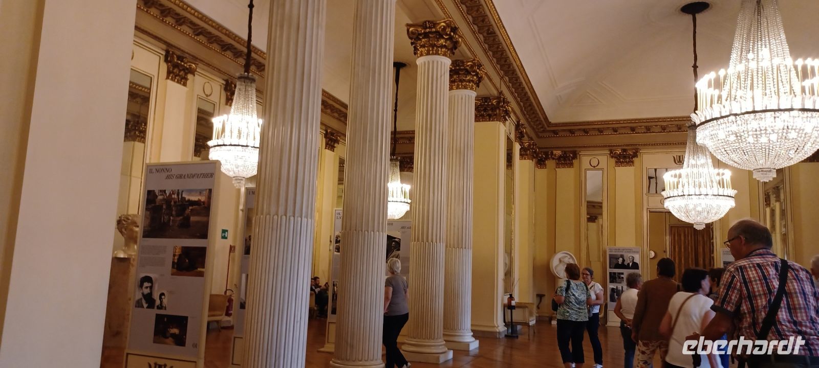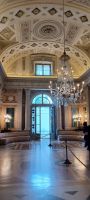 Nach dem Besuch des Friedhofes folgt eine kleine Busrundfahrt im sogenannten Innenring der Stadt, der Kernstadt. Wir steigen an der Mailänder Scala aus u. haben, trotz Balletprobe zum Stück "La Bayadère", die Möglichkeit durch ein Sichtfenster in den Theatersaal zu schauen. Giorgio erläutert uns ausführlich das Theatermuseum mit allen Räumen u. weist darauf hin, dass wir mit unseren Tickets in der Freizeit nach