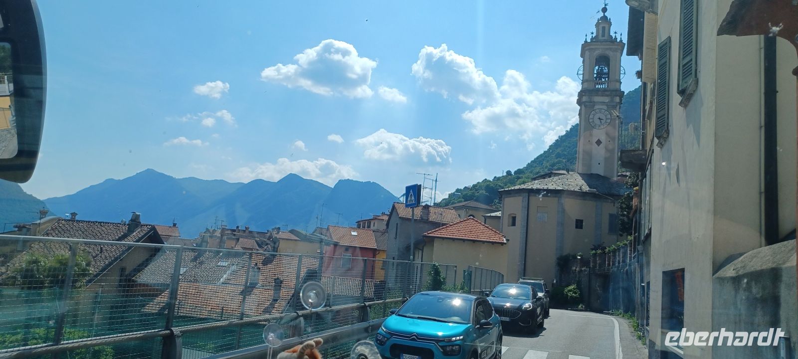 Vor Locarno kommen wir dennoch in den täglichen Feierabendstau, der die Menschen aus den wirtschaftlichen Ballungszentren auf die Orte um die drei Seen (Luganer See, Comer See u. Lago Maggiore) verteilt. Unser Fahrer, Jörg Demmrich von der Firma Reichelt, bekommt nach Ankunft einen anerkennenden Applaus für seine Fahrleistung.