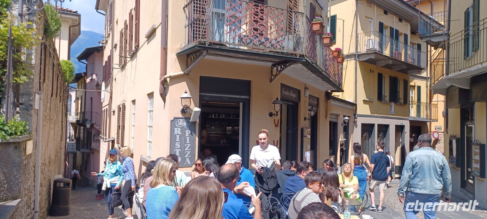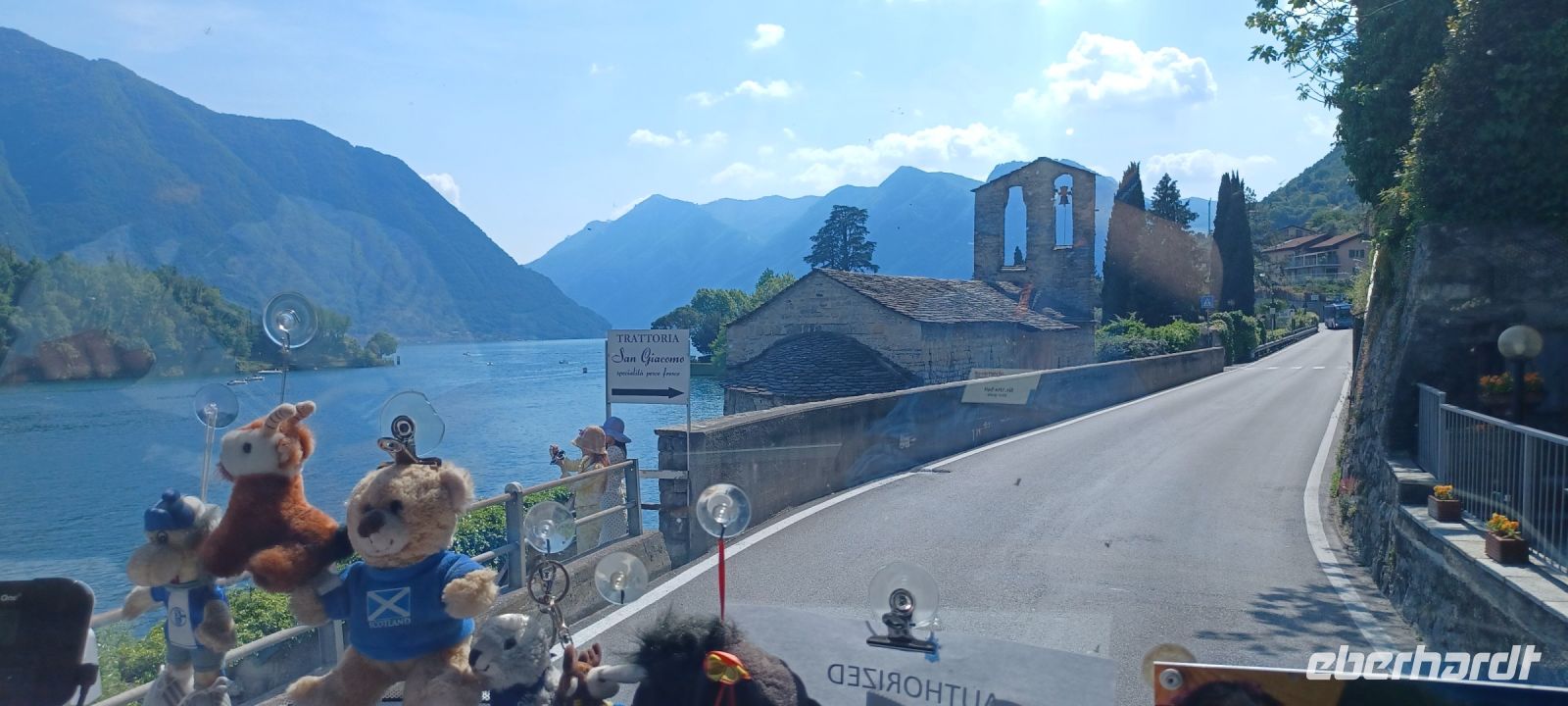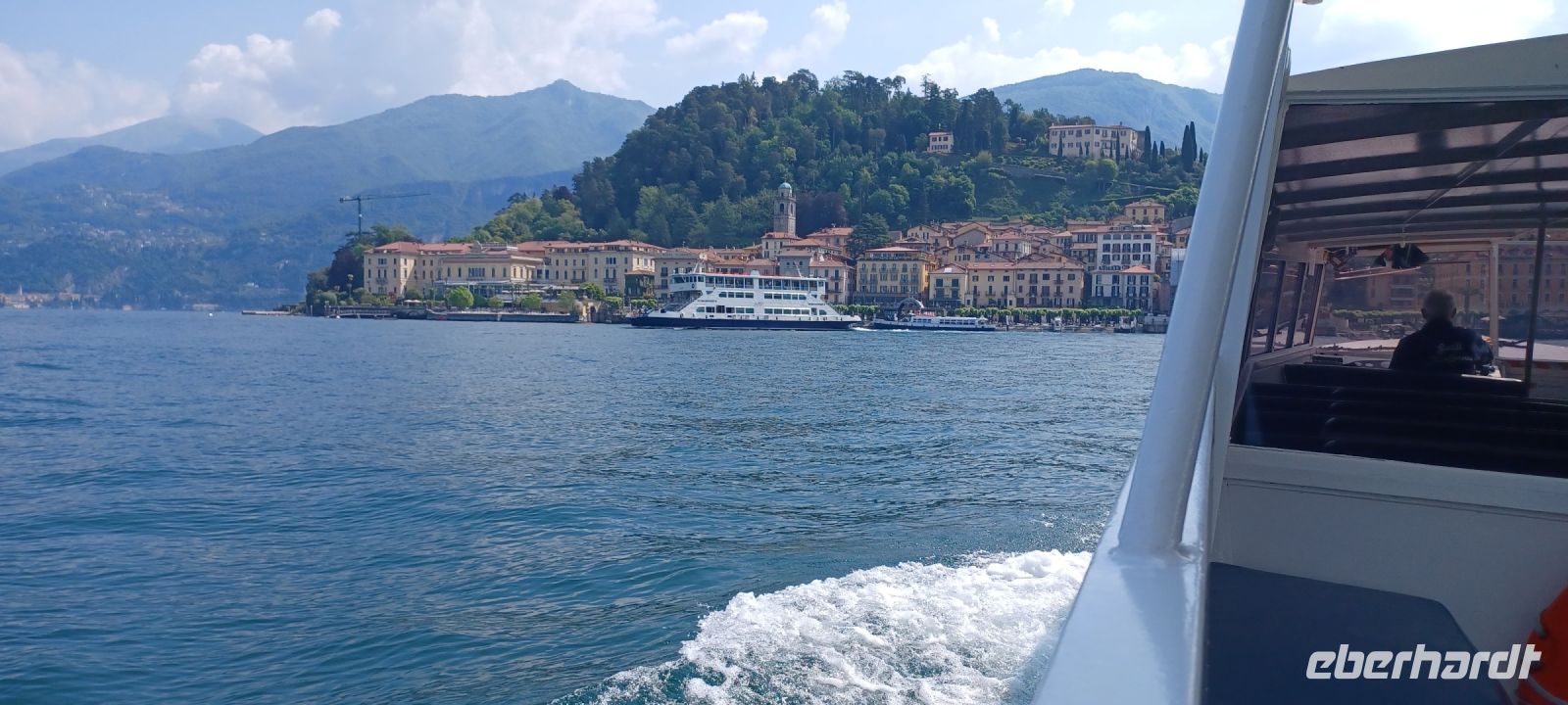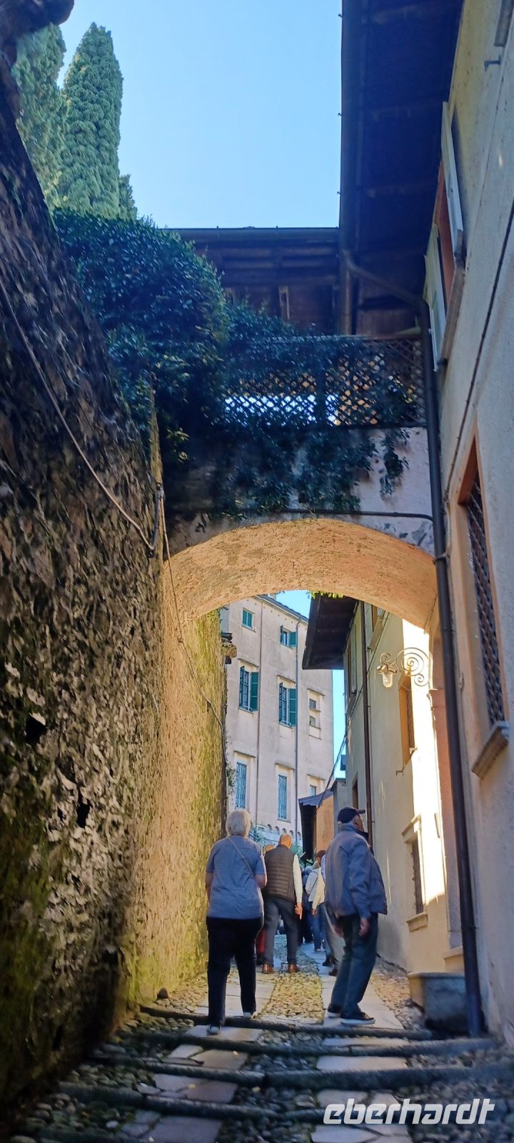Wir sind schon mal von dem zusätzlichen Highlight des Ausfluges begeistert u. sind nun gespannt auf die Insel Bellagio, die bereits mit der Überfahrt ihren gesamten bebauten Inselstreifen präsentiert. Wir spazieren zunächst gemeinsam durch die Altstadt, hinauf durch enge Gassen bis zum Piazza dela Chiesa mit der romanischen Kirche San Giacomo. Wir versehen uns mit einem Stadtplan u. erkunden die Altstadt weiter individuell. Zunehmend wird es voll auf der Insel: eine große Autofähre bringt stündlich Touristenströme - wir wollen uns gar nicht vorstellen, welchen Überhang an Besuchern die Insel in der Ferienzeit aushalten muss. Wir genießen die viel zu kurze Bootsrückfahrt. Es war wieder ein sonnenreicher schöner Tag mit vielen Eindrücken.