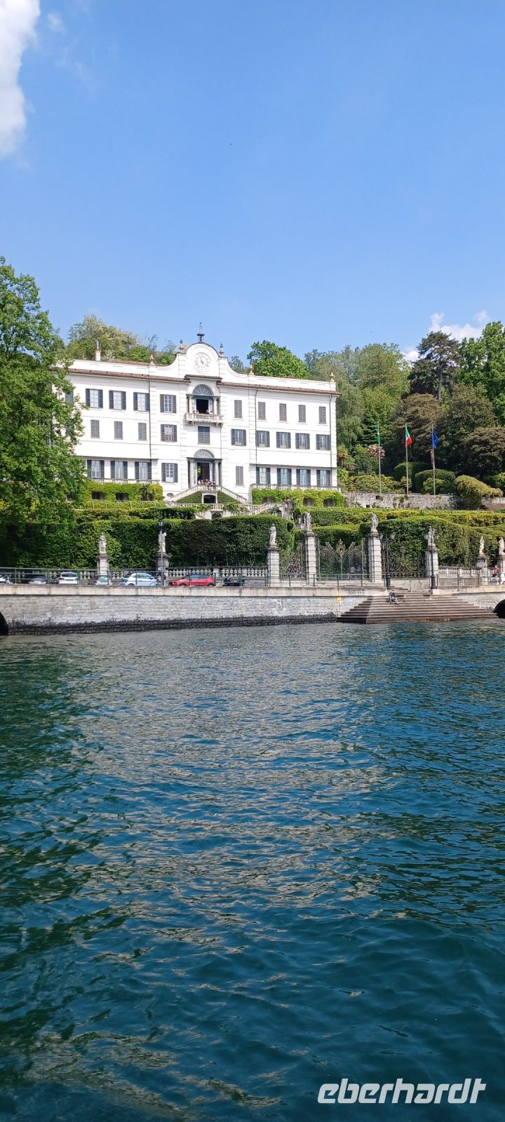 Der Comer See ist nach der Wasserfläche der drittgrößte See Italiens nach dem Gardasee u. dem Lago Maggiore. Er liegt in einem Zungenbecken des ehemaligen Addagletschers, weshalb er mit dieser charakteristische Form auch auf dem Kartenmaterial hervorsticht. Wir befahren von Süden die "linke Zunge", die Küstenstraße. Im Vergleich zur Küste vom Lago Maggiore fällt auf, dass die Ufer von steil hochragenden Bergen gesäumt sind, die zahlreichen hübschen Orte liegen z.T. ebenfalls hoch über dem See, verbunden durch eine, sich durch die Berge schlängelnde schmale Küstenstraße. Wir folgen der Küstenstraße mit phantastischem Blick auf die Altstadt Comos mit dem Domplatz u. auf bewaldete kleine Inseln mit Burgruinen. Wir passieren kleine Fischerorte direkt durch die Hauptgassen, eng an alten farbigen Wohnhäuser vorbei, deren Fassadenvorsprünge fast unseren Bus berühren zu scheinen. In Tremezzo haben wir noch Zeit bis zur Bootsüberfahrt zur Insel Bellagio, so dass wir die berühmte Villa Carlotta mit ihrem prächtigen Garten besichtigen können. Alle Gäste schließen sich mit einem Gruppenticket an. Die Villa ist eine Sommerresidenz aus dem 18. Jahrhundert u. ist heute ein Museum mit einer großzügigen und mehrfach gegliederten Parkanlage. Sie war seit 1850 im Besitz des Fürstenhauses Sachsen-Meiningen, bis der italienische Staat sie nach dem Ersten Weltkrieg konfiszierte. Die gesamte Parkanlage nimmt eine Fläche von ca. 8 ha ein und besteht aus unterschiedlichen Abschnitten. Unmittelbar um die Villa, zum Seeufer hin, liegt der italienische Garten mit geschnittenen Hecken und Pergolen mit Orangen- und Kamelienbäumchen. Den Hang aufwärts breitet sich der Rhododendron- und Azaleengarten aus. Der Bambusgarten bietet auf einer Fläche von 3000 m² über 25 Bambusarten, ein englischer Gartenteil mit einer künstlichen Schlucht.