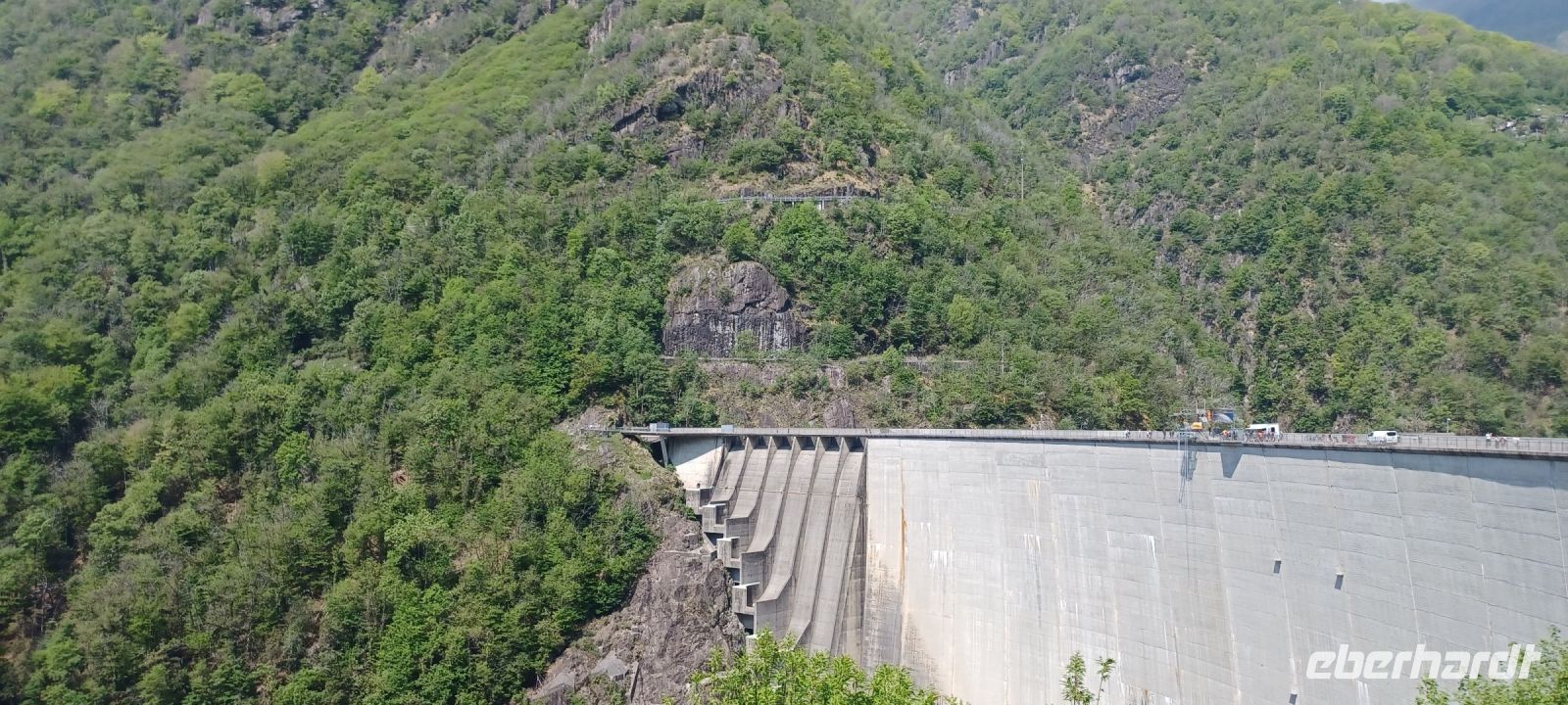 Das Verzascatal liegt im Schweizerischen Kanton Tessin. Es bildet mit dem Fluss Verzasca u. zahlreichen Wasserfällen ein schmales, wildes Tal, an dessen Hängen sich traditionelle Dorfstrukturen erhalten haben. Der einzige Talzugang für den Autoverkehr und das Postauto ist im Süden ab Tenero oder Gordola. Die auf der linken Talseite beginnende Kantonstrasse führt über Vogorno, Lavertezzo, Brione (Verzasca), Gerra (Verzasca), Frasco und endet in Sonogno. Sie wurde erst in den Jahren 1866 bis 1871 gebaut. Bis Sonogno darf unser Bus nicht mehr fahren, da die Straße zu schmal wird. Überhaupt haben wir für die Anfahrt eine Ausnahmegenehmigung, da unsere Bus die zugelassenen Länge von 13000 mm um 115mm überschreitet. Nach unserem Stopp an der Römerbrücke fährt der Bus leer weiter um eine Wendenische zu finden. Die Römerbrücke mit ihren zwei Bögen überquert im Dörfchen Lavertezzo die Verzasca. Doch neben diesem architektonischen Denkmal gibt es noch ein weiteres Highlight des Verzascatals - die Staumauer einer der höchsten Staudämme Europas (220 m).