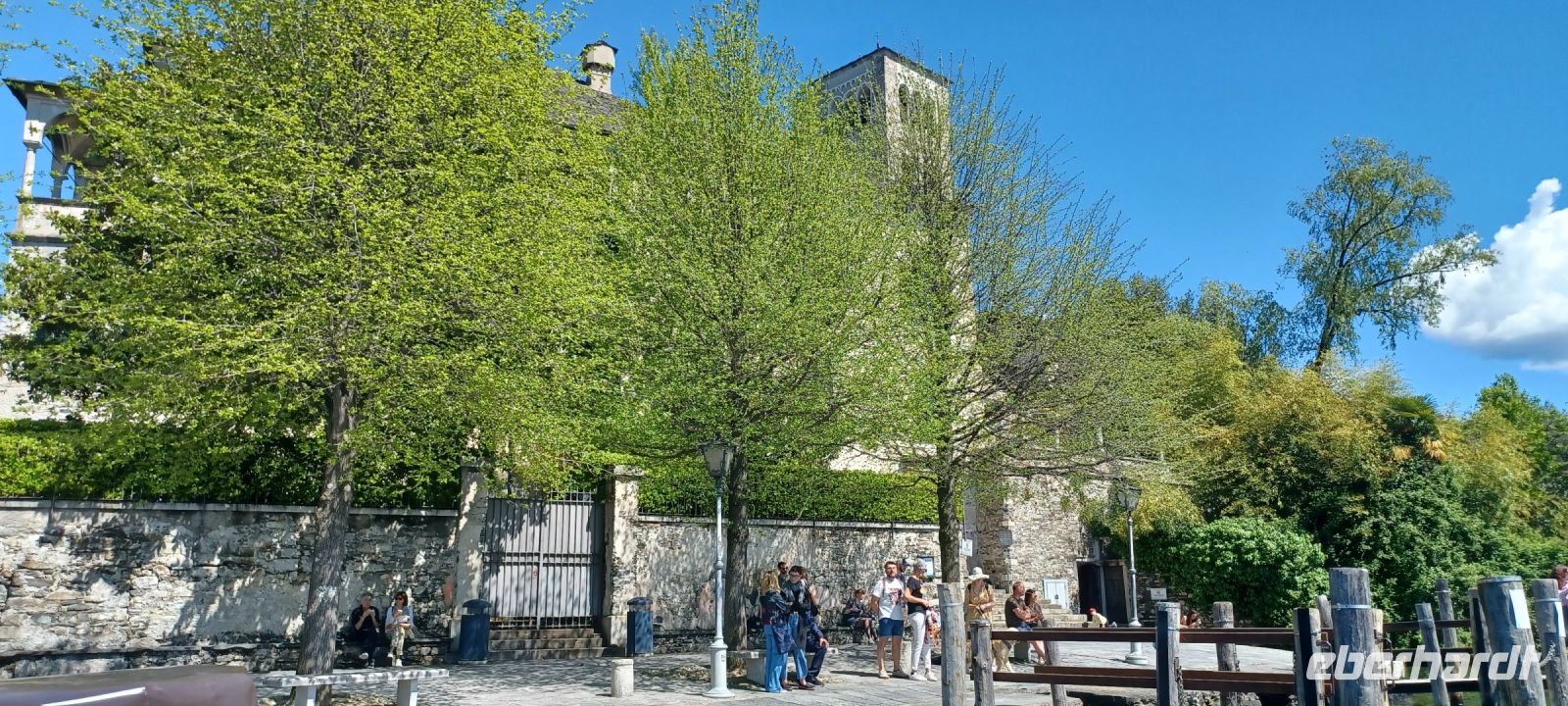 die Kirche Santa Maria Assunta zum Piazza de Motta mit dem Hafen u. dem ehemaligen alten Rathaus mit bemaltem Wanddekor. Von hieraus überqueren wir den See in 4 Minuten bis zur Insel San Giulo mit der Basilica u. dem Bischofspalast. Wir umlaufen das Palastareal von rechts nach links, "den Weg der Stille" oder von links nach rechts "den Weg der Erkenntnis". Beide Wege werden durch Sinnsprüche für den "Pilgerer" flankiert. Nach dieser kurzen Verweildauer überqueren wir den See zurück u. bummeln in individueller Freizeit in den Mittag hinein.