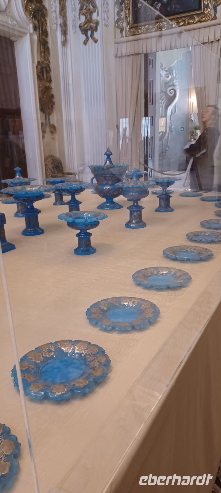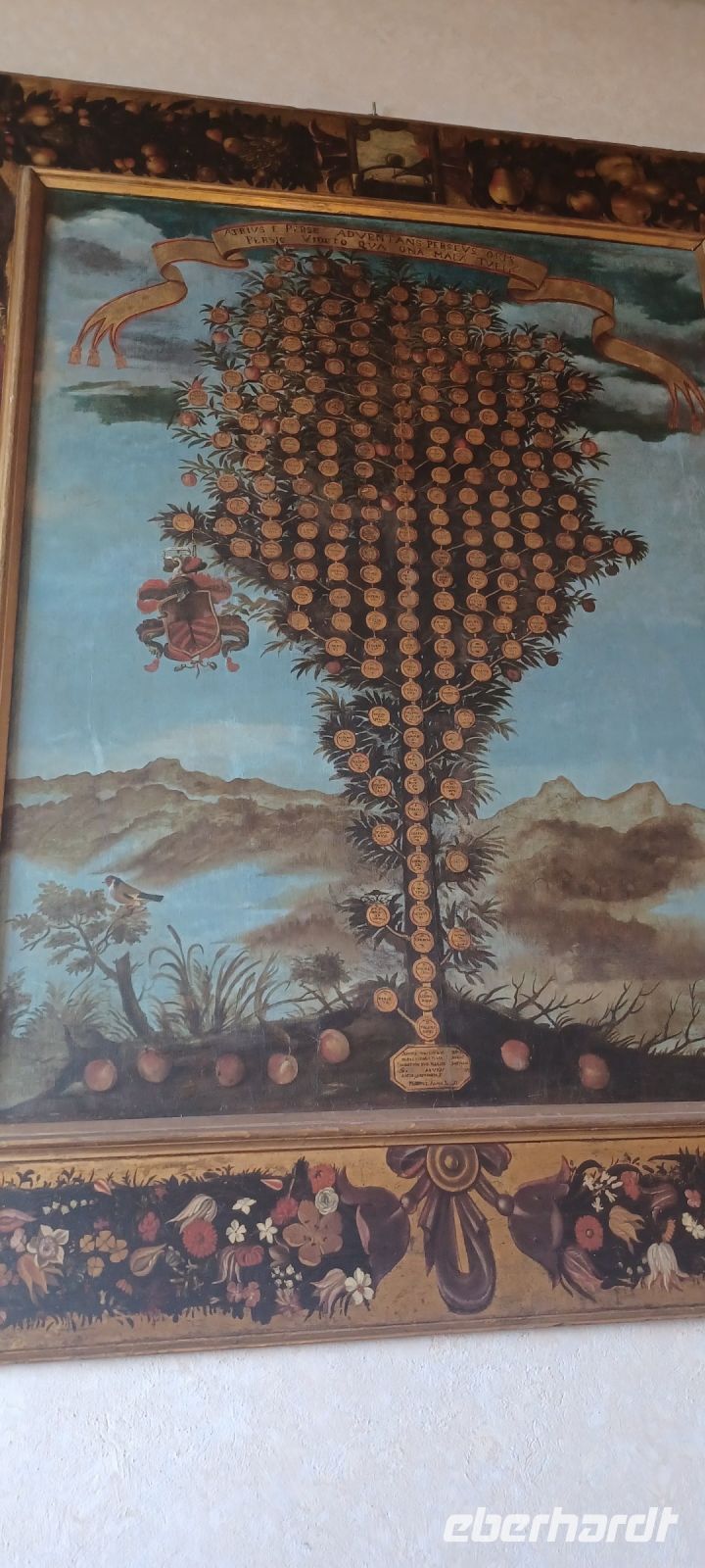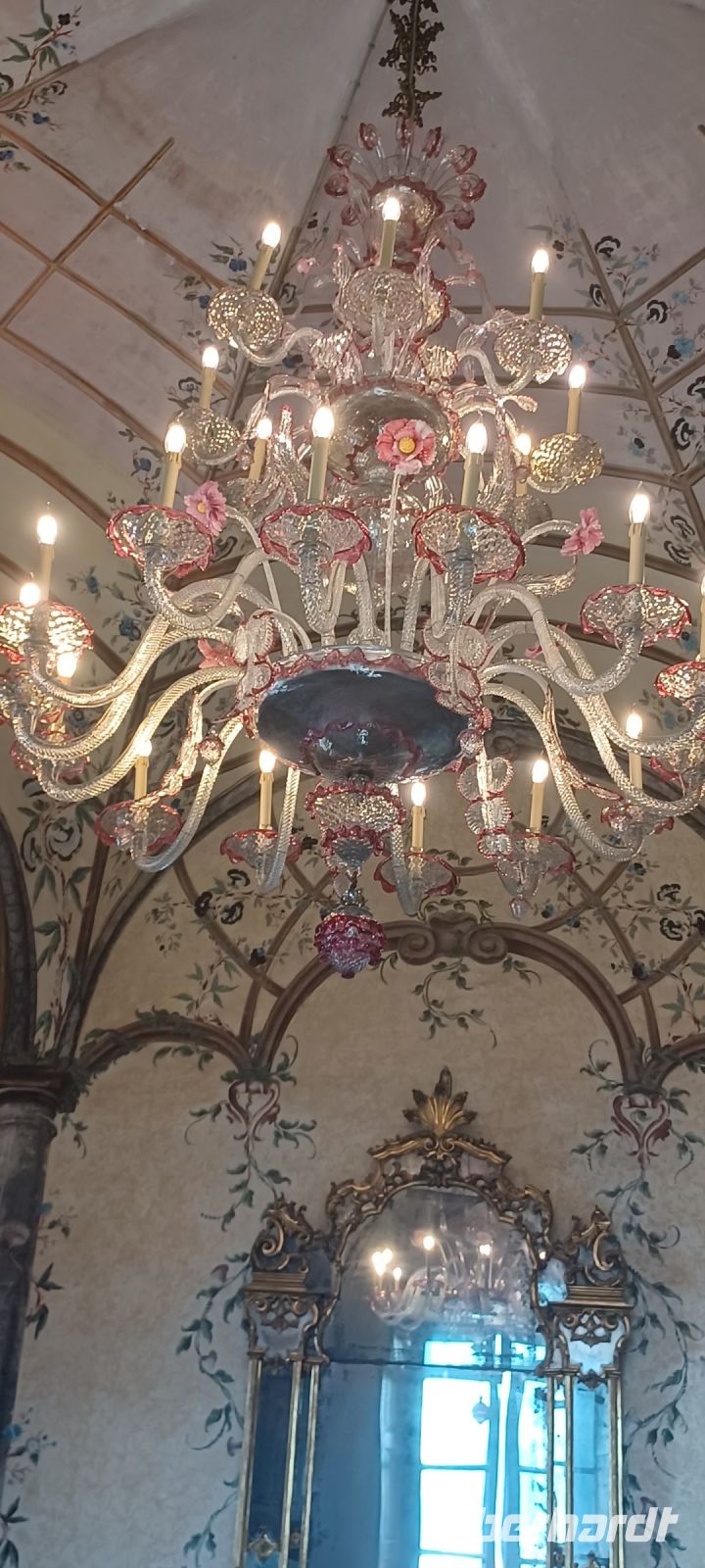 Im Untergeschoss des Schlosses erstrecken sich sechs Grotten, die mit Kies, Tuffstein u. Marmor ausgestaltet sind u. eine kühle Atmosphäre in den Sommermonaten den Schlossbewohnern versprach.