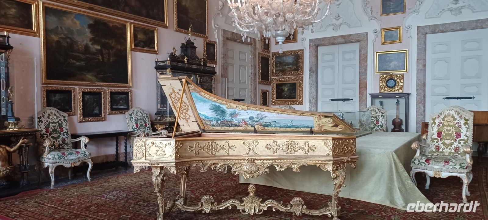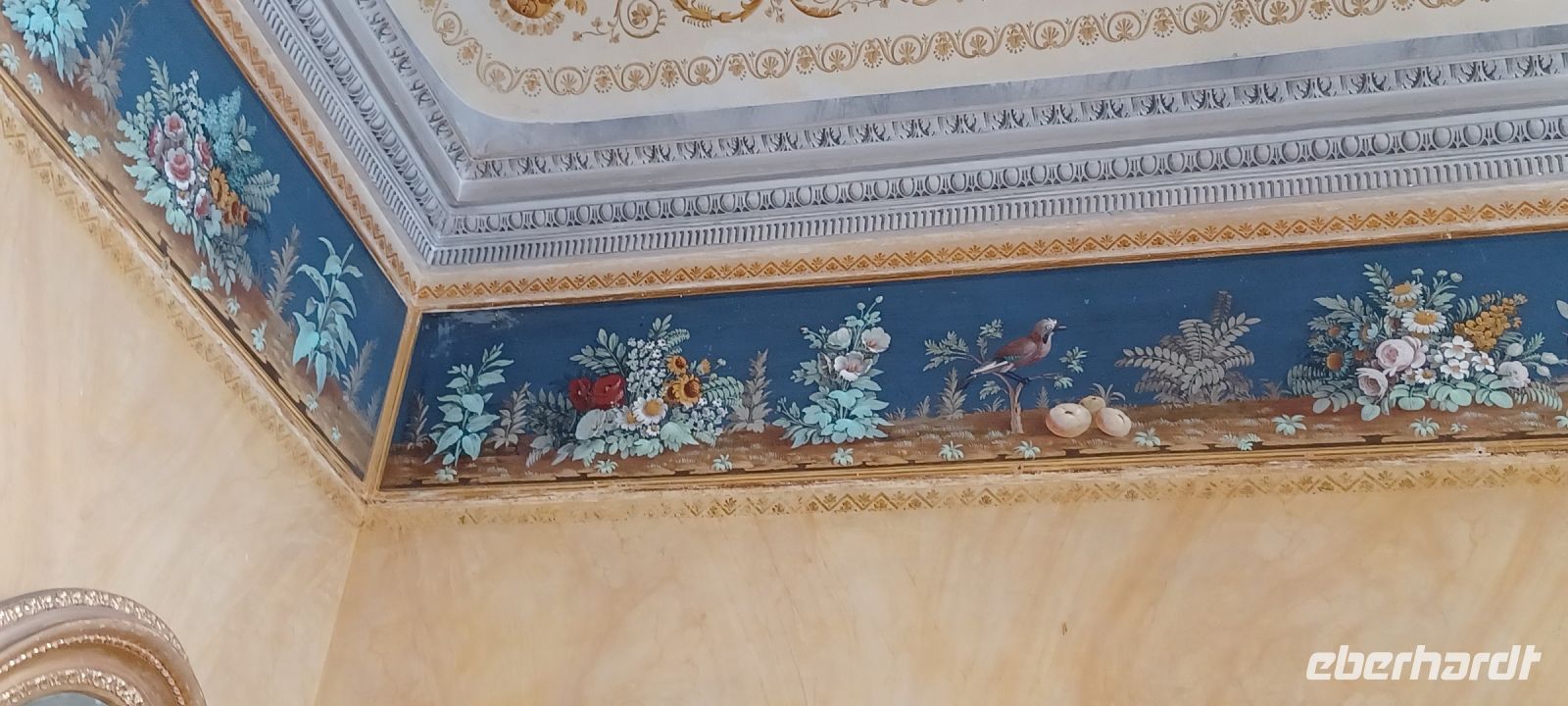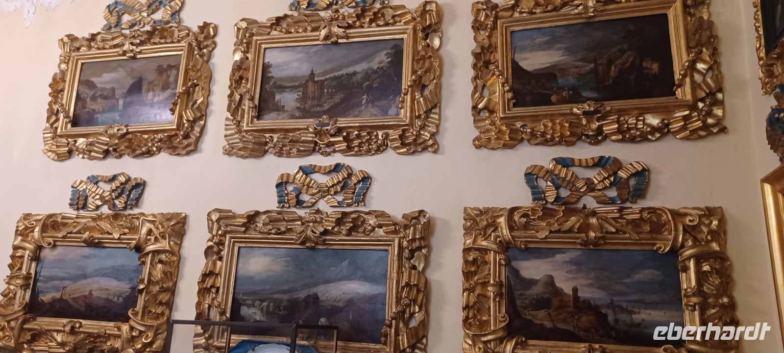 Im Untergeschoss des Schlosses erstrecken sich sechs Grotten, die mit Kies, Tuffstein u. Marmor ausgestaltet sind u. eine kühle Atmosphäre in den Sommermonaten den Schlossbewohnern versprach.
