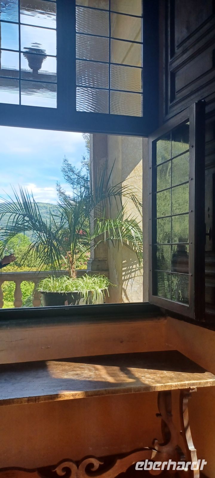 Dieser verspricht gleich einen Höhepunkt der Reise: die drei zauberhaften Inseln. Mit dem privaten Motorboot fahren wir zunächst die Isola Madre an, die größte Insel u. von exotischer Prägung durch den botanischen Garten im englischen Stil. Im 17.u. 18.Jh. wurde der Garten zunächst von Obstbäumen, Olivenhainen u. Zitrusbäumen geprägt - der italienische u. barocke Gartenstil waren vorherrschend. Der botanische Garten beherbergt Pflanzen aus verschiedenen Längengraden, die dank des milden Klimas hier gedeihen, wie die Cashmir-Zypresse, die von einer Windhose zu Boden gerissen wurde u. heute, auch nach 200 Jahren, durch Stahlseile gestützt, zu bewundern ist. Alfredo, unser Guide für die Schlossführung, versprüht nicht nur seinen italienischen Charme der Weiblichkeit gegenüber, er weiß auch seine kunsthistorischen Kenntnisse zu den Schlossräumen u. -sammlungen in Szene zu setzen. So speisen wir gedanklich von dem feinen Tischporzellan, versetzen uns beim Betrachten von Marionetten u. Puppen in die Kinderzeit u. erfahren Spannendes über das Wirken des Geschlechtes der Borromäo in Politik, Wirtschaft, Kunst u. Architektur.