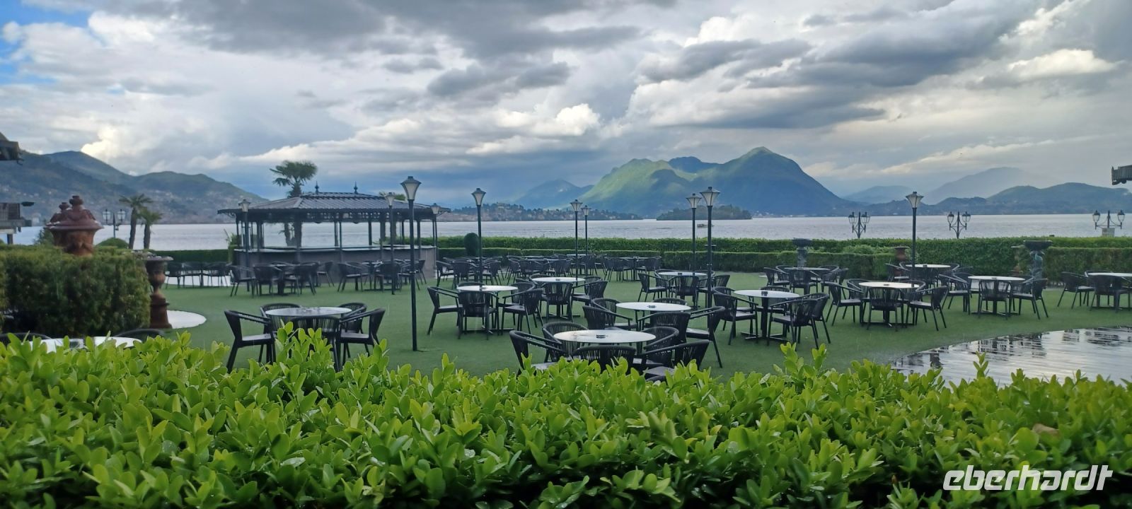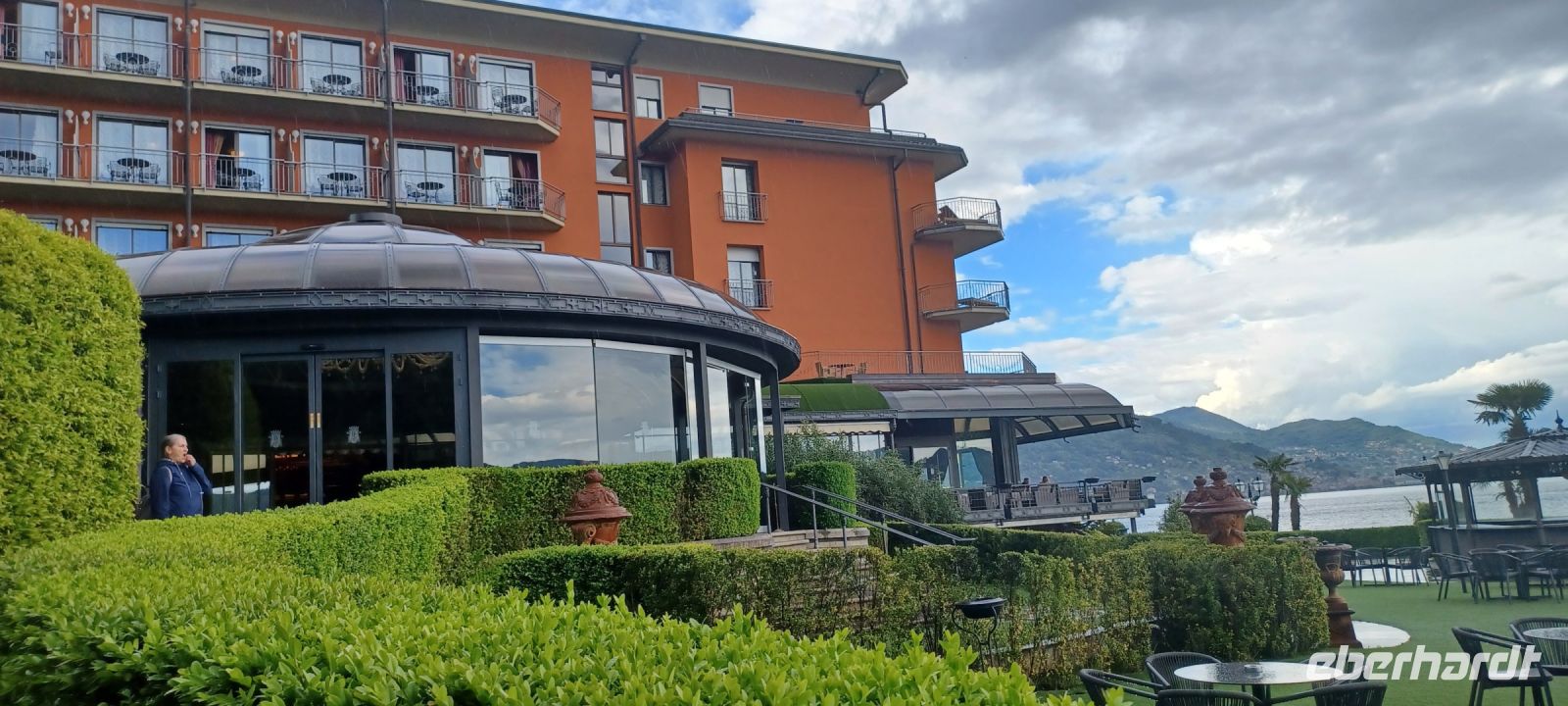 Ein wundervoller Ausflugstag neigt sich dem Ende. Wir haben noch Zeit für individuelle Erkundungen in Baveno mit dem Touristkbähnchen oder bei einem Spaziergang. Selbst unser Hotelkomplex ist eine Erkundungstour wert: die parkartige Gartenanlage mit gestalteten Tierfiguren, die aufwendig gestalten Konferenzräume u. der großzügige Wellnessbereich mit Innen-u. Außenpool. Selbst in die Küchen können wir einen Blick werfen.