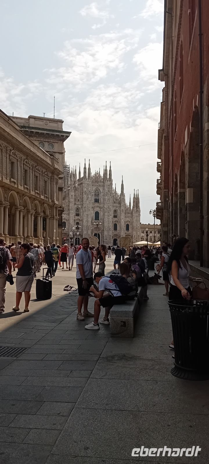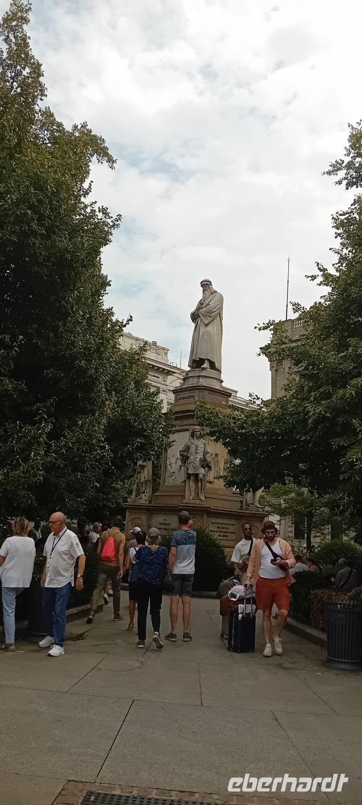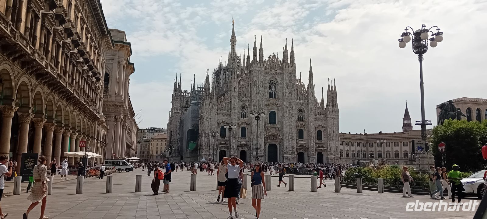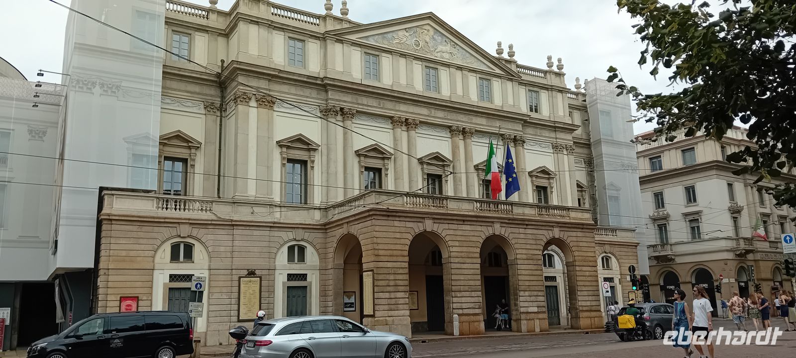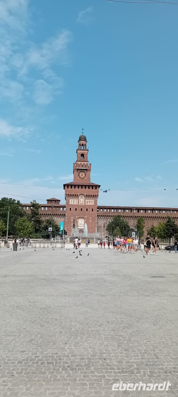 Wir treffen unsere Mailänder Reiseleiterin Paola in der Nähe des Castello Sforzesco und haben die Stadtführung mit ihr im Bus begonnen, vorbei an der Börse Milano und am Monumentalfriedhof, auf dem sich die namhaften Mailänder Familien mit den Grabmälern übertreffen wollten. Beim Castello Sforzesco setzen wir die Stadtführung zu Fuß fort. Das Castello Sforzesco ist eine historische Festung in Mailand, die im 14. Jahrhundert erbaut wurde und ursprünglich als Burg und herzogliche Residenz diente. Heute beherbergt die Anlage verschiedene Museen, darunter Kunstsammlungen, und ist eine der größten Festungen Europas. Das Schloss wurde ursprünglich im 14. Jahrhundert erbaut und später von Francesco Sforza, dem Herzog von Mailand, umgebaut. Durch die Fußgängerzone gehen wir weiter zum Dom und zur Galleria Vittorio Emanuele II und dann zur Besichtigung des Museums der Scala. Und wir können auch einen Blick in die weltberühmte Oper werfen und uns im Museum der Scala an Stars wie Maria Callas zu erinnern. Anschließend gibt es die Möglichkeit eines Stadtbummels, der Besichtigung des Doms oder nur in der Galleria Vittorio Emanuele II (im Volksmund als Galleria Coperta bekannt) zu sitzen und das turbulente Leben in Mailand zu beobachten.
