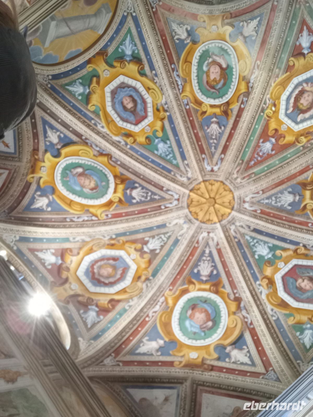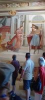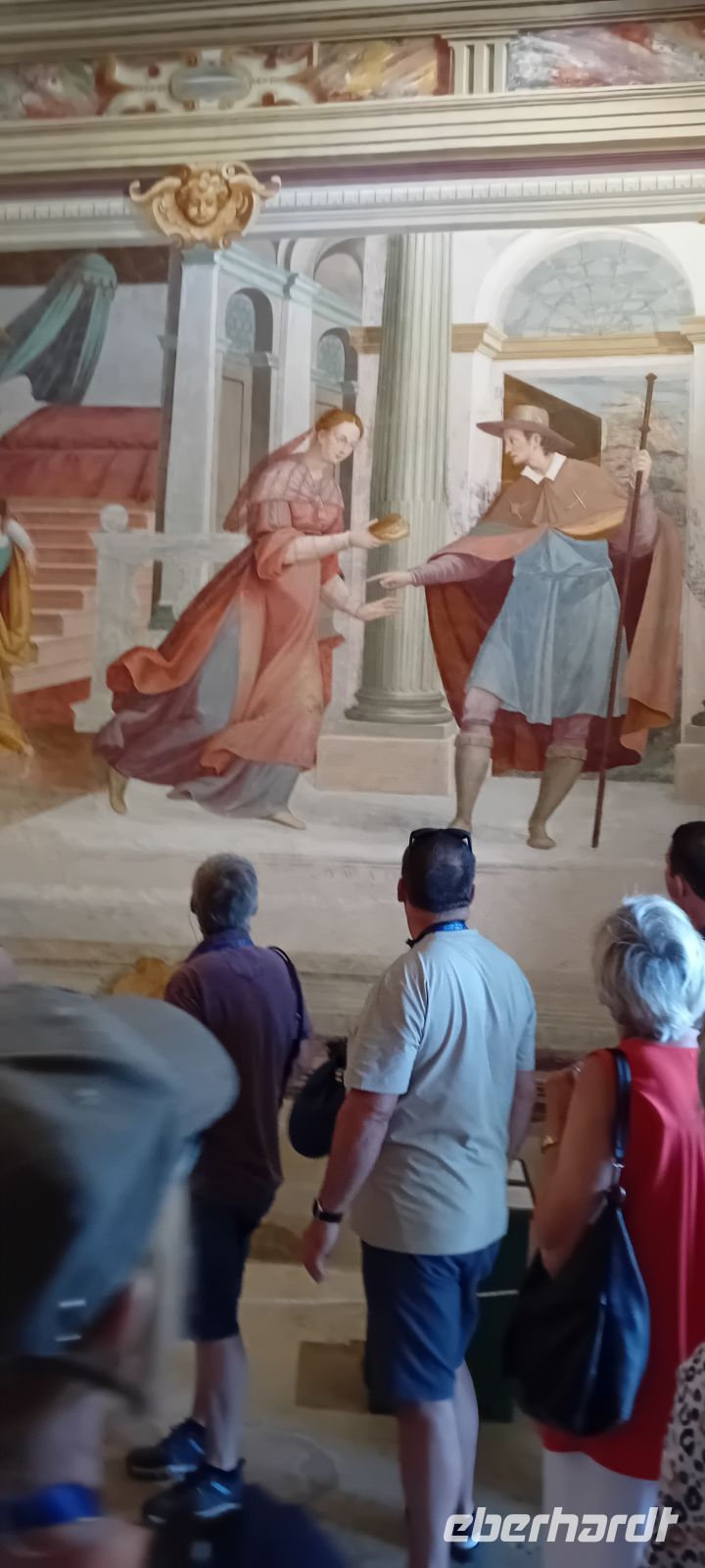 Barbara hat uns aus den 20 Kapellen drei herausgesucht, durch die sie uns führt und ausführlich informiert. Wir fahren mit dem Bimmelzug zurück zur Piazzale Diania und gehen dann zu Fuß ins Zentrum von Orta. Nach dem individuellen Mittagessen fahren wir wieder mit einem Boot zur Isola San Giulio.