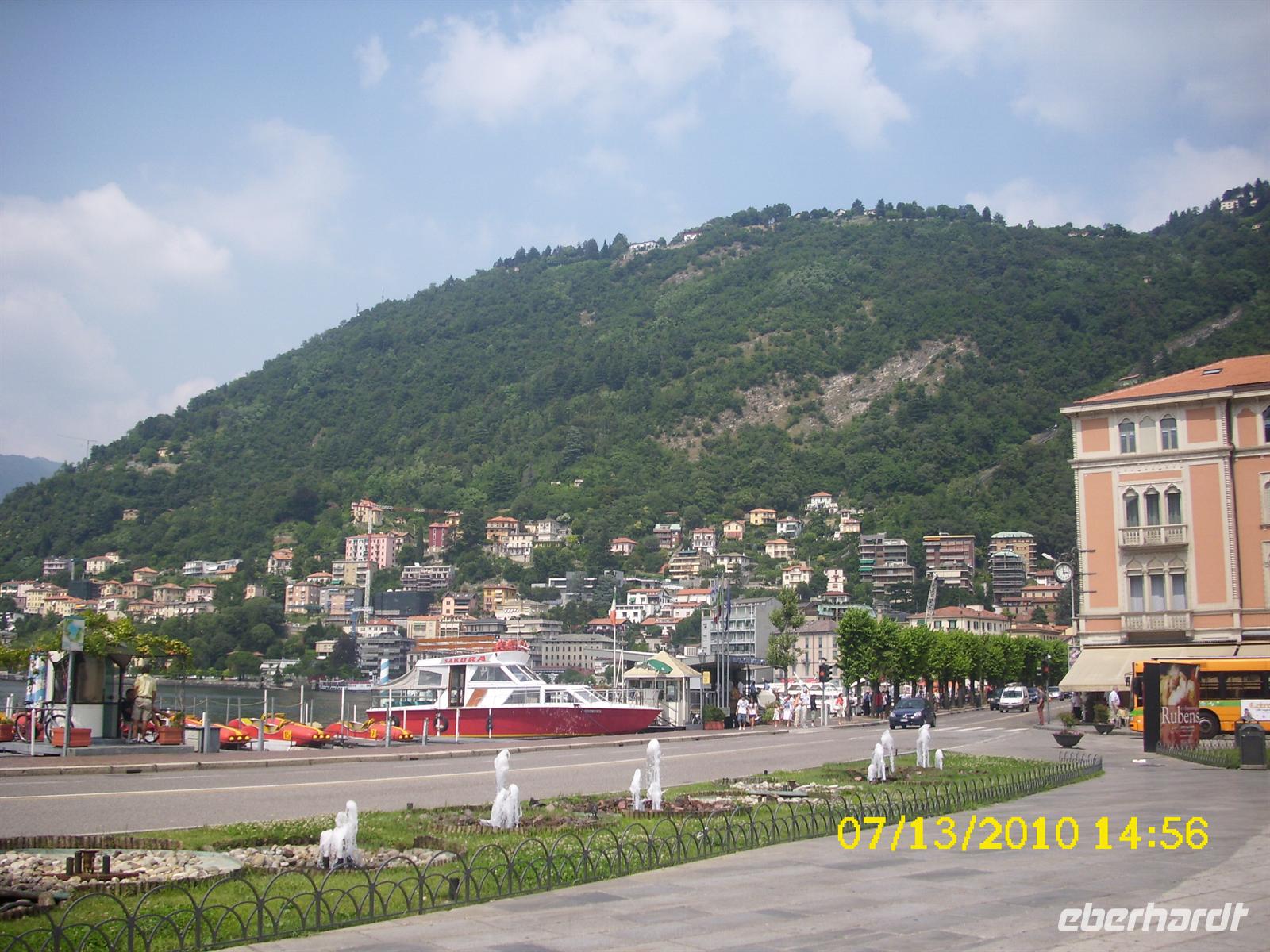 Unsere Weiterfahrt führt uns nach Arona. Hier finden wir eine Besonderheit und das Symbol von Arona.: Die Statue von San Carl Borromeo. Die Gesamthöhe der Statue hat eine Höhe von über 35 Meter. Im Innern kann man bis in den Kopf hinauf steigen, durch Augen und Ohren hinaus schauen und die Ausblicke auf den See genießen.Dies jedoch blieb uns aus Sicherheitsgründen an diesem Tag verwehrt, denn mittlerweile hatten wir während der Tage am Lago Maggiore Temperaturen von über 30 Grad.Entlang der Küstenstraße ging es dann zurück zum Hotel. Luganer See Comer See Der heutige Tag führt uns in die Schweiz, genauer gesagt in das Tessin. Lugano, die Stadt am gleichnamigen See, schon seit dem Mittelalter wichtiger Handelsplatz zwischen Nordeuropa und Italien. Heute eine moderne Stadt mit Banken, Hochhäusern und Hotels umgeben von den Hausbergen des Monte Bre und dem Monte San Salvatore.