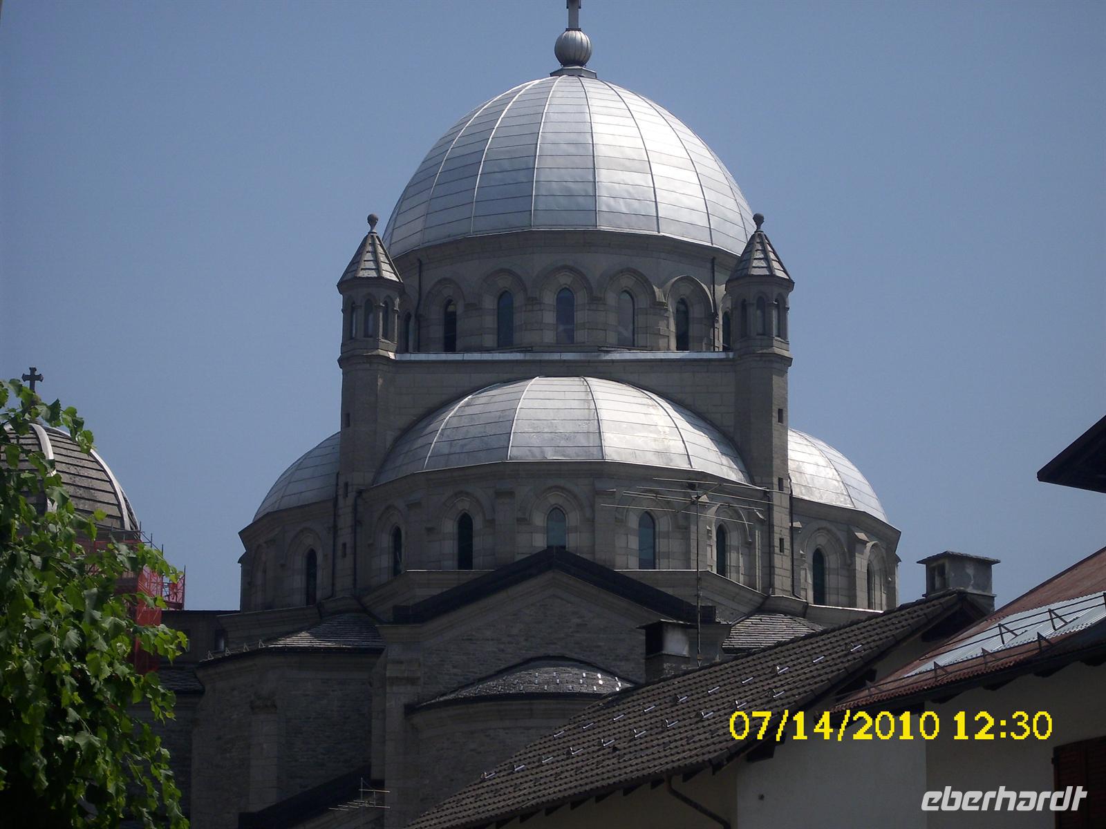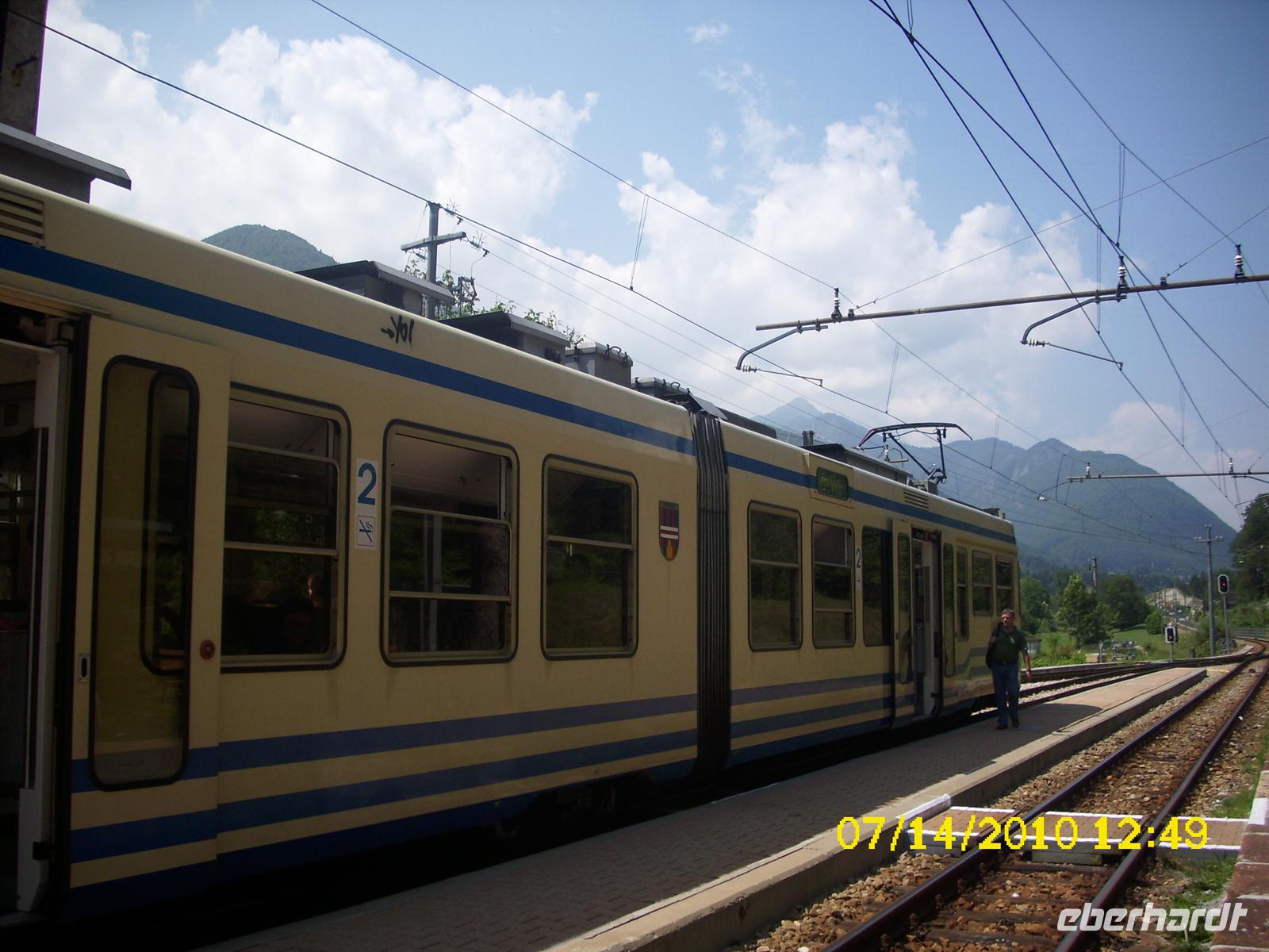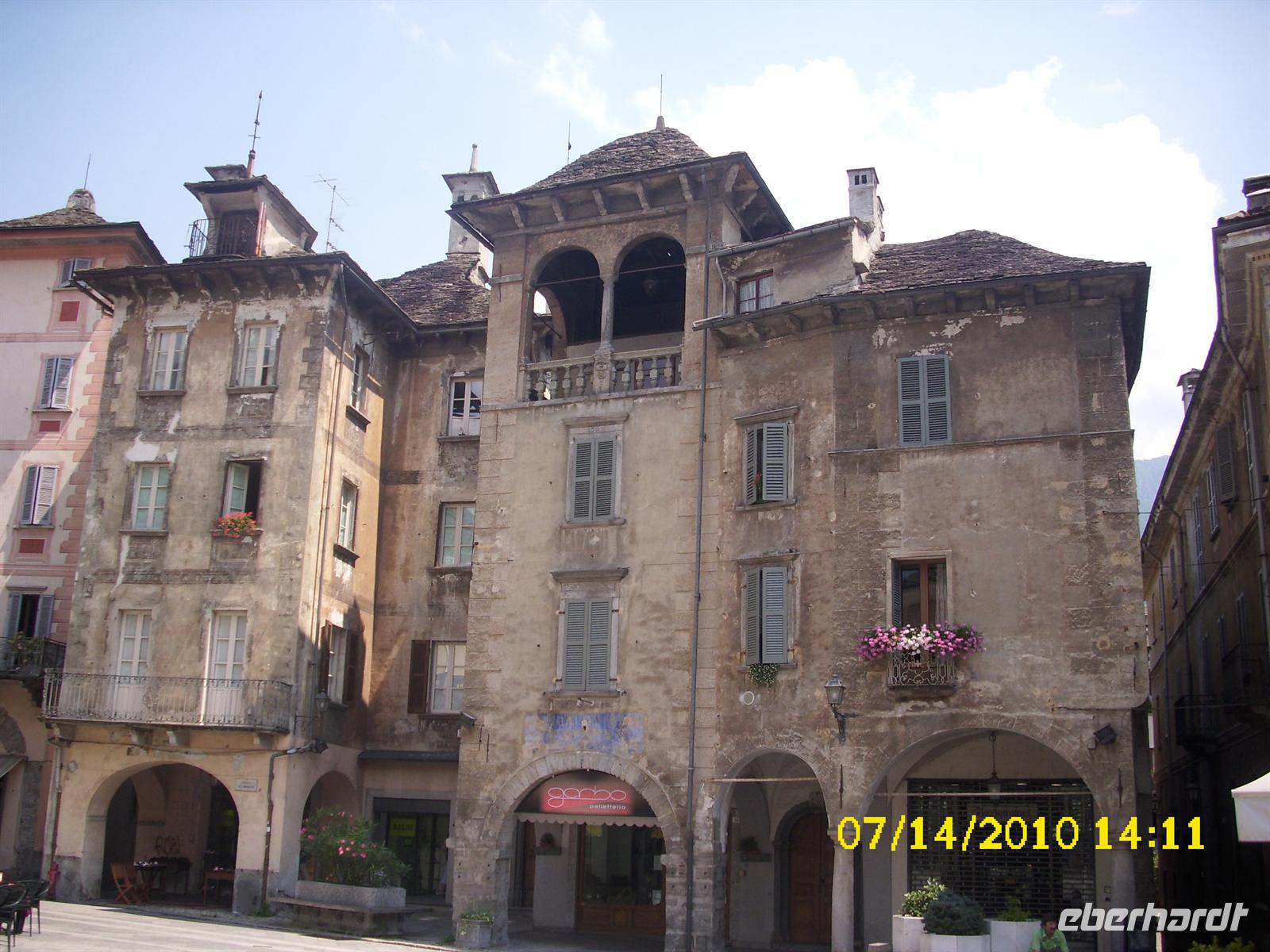 geht nach Locarno. Doch bevor wir in den Zug der Centovallibahn einsteigen bleibt noch Zeit für eine kurze Stippvisite in der Stadt am See. Jedes Jahr findet im Sommer das berühmte Filmfestival statt. Die Pizza Grande, Mittelpunkt der Altstadt, von hier kann man bequem durch die kleinen Gassen bummeln vorbei an den Arkadenhäusern oder zur Wallfahrtskirche „Madonna del Sasso“ empor steigen. Denn diese Kirche thront über der Stadt.Pünktlich um 10.42 Uhr setzt sich dann der Zug in Bewegung, Schweizer Genauigkeit.Durch das „Centovalli“ - 100 Täler - , fahren wir nach Re. Ein kleiner Ort im Valle Vigezzo.Das Dorf wird mit der Wallfahrtskirche „Madonna des Blutes“ in einem genannt. Eine Legende beschreibt das ein Bewohner des Dorfes das Fresko mit der stillenden Madonna mit einem Stein beworfen hat, wonach die Madonna zu bluten anfing.