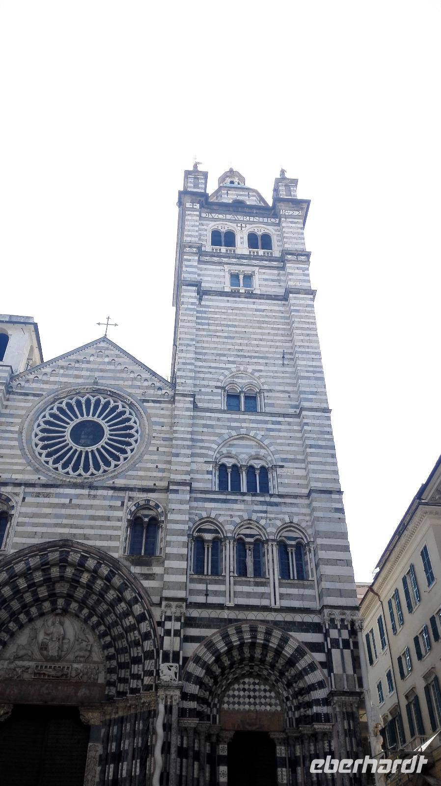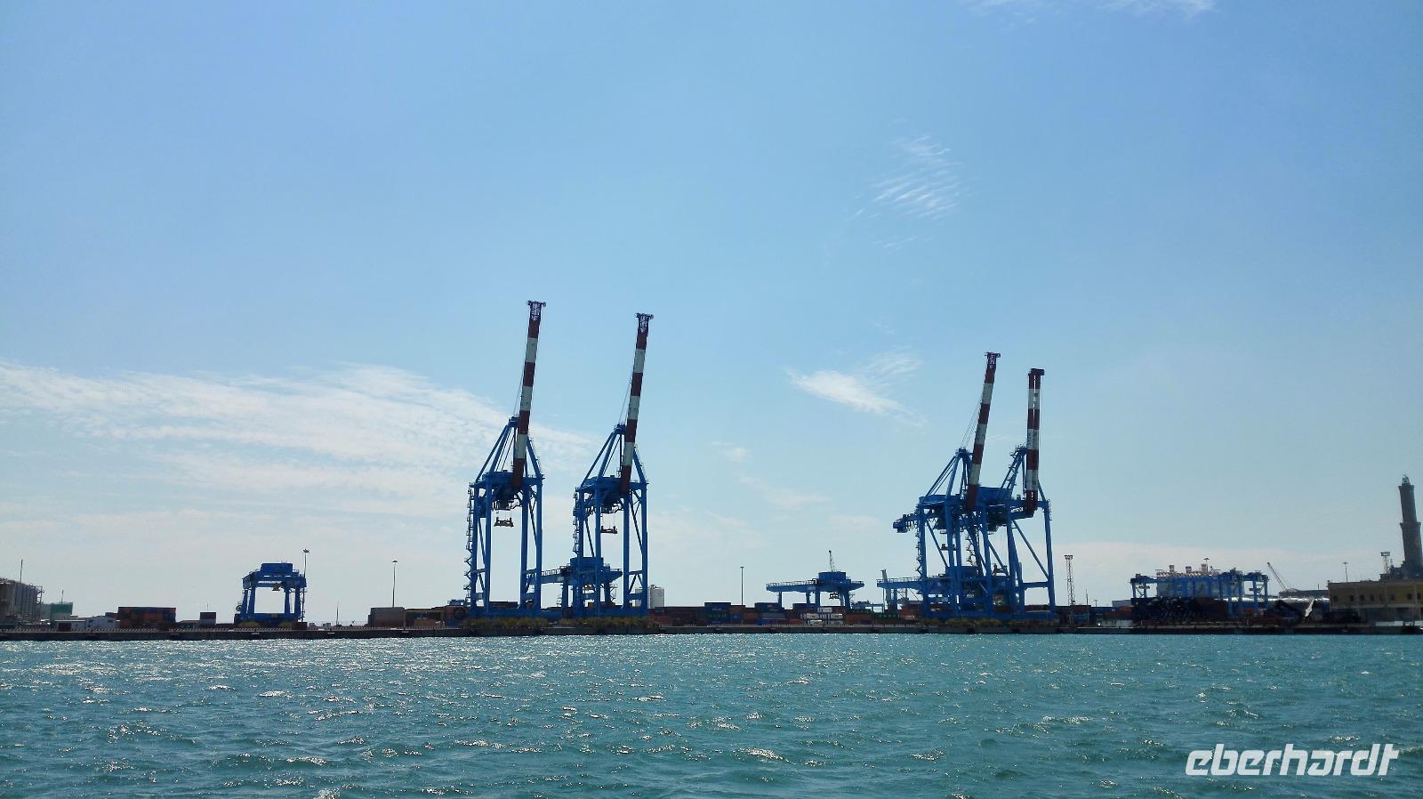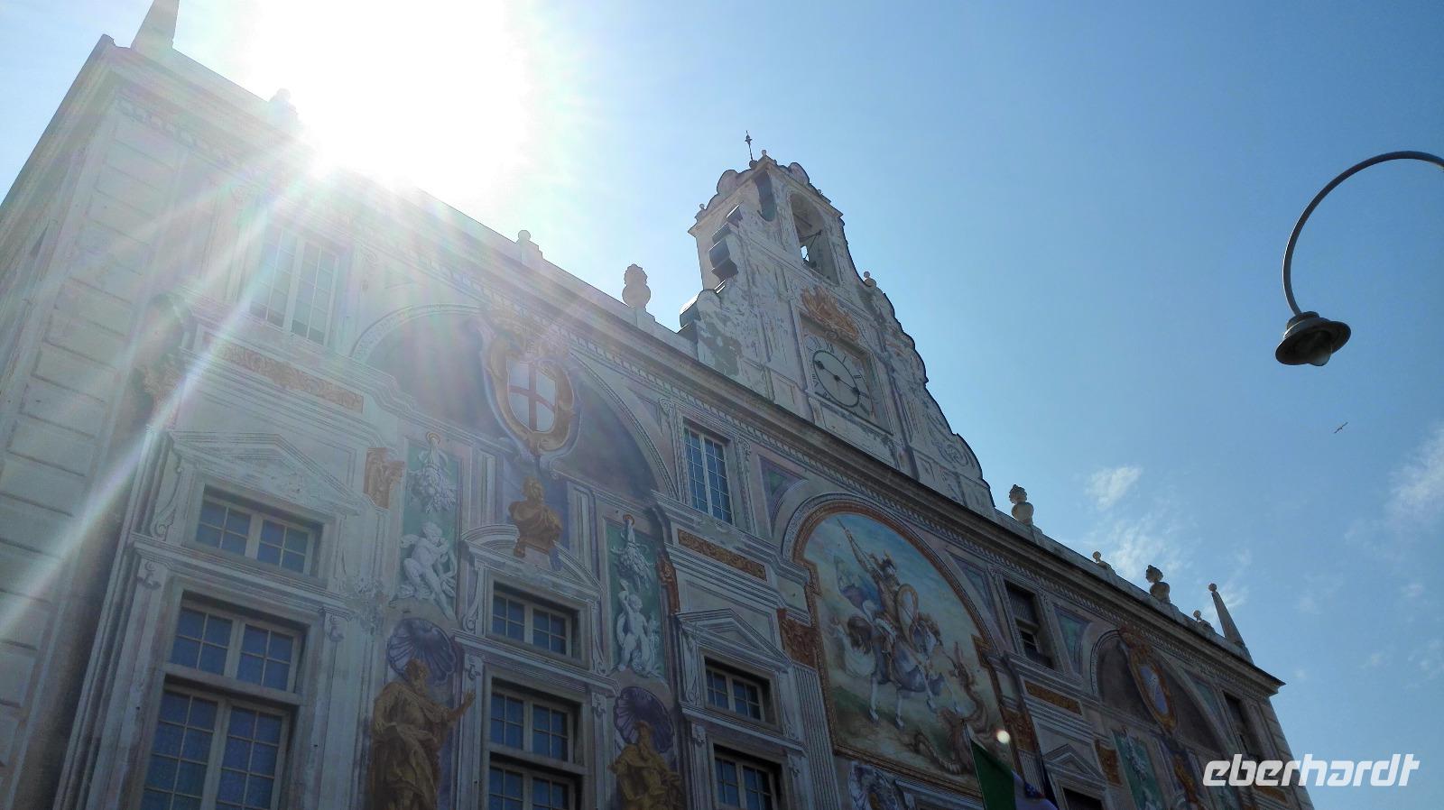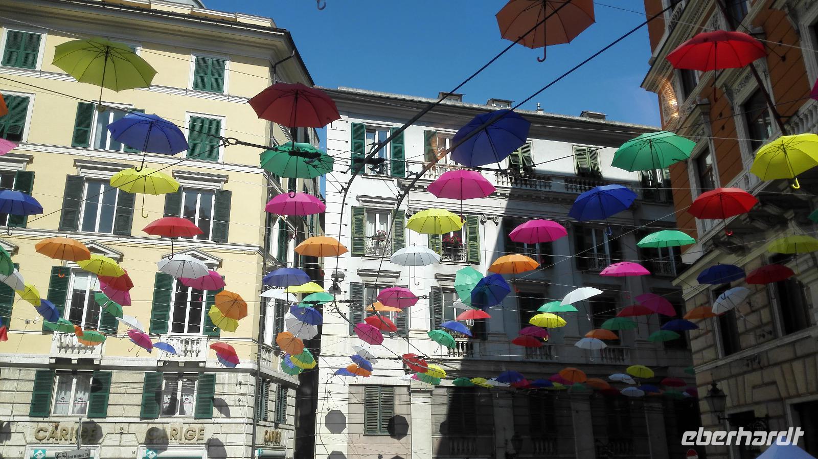 Gemeinsam stärken wir uns am heutigen Pfingstsonntag beim Frühstück vom Buffet im Hotel, bevor wir erneut durch die zahlreichen Tunnel nach Genua fahren. Dort angekommen, huscht Vittoria unsere Stadtführerin kurz in den Bus und schon lauschen wir bei einer Rundfahrt ihren interessanten Erzählungen. Am Hafen steigen wir aus und gehen gemeinsam mit Vittoria zu Fuß weiter. Viele Menschen sind hier am heutigen Sonntag unterwegs - Ein Sportfest findet am Hafen statt und die beiden großen Kreuzfahrtschiffe „Sapphire Princess" und „MSC Fantasia" liegen im Hafen. Nach unserem gemeinsamen Rundgang konnte sich jeder besser orientieren und so machten alle im Anschluss das, worauf sie gerade Lust hatten - durch die Gässchen bummeln, eine Kleinigkeit zu Mittag essen oder im Hafen an der Uferpromenade entlang flanieren. Am Nachmittag trafen wir uns wieder zu einer Rundfahrt mit dem Schiff durch den größten und wichtigsten Hafen des Mittelmeeres. Ganz schön zugig ging es zu auf dem Schiff, der eine oder andere Hut verabschiedete sich! Zurück im Hotel genossen wir wieder ein gemeinsames Abendessen und schwatzten fröhlich über diesen gelungenen Tag bei herrlichem Wetter!