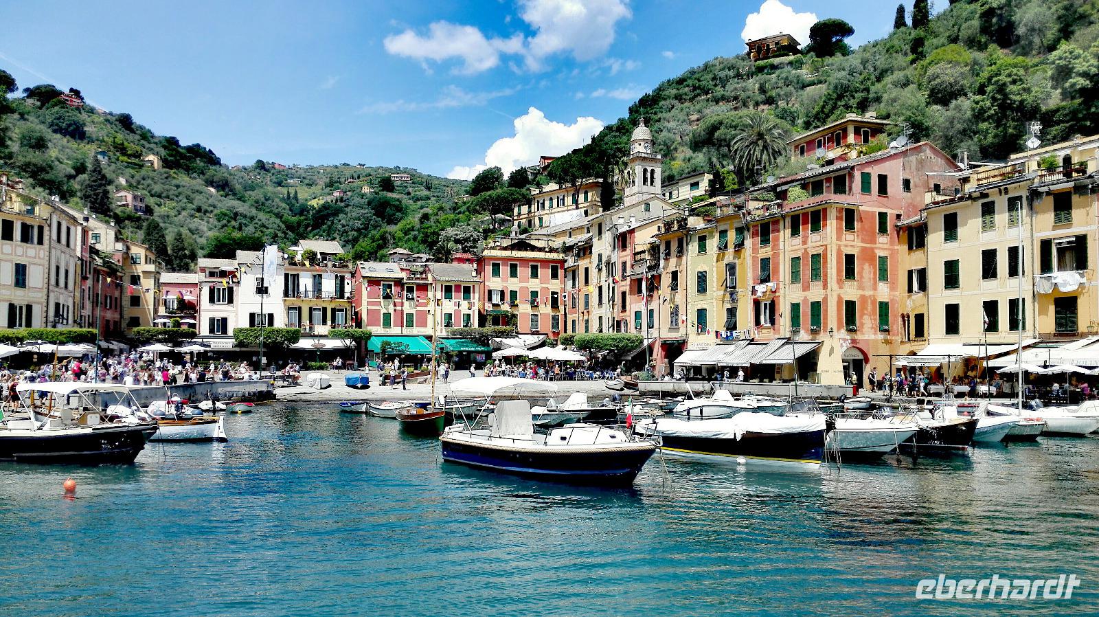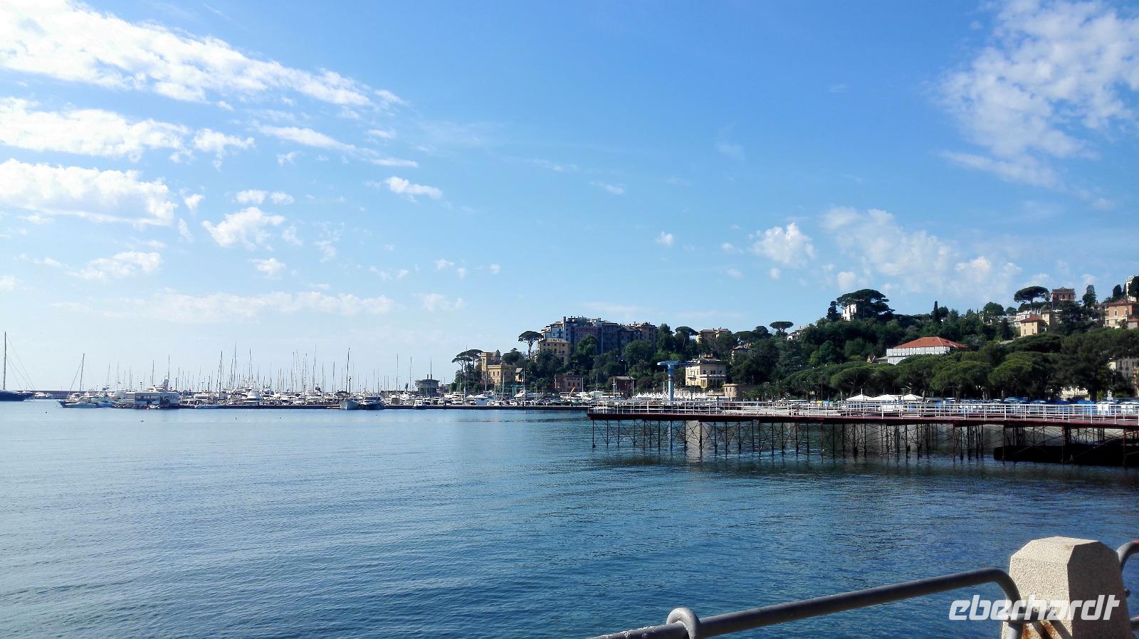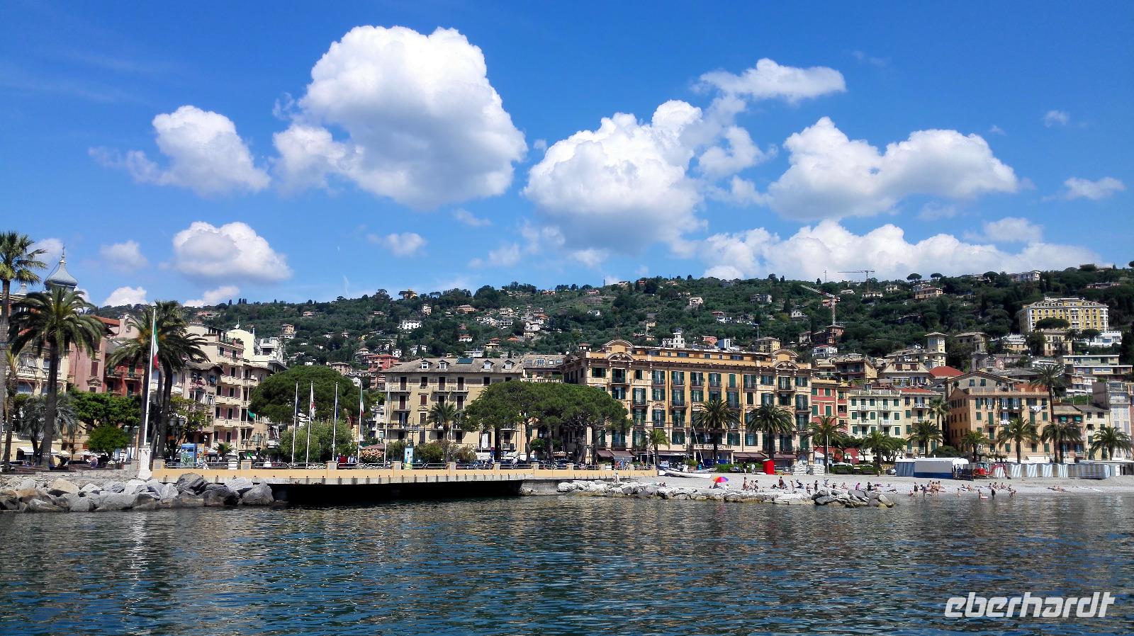 Den heutigen Tag beginnen wir mit einem Ständchen beim Frühstück, haben wir doch ein Geburtstagskind unter uns. Der Himmel strahlt, die Sonne scheint - ein herrlicher Tag beginnt! Frisch gestärkt fahren wir nach Rapallo, wo Annamarie - unsere Reiseleiterin für den Tag, bereits auf uns wartet. Gemeinsam mit ihr erkunden wir die kleinen Gassen und die Uferpromenade. Nach einer kurzen Cappuccino-Espresso-Pause fahren wir mit dem Schiff nach Santa Margherita Ligure. Ein wunderschöner, kleiner italienischer Ort - traumhaft bepflanzt mit vielen kleinen Margeritenstöckchen und die pastellfarbenen Häuschen mit ihren Fensterläden - das ist Bilderbuch Italien, wie man es sich vorstellt. Die Kirche St. Margherita d'Antiochia, mit ihren zahlreichen Kronleuchtern und ihrer Innenausstattung, werden uns sicherlich noch lange in Erinnerung bleiben. Mittlerweile ist es sehr warm geworden und während wir am Hafen auf unser Schiff warten, ziehen wir uns gerne in den Schatten der Bäume an der Uferpromenade zurück. Weiter fahren wir mit unserem Schiff nach Portofino. Allein der Anblick auf dieses Städtchen bei der Einfahrt in den Hafen bildet einen der Höhepunkte dieser Reise! Das lässt sich mit Worten nicht beschreiben, das muss man einfach gesehen haben! Wir spazieren durch die Gassen und wer möchte, kann Annamarie zur Kirche Chiesa di San Giorgio begleiten, um den Ausblick auf die Stadt zu genießen. Nach einer Mittagspause lehnen wir uns bei der Fahrt mit dem Schiff zurück nach Rapallo entspannt zurück. In Rapallo angekommen werden wir, nur wenige Meter vom Schiffanleger entfernt, zu einem Pestoworkshop erwartet. Mit viel Charme und Witz erfahren wir hier wie das echte Pesto-Genovese hergestellt wird. Natürlich dürfen wir auch probieren! Im Anschluss bringt uns Lutz mit dem Bus zurück ins Hotel, wo wir nach dem Abendessen alle voller toller Eindrücke müde in unsere Zimmer verschwinden. Ein traumhafter Tag mit wunderschönen Erinnerungen.