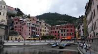 Auch heute lassen wir uns italienische Brötchen, Wurst, Käse und allerhand andere Leckereien vom Buffet schmecken und stärken uns für den Tag. Der Himmel sieht heute leider nicht ganz so schön aus, aber wir lassen uns dadurch unsere positive Stimmung und gute Laune nicht nehmen. Gemeinsam fahren wir nach La Spezia, wo wir Patrizia, unsere örtliche Reiseleiterin für diesen Tag, abholen. Vorbei am Hafen, wo heute die „Mein Schiff 6"sowie ein Schiff der Aida-Flotte vor Anker liegen, fahren wir in den Naturpark „Cinque Terre" - 5 Dörfer. Genau diese 5 Dörfer werden wir heute sehen! In Manarola steigen wir aus, gehen ein Stück den Berg hinunter und bummeln anschließend durch diesen hübschen, kleinen Ort. Wie von Patrizia empfohlen gehen wir zum einzigen Baum am Ufer und staunen anschließend über das wunderschöne Fotomotiv. Weiter geht die Fahrt mit dem Zug nach Vernazza, wo wir auch durch das Städtchen bummeln, italienisches Eis genießen und uns darüber freuen, dass das Wetter beginnt etwas freundlicher zu werden. Wieder nehmen wir den Zug, in den wir einen großen Schritt machen müssen, weil er so schräg auf den Gleisen steht, und fahren nach Montegrosso. Hier haben wir Zeit für eigene Erkundungen und Gelegenheiten ein Mittagessen einzunehmen. Viele Menschen bummeln durch das Städtchen und in zahlreichen Souvenirgeschäften gibt es allerlei Landestypisches. Ein weiteres Fortbewegungsmittel ist auch heute wieder das Schiff. Vorbei an den kleinen Örtchen, die wir im Laufe des Tages besucht haben, zeitweise begleitet von einer Delfinfamilie, fahren wir nach Porto Venere. Ab und zu scheint sogar die Sonne durch die Wolkendecke. In Porto Venere bummeln wir durch die schmale, italienische Gasse und lassen uns von einem kurzen Regenschauer unsere gute Stimmung nicht nehmen. Von hier aus geht es per Schiff vorbei am Kreuzfahrt- und Militärhafen zurück nach La Spezia, wo uns Lutz bereits erwartet. Mit einem, oder auch zwei, Gläschen Limoncello stoßen wir auf diese tolle Reise an! Die Stimmung steigt und ein singender Bus fährt zurück zum Hotel, wo wir uns unser letztes gemeinsames Abendessen schmecken lassen.