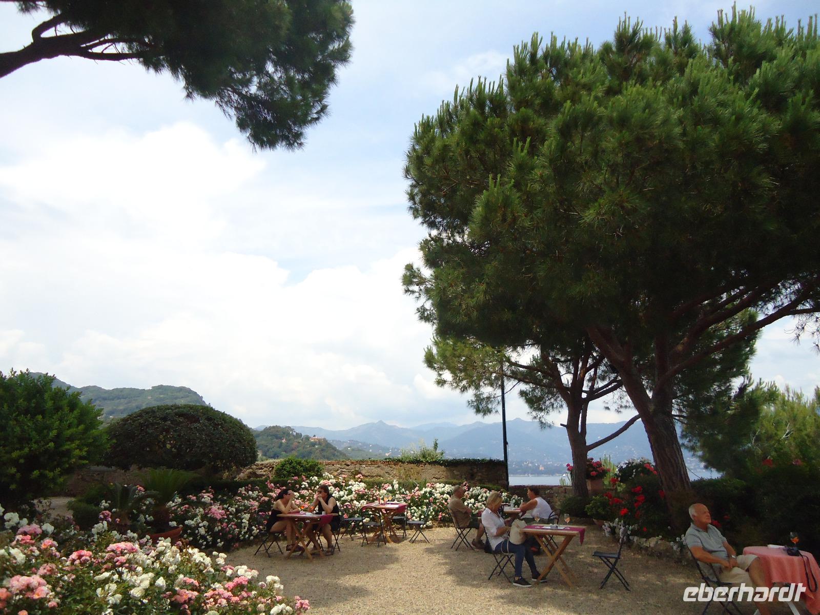 Nach dem Gewusel im Hafen finden wir hier, hoch über dem Hafen von Portofino, einen kleinen Ort der Entspannung und der himmlischen Ruhe, eine wirkliche Oase - aber leider keine Sitzgelegenheit mehr...
