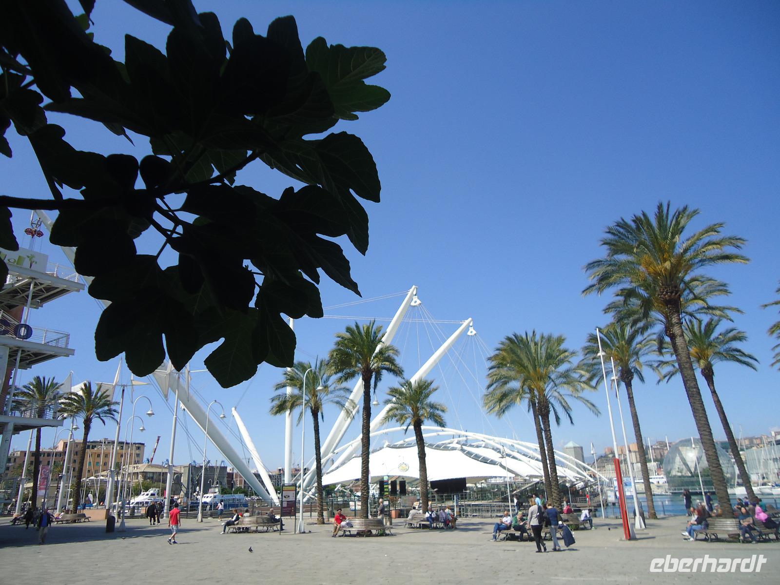 Wieder am Alten Hafen, der anläßlich des Kolumbusjahres 1992 vom Genueser Stararchitekten Renzo Piano umgestaltet worden ist, eingetroffen, gehen wir in die Freizeit. Die meisten freuen sich auf einen Besuch des Acquario, dem Meereskundemuseum (das größte Europas). Und sie werden nicht enttäuscht. Andere wiederum inspizieren den Alten Hafen und „schweben mit dem Panoramakran dem Himmel entgegen"...Aber für manche ist auch die Stadt noch einmal ein Anziehungspunkt, wo sie bei einem gelato, einem cappuccino, einem Glas vino oder, oder, oder ein bißchen die Seele baumeln lassen...