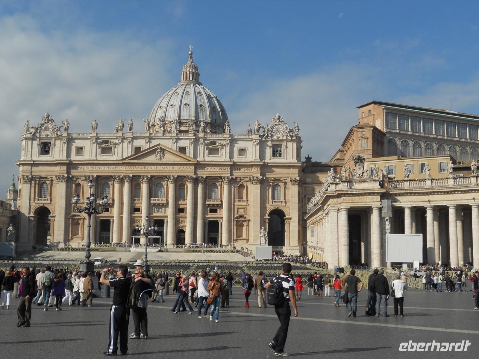 Am 3. Tag geht es gleich nach dem Frühstück hinunter nach Rom, denn heute steht als Tagesprogramm ein geführter Stadtrundgang einschl. der Besichtigung des Petersdoms auf dem Programm. Doch bevor wir uns mit unserem örtl. Reiseleiter Bernd treffen können, hat uns der enorme Straßenverkehr fest im Griff. In Vatikanstadt angekommen, führt uns Bernd ganz ruhig und gelassen mit Hilfe von Audioguides zuerst durch den Petersdom. Wir können uns genügend Zeit für diese Besichtigung nehmen. Anschließend gibt es eine Mittagspause zur Stärkung, und dann geht es in die Altstadt. Wiederum mit Audioguides, so dass jeder alles gut hören kann. Und außerdem kann man sich somit auch nicht verlieren. Wir besichtigen das Pantheon, den Vierflüssebrunnen an der Piazza Navona, die Spanische Treppe, den Trevibrunnen und vieles mehr. Der Rückweg nach Marino erfordert wiederum viel Geduld im allgegenwärtigen Straßenverkehr.