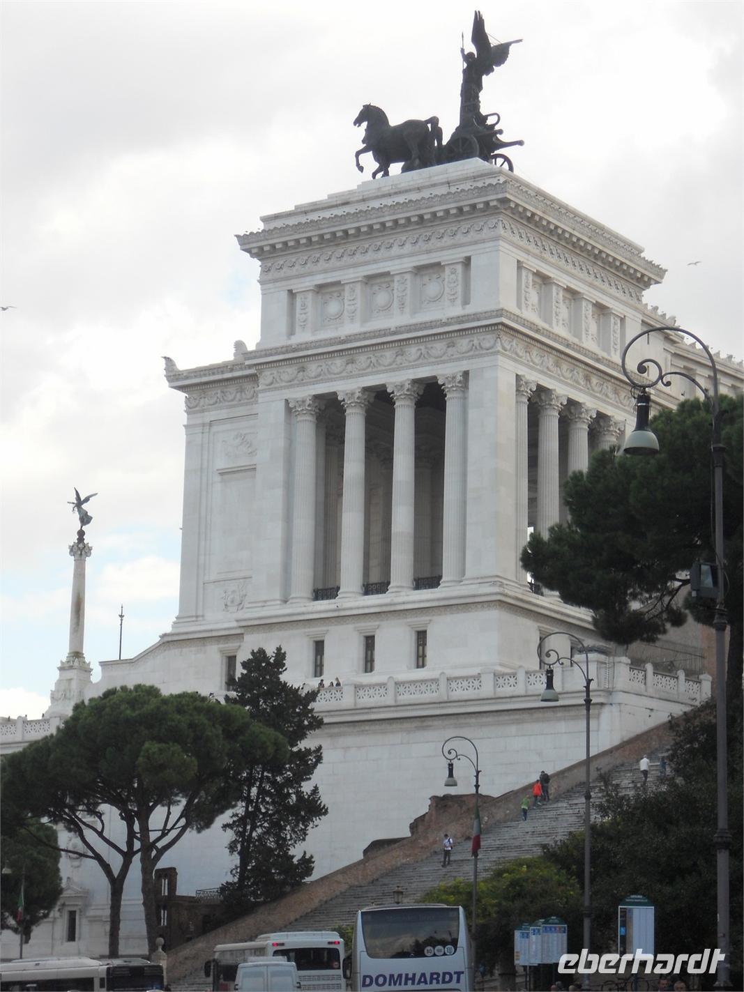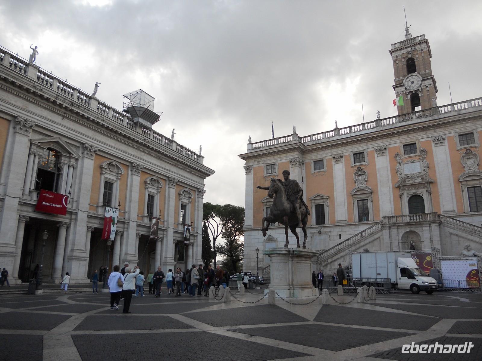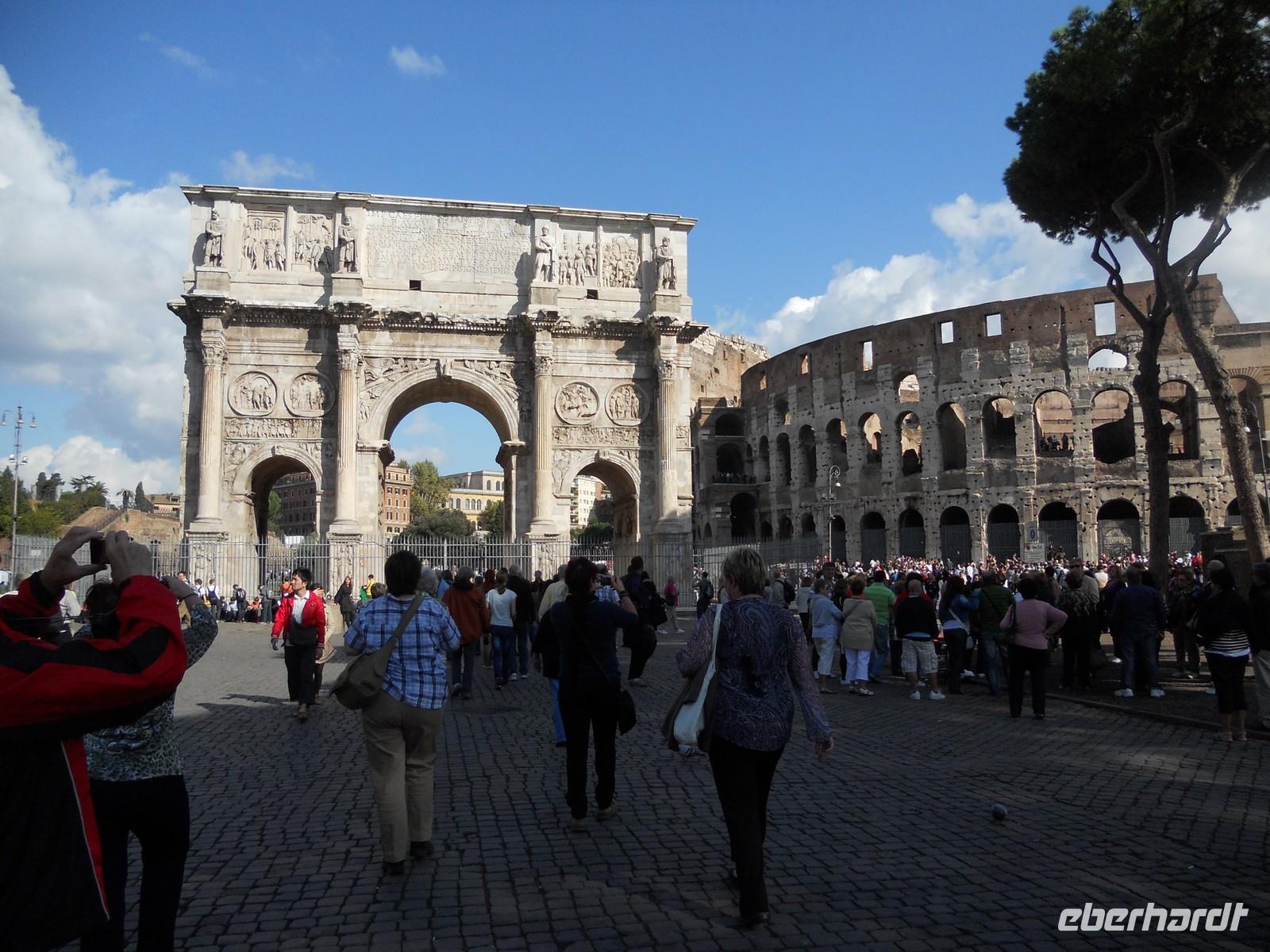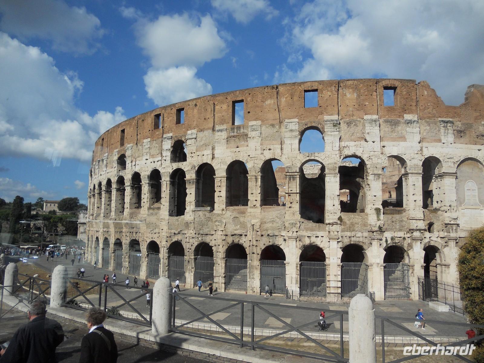 Der 4. Tag unserer Reise war ganz dem antiken Rom gewidmet. Wir besichtigten zuerst den berühmten Kapitolshügel mit der Reiterstatue des Kaisers Marc Aurel. Gleich neben dem Senatorenpalast suchen wir eines der Wahrzeichen der Stadt auf: die Wölfin mit den beiden Säuglingen Romulus und Remus. Danach genießen wir die Sicht auf das Forum Romanum, und Bernd erläutert uns sehr anschaulich das Leben im Kaiserlichen Rom. Anschließend fahren wir weiter zum Konstantinsbogen und zum Kolosseum, das uns natürlich besonders beeindruckt. Auch hier gibt es jede Menge Geschichte zum Bau und seiner Zeit. Den Nachmittag hat dann jeder Zeit zur eigenen Verfügung, und es fällt schwer, sich zu entscheiden. Zufrieden mit all dem vielen Gesehenen und Erlebten fahren wir zurück zum Hotel nach Marino.