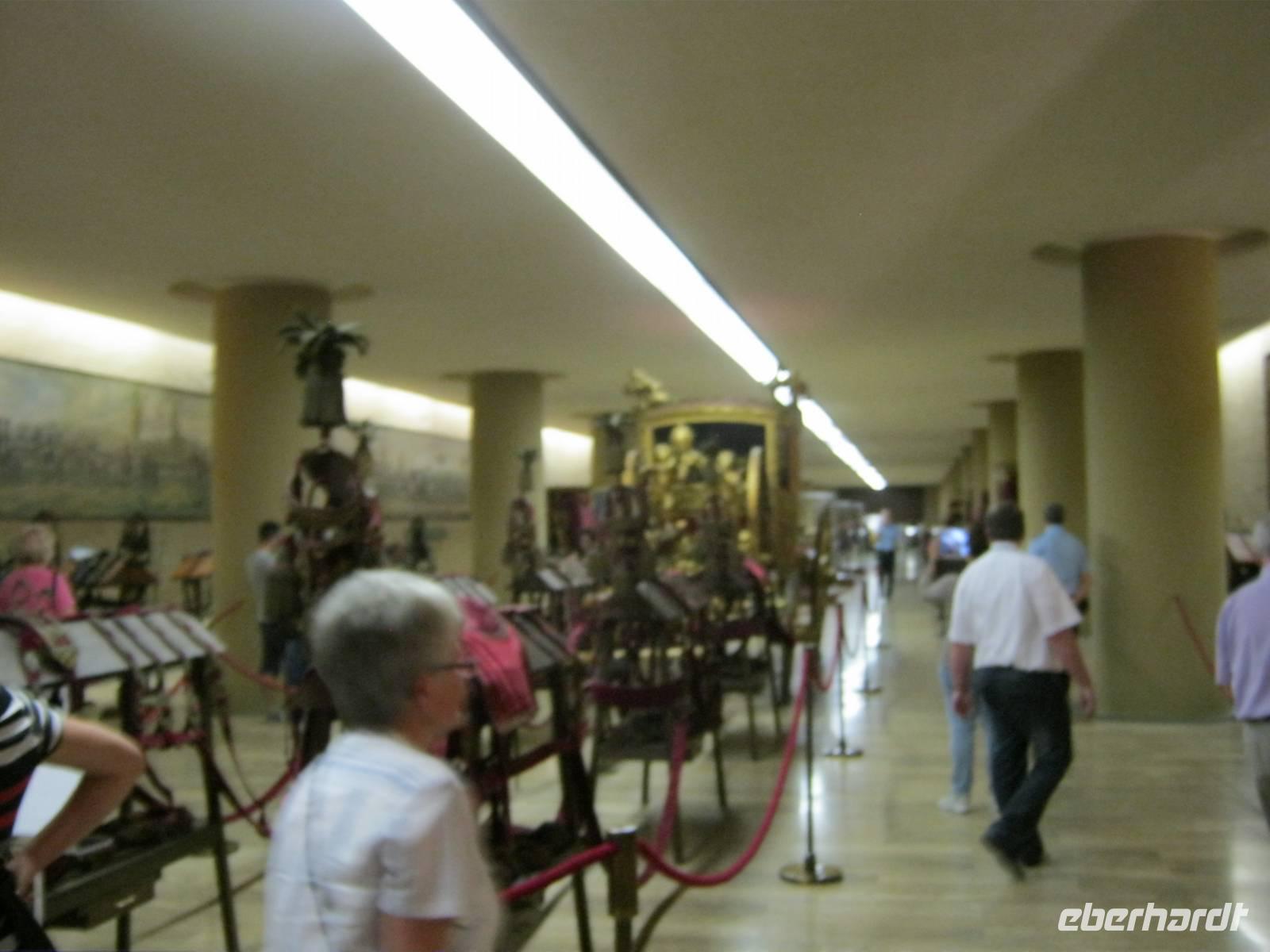 Die Museen haben unermessliche Schätze in ihrem Fundus. Schon ein kleiner Überblick - man bräuchte eigentlich Wochen - macht einen tiefen Eindruck. Ganz neu ist die Ausstellung zum Fuhrpark des Santa Sede: Fahrzeuge und Zubehör aus Jahrhunderten großartig präsentiert. Und der Petersdom wirkt immer wieder - selbst auf mich, der ich schon viele Male das Vergnügen hatte - einzigartig. So ist er ja auch konzipiert. Wer hätte vermutet, dass es dort auch ein Ehrengrab des großen Canova für die letzten schottischen Thronprätendenten aus dem Hause Stuart gibt? Die Schweizergarde, einst an mehreren europäischen Höfen zu finden, gibt es nur noch im Vatikan. Ihre Uniformen sind eine Augenweide. Wer wollte konnte dann in der Freizeit mit mir noch zur Engelsburg gehen. Den Rückweg ins Hotel haben wir noch zu einer kleinen Stadtrundfahrt genutzt.