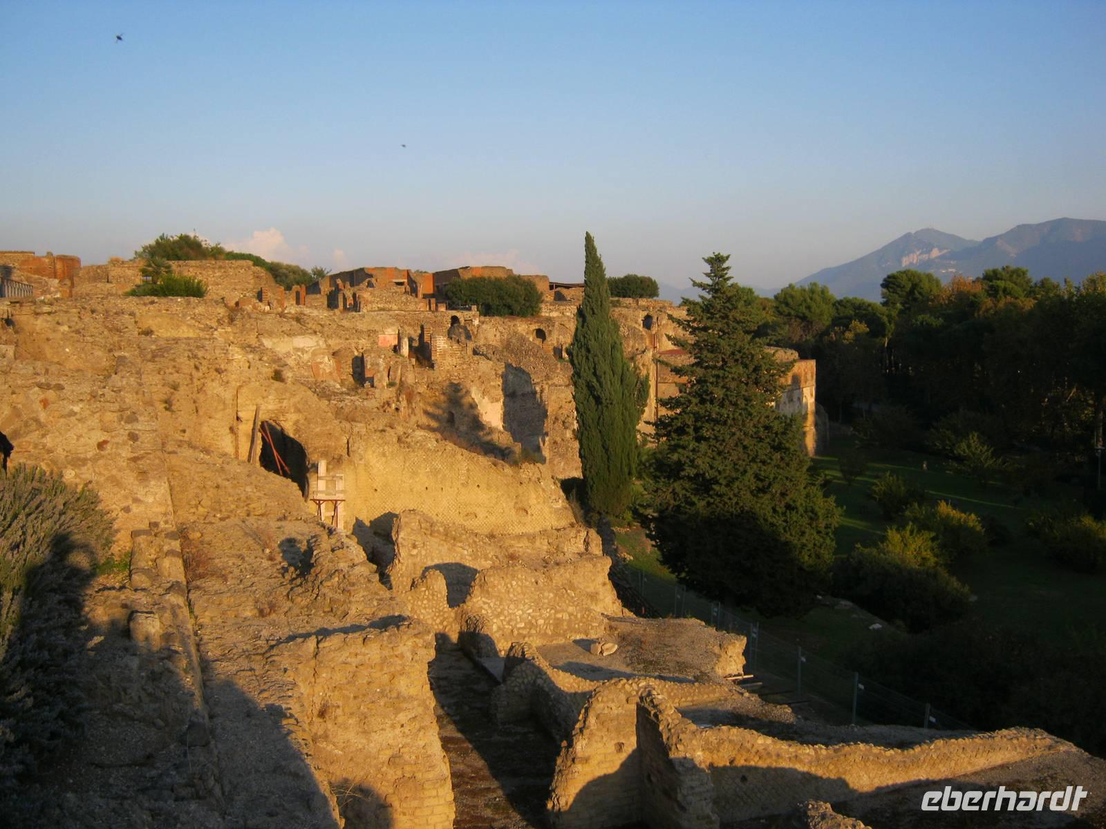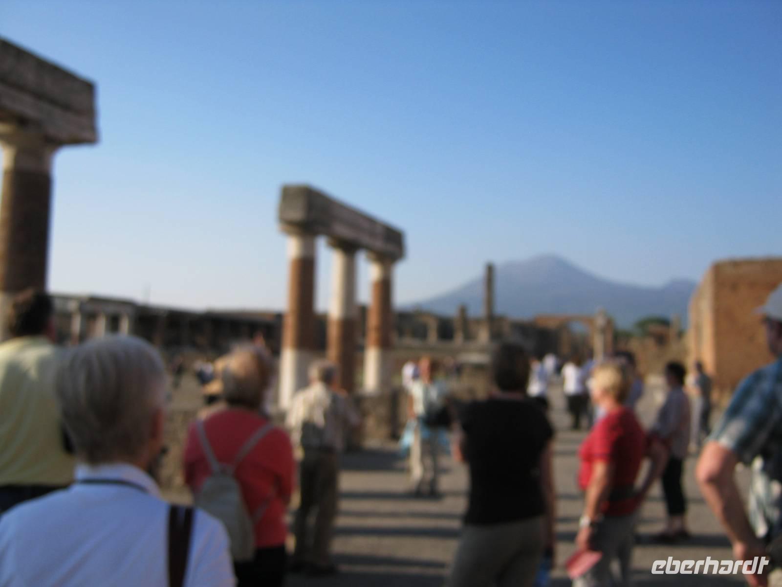 Vorbei an Monte Cassino, einer Stätte mit hohem Symbolgehalt, ging es in den Großraum Neapel, der nicht nur optisch vom Vesuv beherrscht wird sondern auch seit Jahrtausenden permanent bedroht. Wenn der besterforschte und dennoch unberechenbare Vulkan schläft, kann man ganz gefahrlos sofern man sich den Aufstieg zumutet aber doch mit einem gewissen Nervenkitzel in seinen Krater schauen. Ein klein wenig geraucht hat er doch! Einige haben auch den berühmten Wein von seinen Hängen mit dem poetischen Namen „Tränen Christi" probiert. Was es bedeutet, wenn der Alte zornig wird, haben wir am erschütternden Beispiel von Pompeji mit eigenen Augen gesehen; ein Eindruck der wohl immer im Gedächtnis haften wird.
