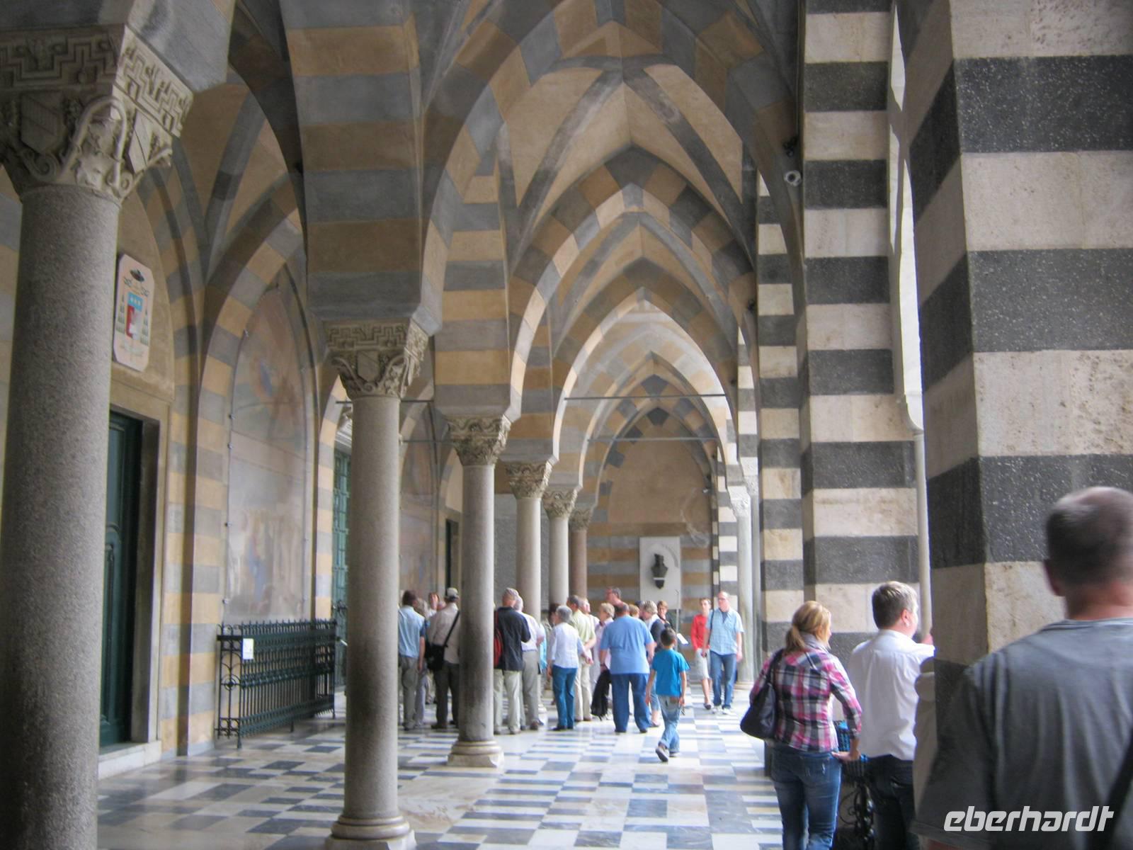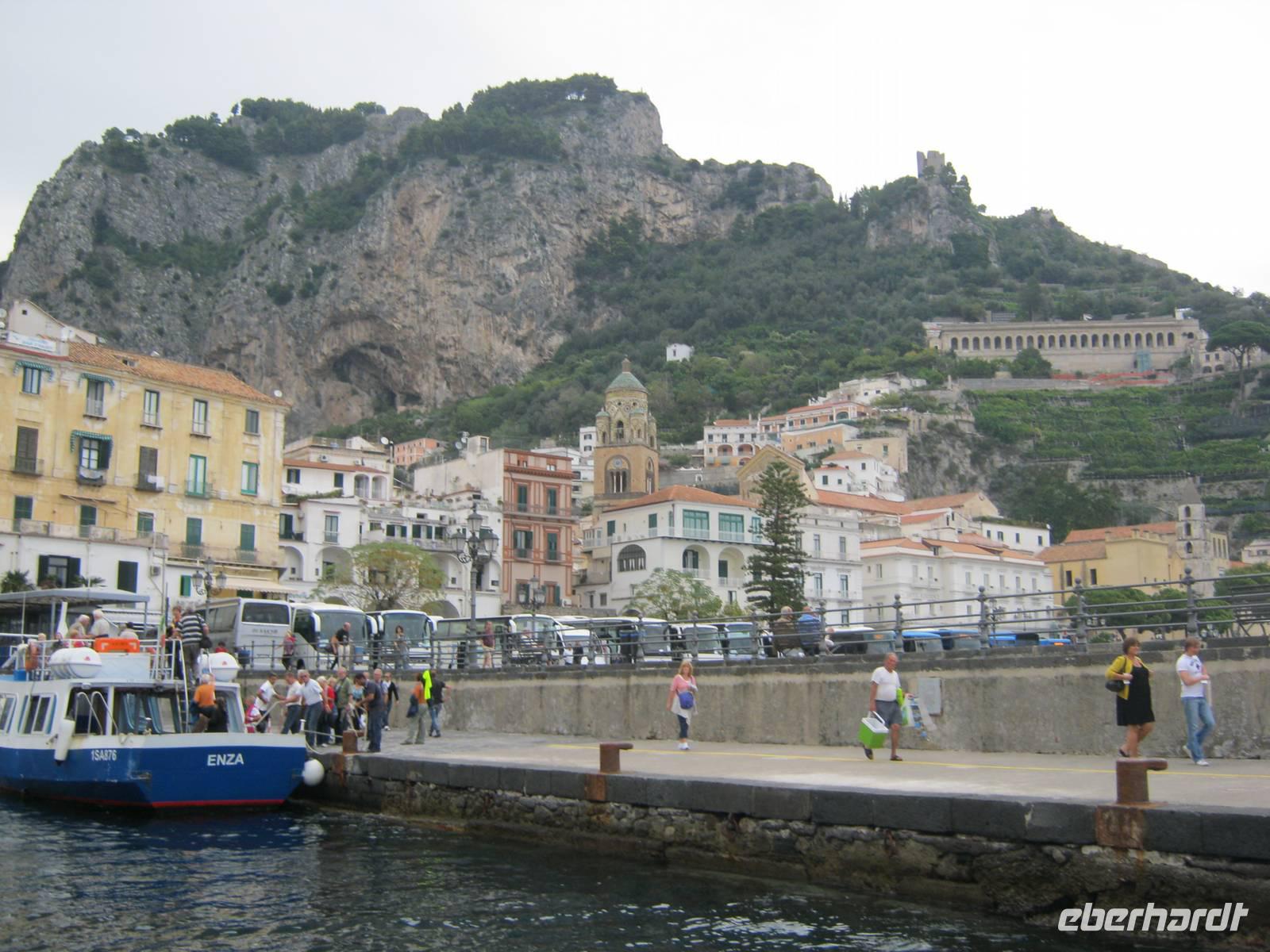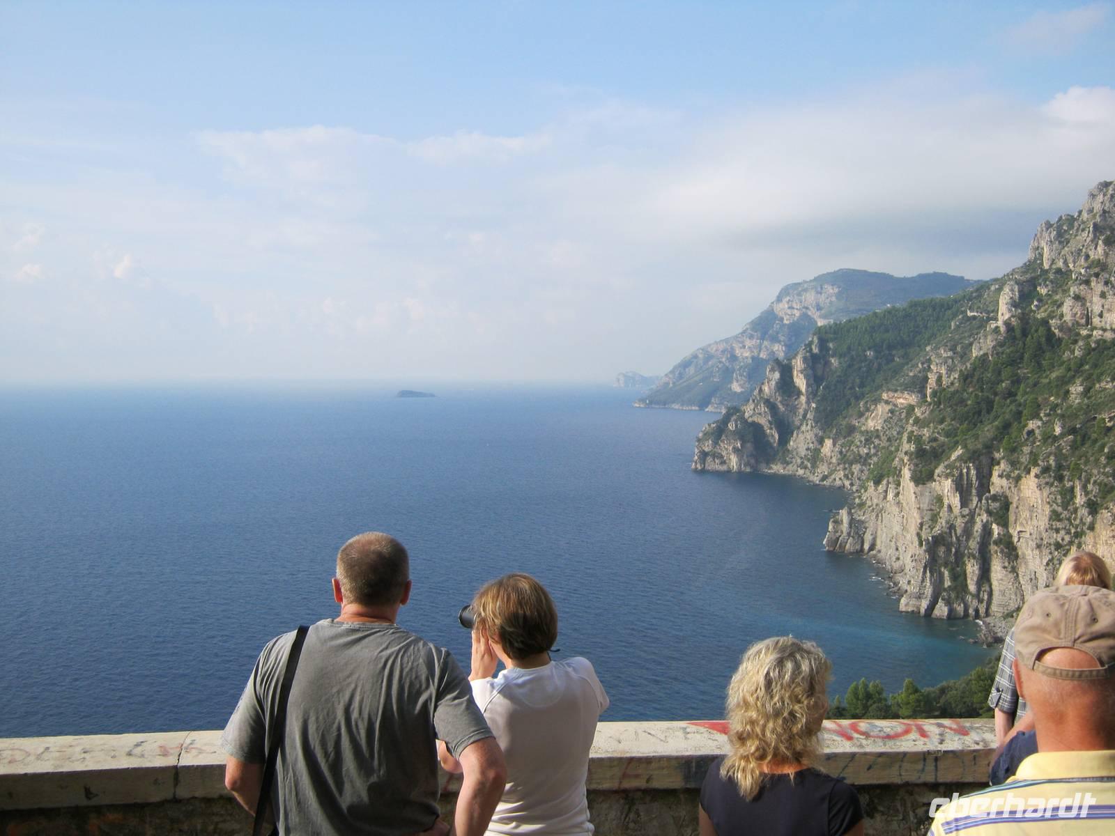 Die Fahrt auf der Amalfitana zwischen Himmel und Abgrund führt über Positano nach Amalfi. Allein schon die Namen - wie viele Dichter haben sie besungen! Und wer würde angesichts des pittoresken Städtchens Amalfi vermuten, dass dieses im Mittelalter neben Venedig und Genua zu den maritimen Großmächten zählte? Nur der Dom mit seiner majestätischen Treppe erinnert noch daran. Am Abend gab es dann noch einen Spaziergang zu einem alten Castello in Agerola, das gerade renoviert wird, wo unser perfekter Gastgeber Stefano dann noch eine degustazione di vino stattfinden liess.