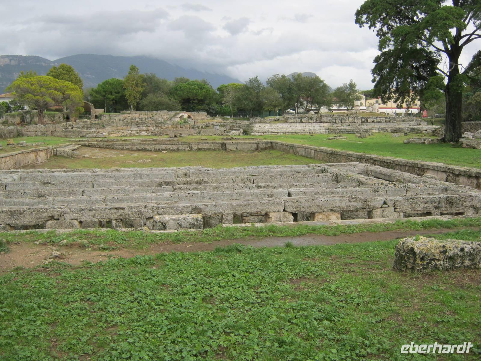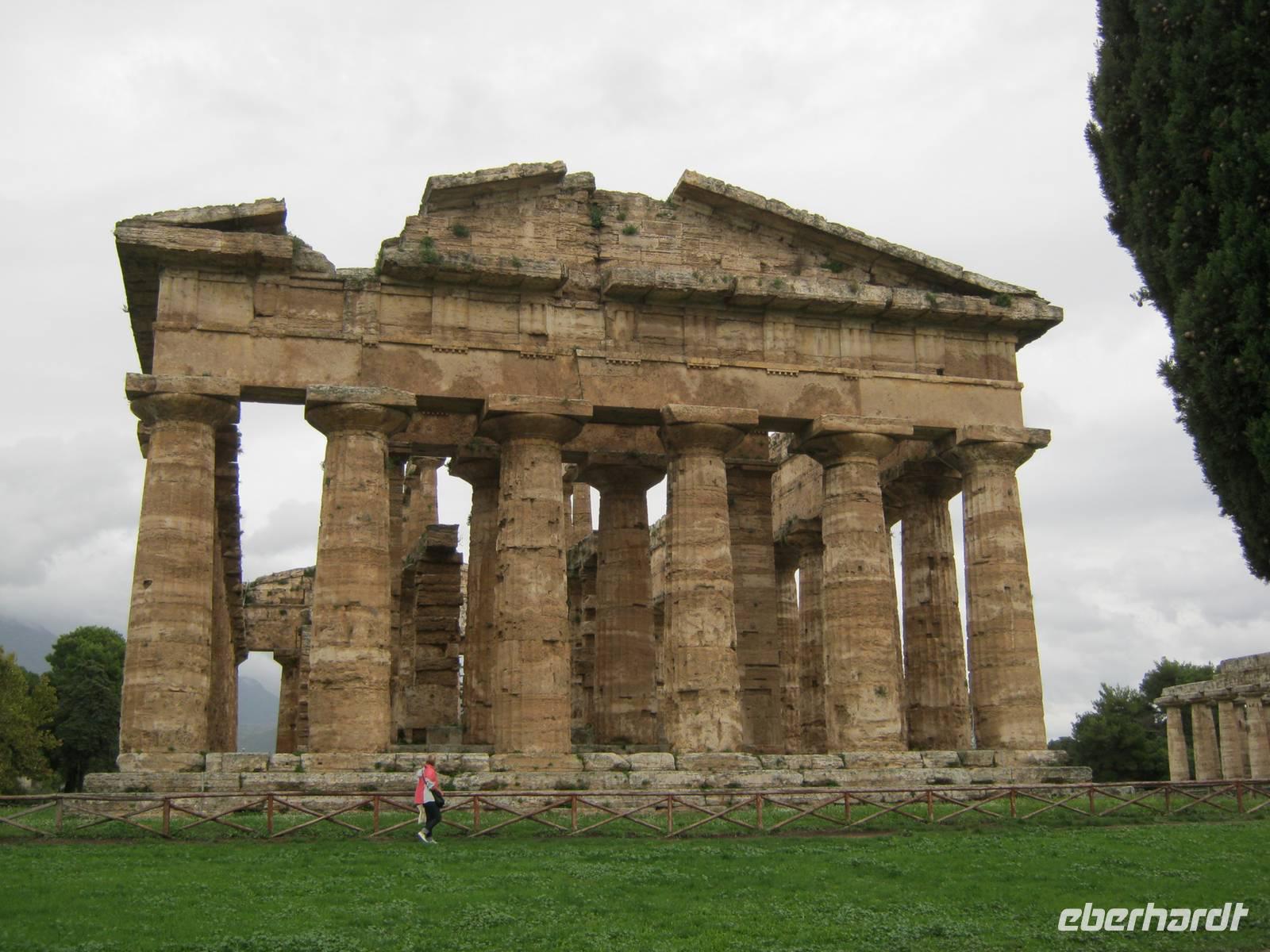 Nach einer Sturmnacht ging es dann mit einem Regentag weiter. Wir besuchten zunächst einen ökologischen Musterbetrieb, der den berühmten Büffelmozzarella herstellt. Den Tieren geht es da wirklich gut und uns auch: wir kosteten Mozzarella und Joghurt. Ich habe schon viele Ausgrabungen besucht, aber wie uns Angelo dann Paestum zeigte und das Schicksal der alten griechischen Kolonie schilderte, das war schon meisterhaft.