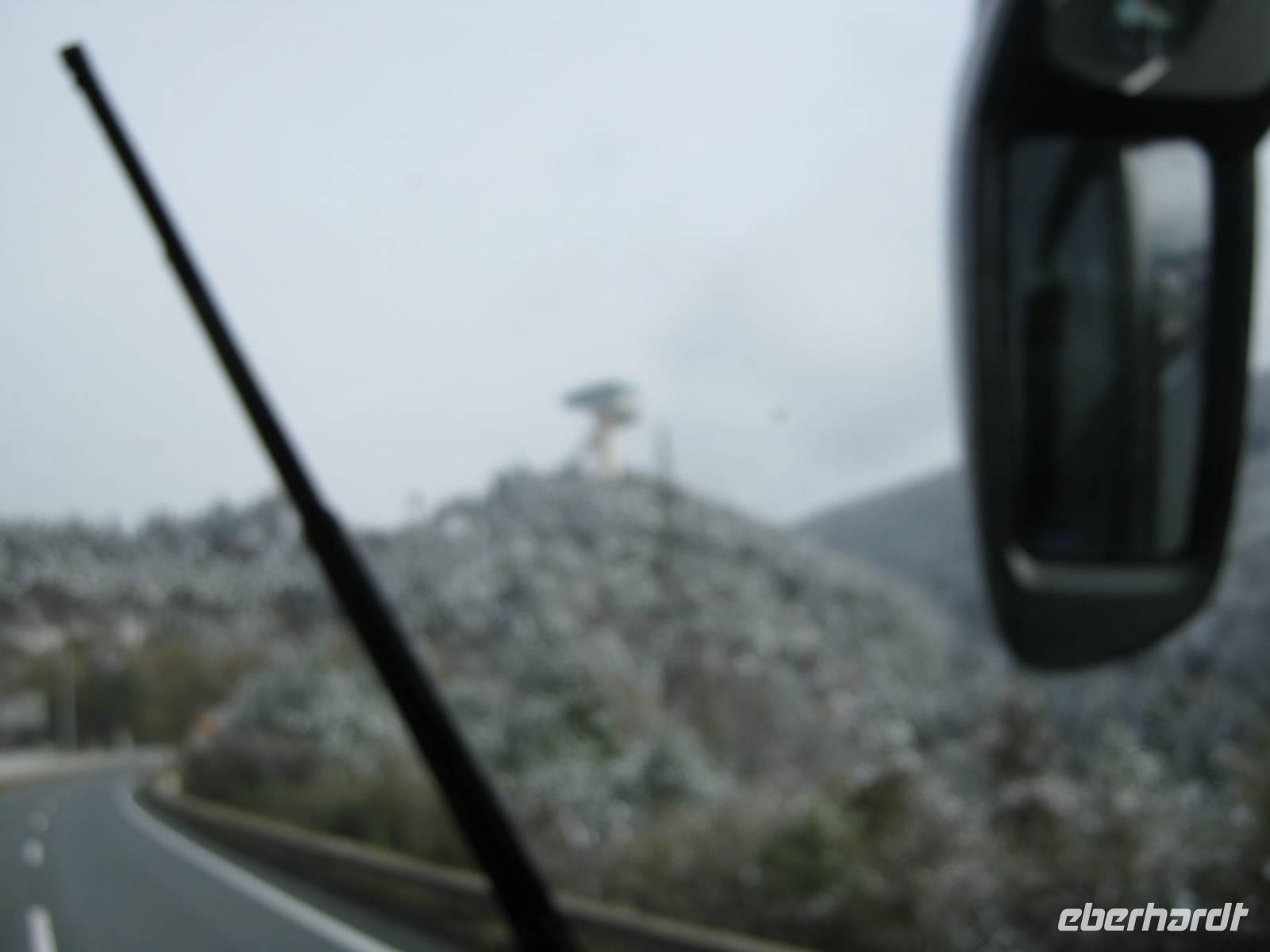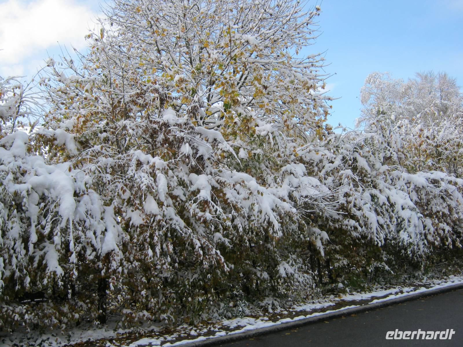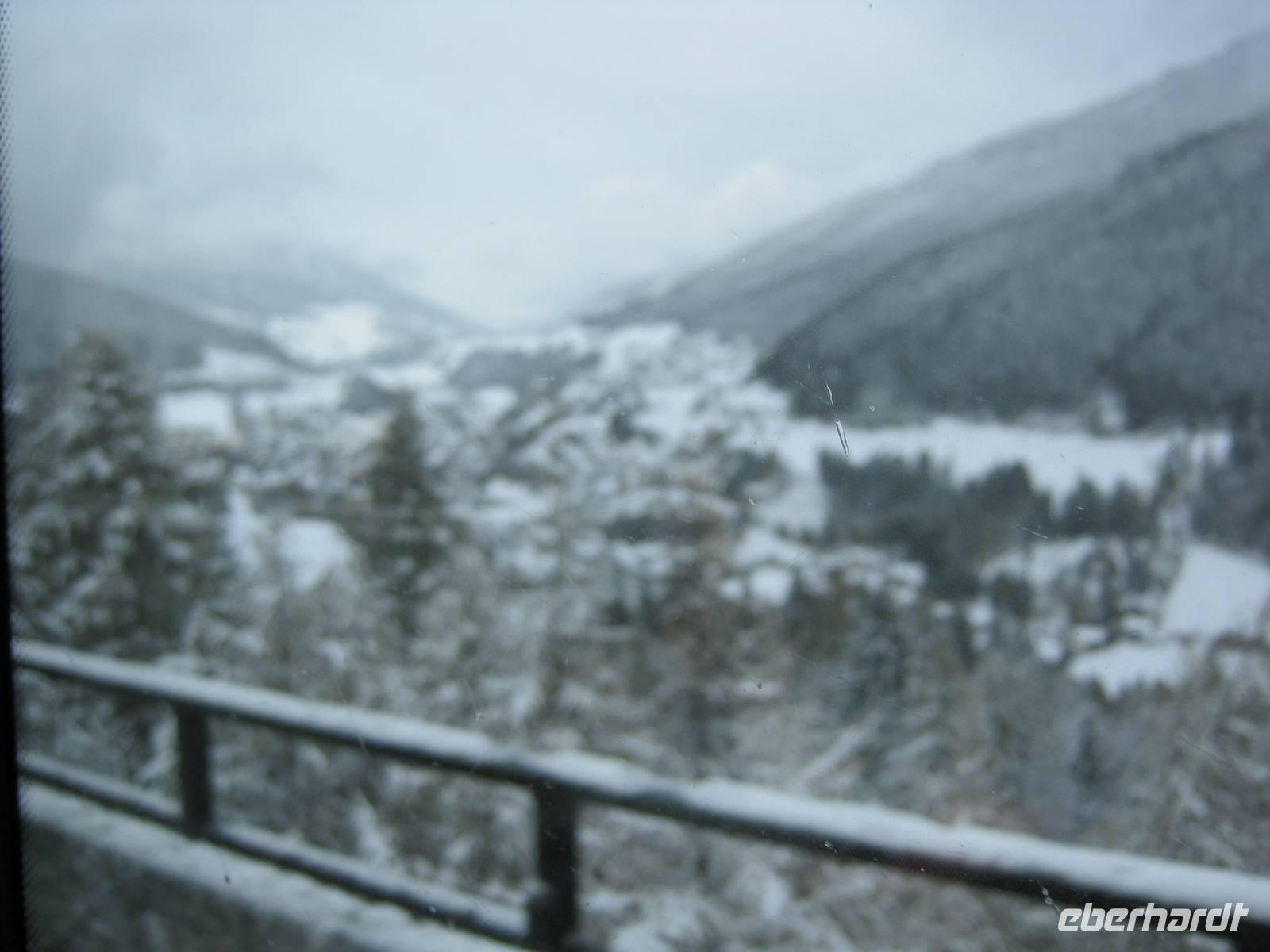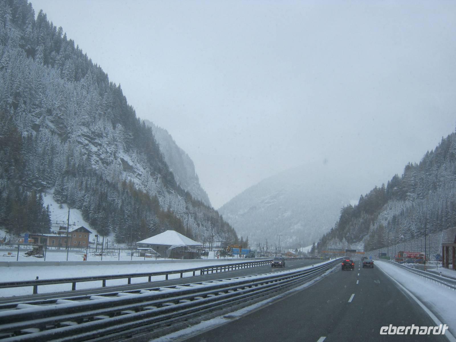 Dann wieder das Etsch- und Eisacktal aufwärts, wo wir die Gelegenheit nutzten uns an einer Raststätte nahe Sterzing mit Südtiroler Spezialitäten einzudecken. Schnee gab es ab da und bis Bayern hinein: es war schon ein außergewöhnlicher Anblick Bäume und Sträucher noch im vollen Laub zu sehen, aber mit Schnee bedeckt.