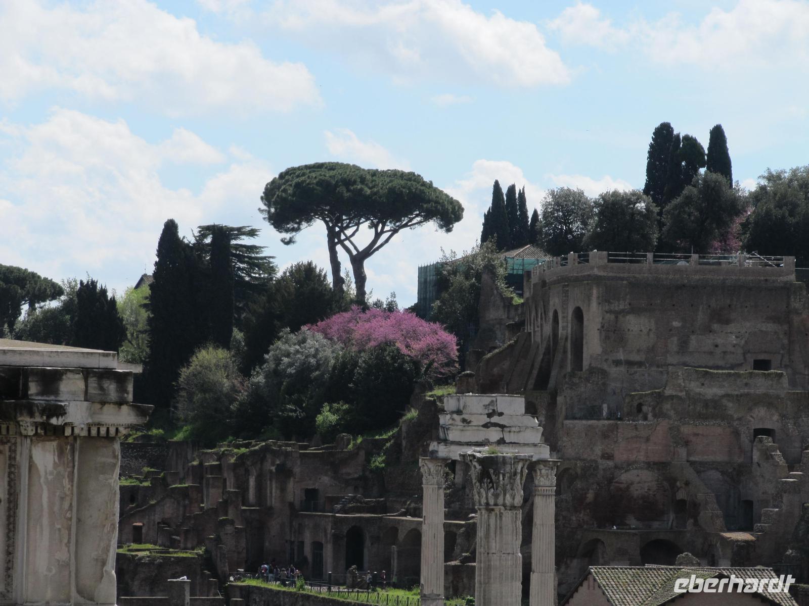 Mit unserem Bus besuchen wir heute die Ewige Stadt Rom. Stadtführerin Kerstin berichtete uns sehr faxchkundig und interessant viel über Architektur und Geschichte der Stadt Rom und ihre wunderbaren Bauwerke. Wir besichtigen zuerst San Giovanni, die Lateransbasilika. Dann legen wir einen Stopp am Kolosseum und Konstantinbogen ein, besteigen den Capitolhügel mit dem von Michelangelo entworfenen Capitolsplatz, wo das Reiterstandbild von Marc Aurel die Jahrhunderte überstanden hat. Der Platz ist uns durch die italienische 50-Cent-Münze vertraut! Dort befinden sich die ersten Museen der Welt, die Capitolinischen Museen, das Rathaus und an der Ecke die Wölfin mit Romulus und Remus. Wir blicken ins beeindruckende Forum Romanum.