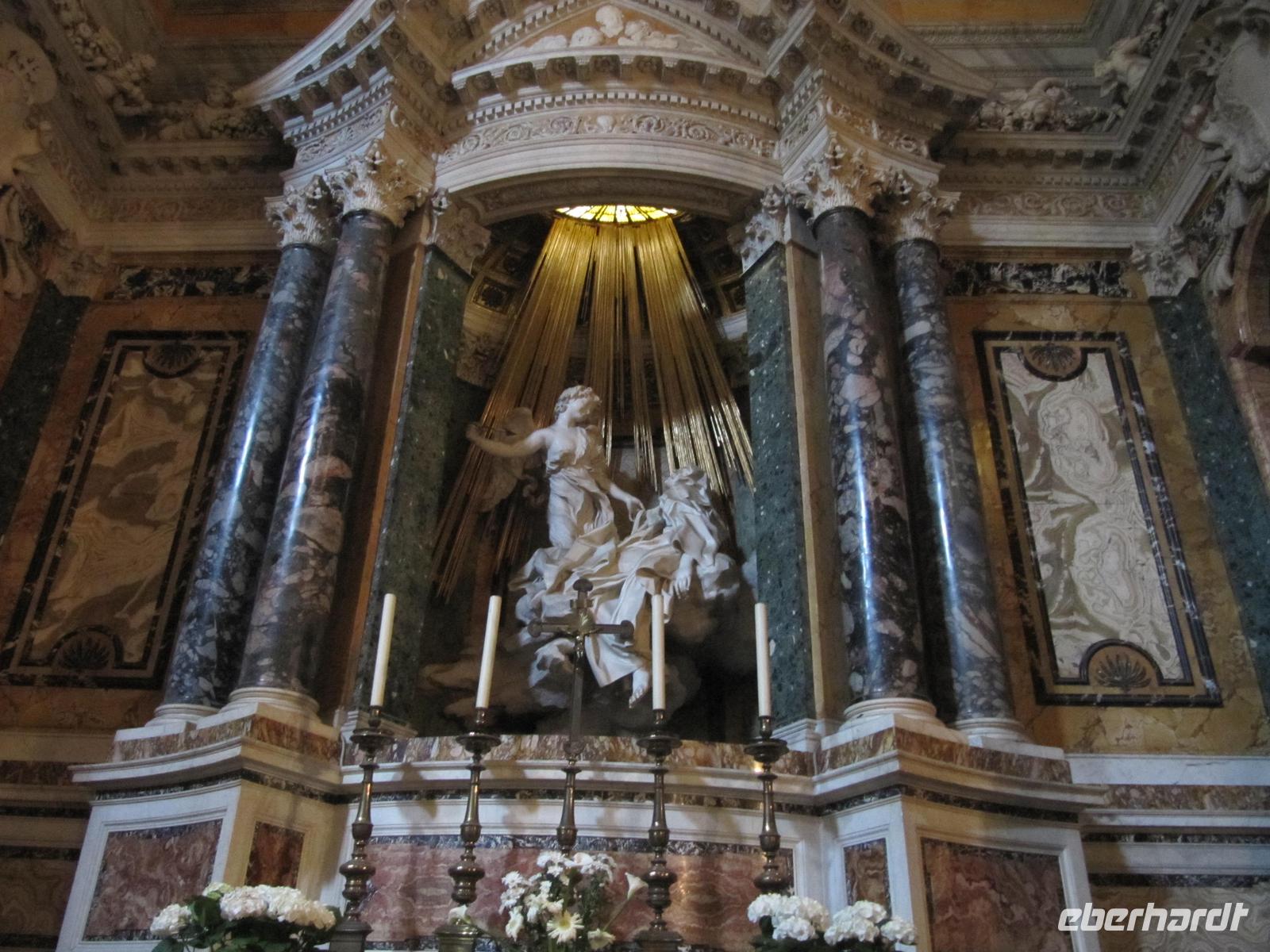 Mit öffentlichem Bus und Metro bringt uns Petra heute zum Hauptbahnhof Termini. Alleine die "römische" Busfahrt ist schon ein Erlebnis! An der Kirche Santa Maria Maggiore erwartet uns unsere charmante Stadtführerin Kerstin. Wir besichtigen die Kirche, eine der sieben Hauptkirchen von Rom. Da die Kirchen Roms unser heutiges Thema sind, zeigt uns Kerstin zusätzlich noch die Kirchen Santa Prassede und Santa Pudenziana. Wir spazieren zur Piazza Repubblica, besichtigen die Kirche Santa Maria degli Angeli, von Michelangelo entworfen, und dann sogar noch Santa Maria della Vittoria. Alles Kirchen, die man normalerweise bei einer Stadtbesichtigung nicht im Programm hat. Die Mittagspause verbringen wir am Campo de Fiori, und weiter geht's mit dem Stadtbus zum Vatikan.