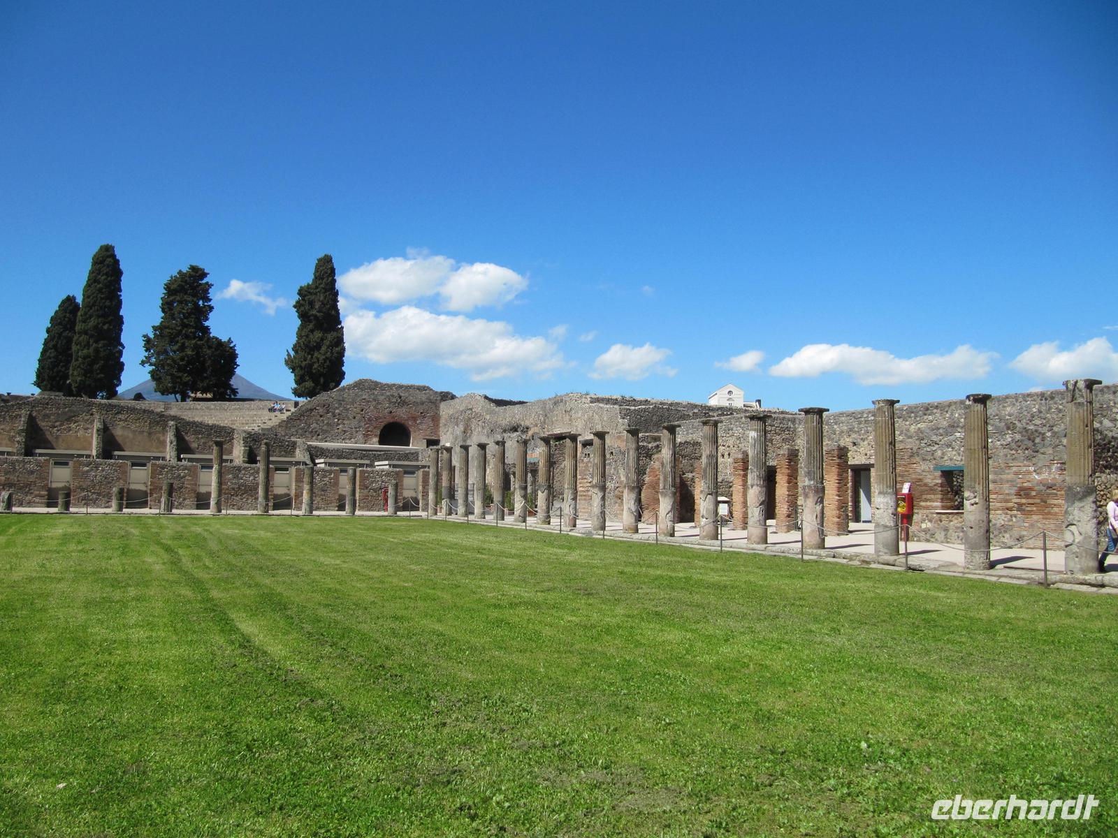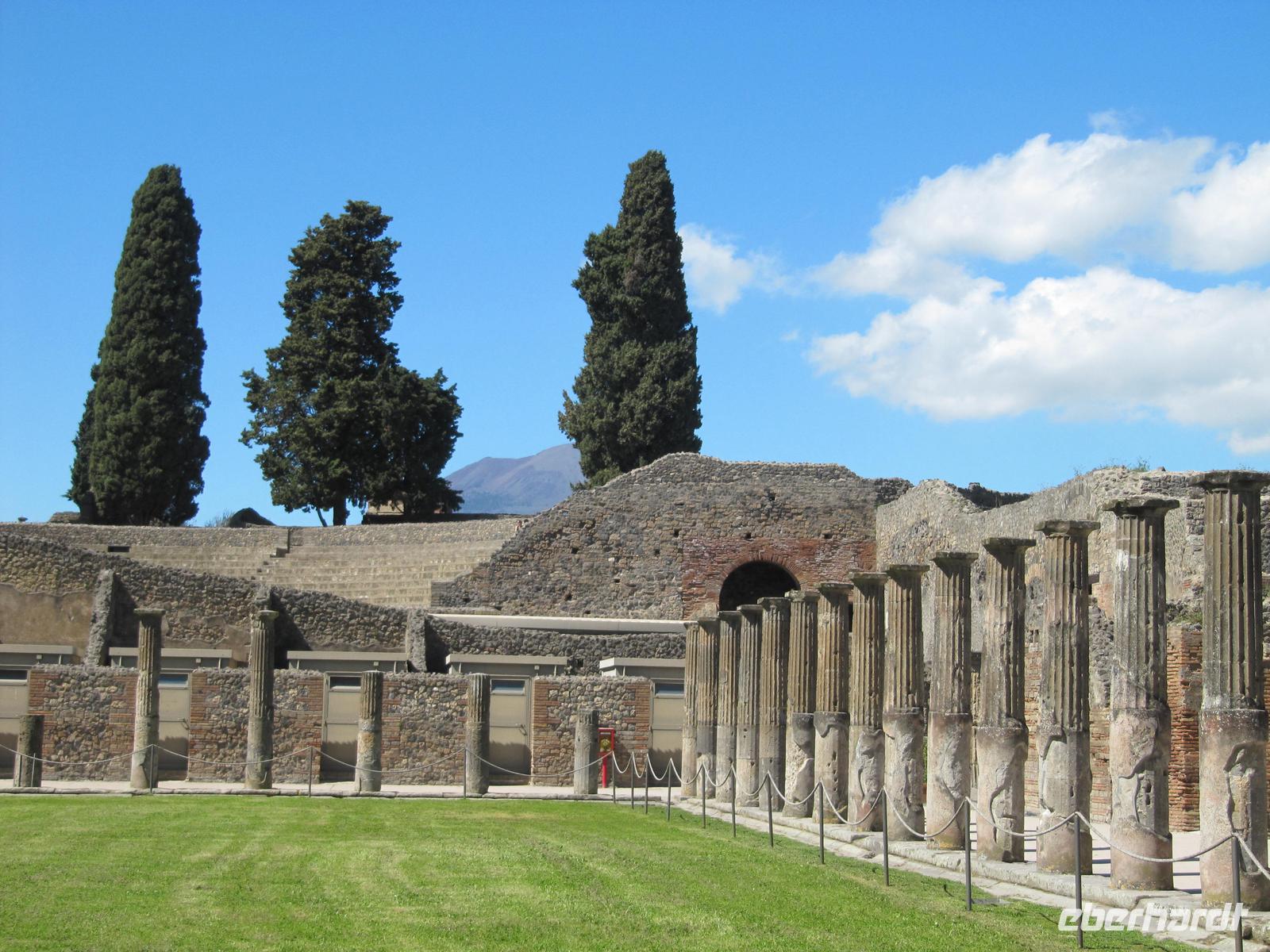 Unser nächstes Ziel ist Pompeji. Unser Führer Angelo zeigte uns die archäologischen Ausgrabungen und gibt uns sehr interessante umfangreiche Informationen zum Leben in der Stadt im 1.Jh. Es bleibt noch etwas Zeit für Postkarten ...und der Bus bringt uns zu unserem Hotel in Agerola. Eine lange Auf-fahrt hinauf in die Milchberge, eine Fahrt durch den Tunnel - und wir sind auf der Südseite der Sorrentinischen Halbinsel. Unser Grand-Hotel Sant Orsola erwartet uns direkt am Abhang in 630 m Höhe oberhalb der Amalfitana. Ein Traumblick über den Golf von Salerno bis Capri. Herzlich werden wir von Stefano und seinem Team begrüßt!
