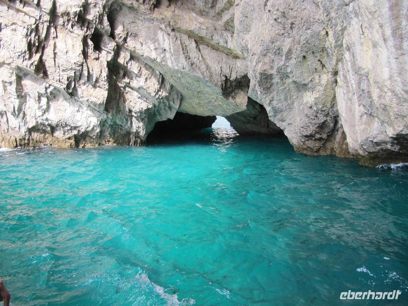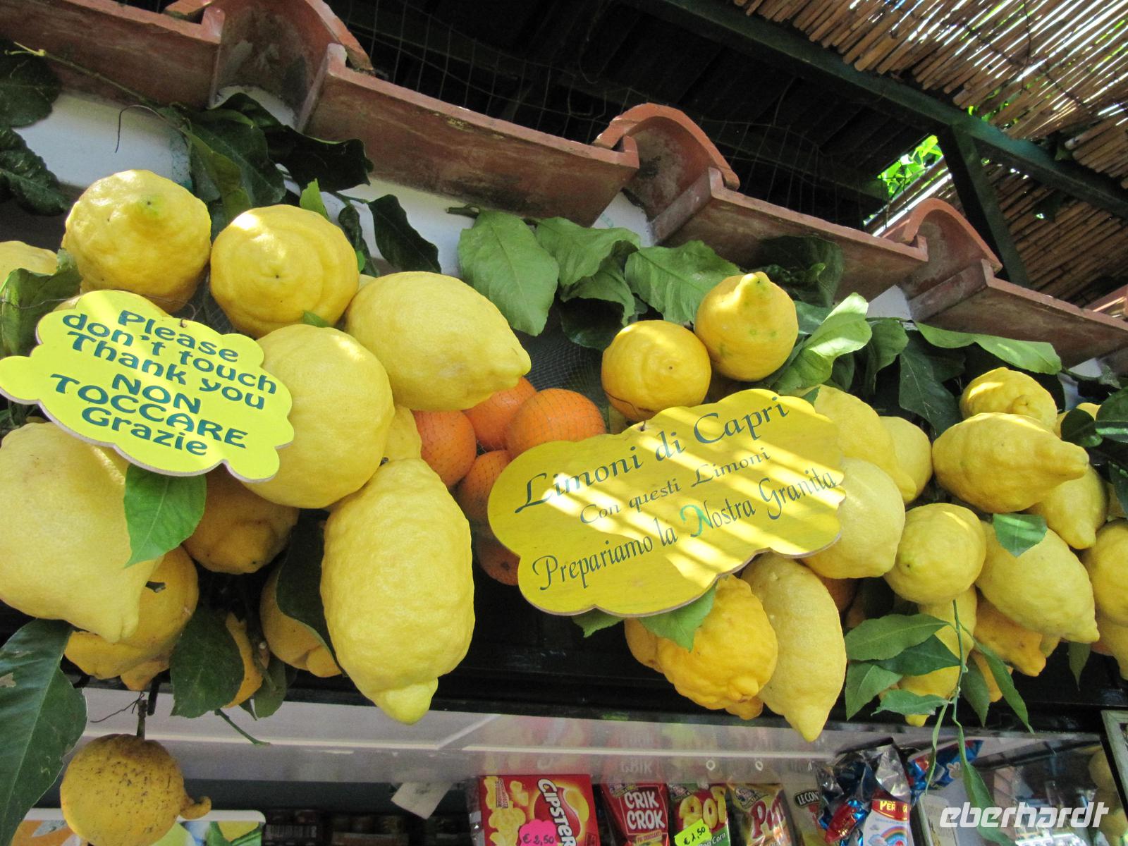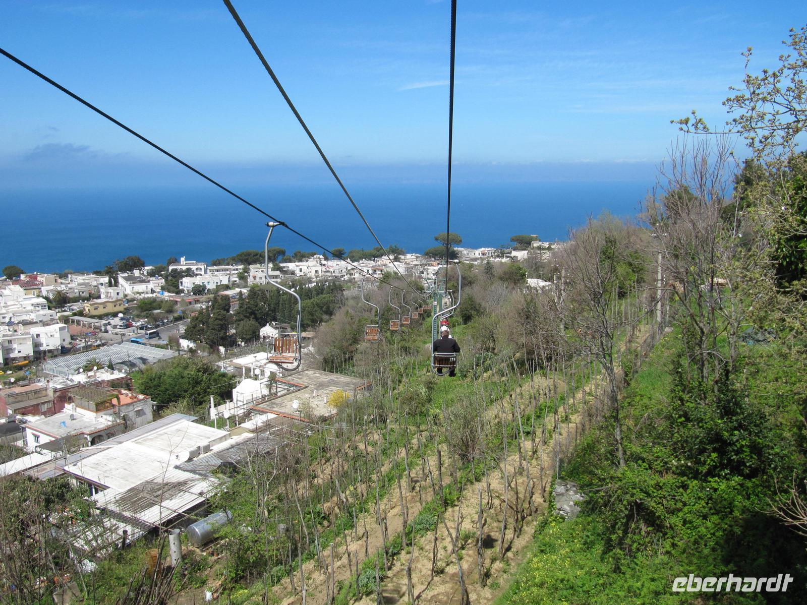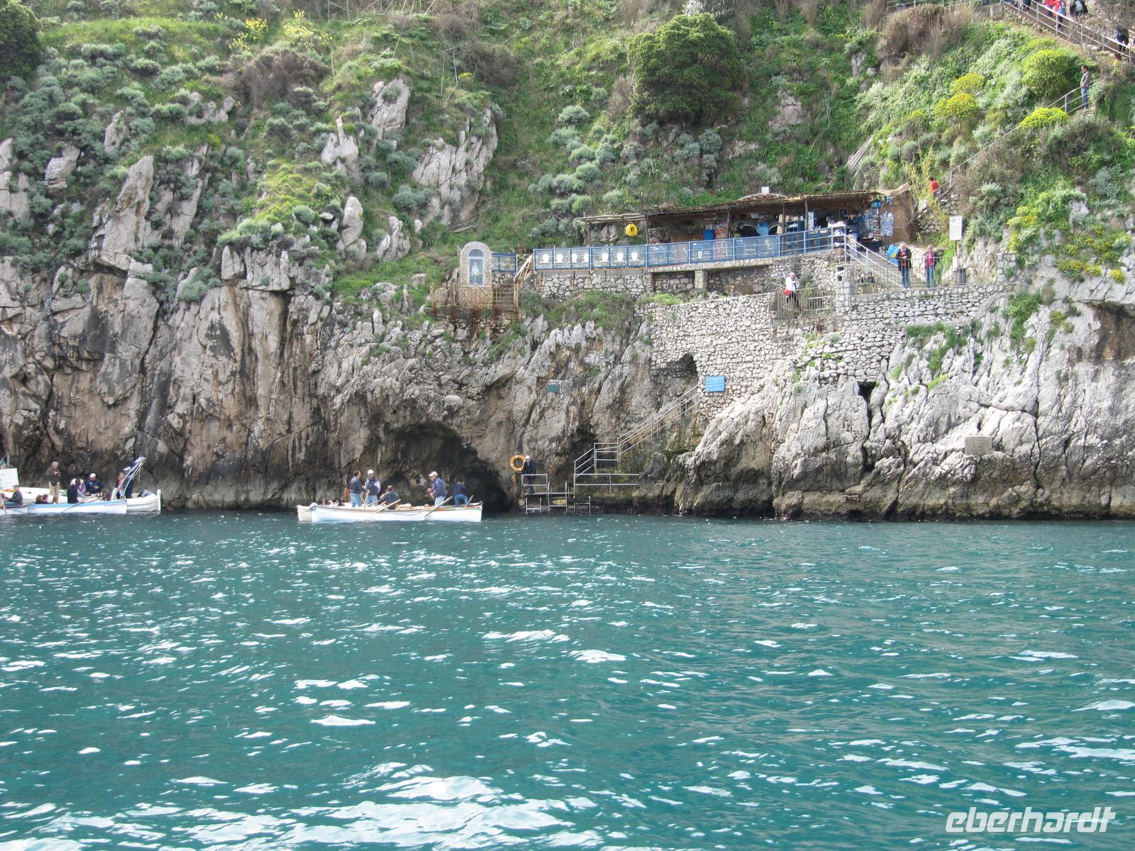 Heute müssen wir früh aufstehen und Roy bringt uns nach Sorrent. Mit unserer Insel-Führerin Dagy geht es mit dem Schiff nach Capri. Wir besteigen gleich das nächste Schiff und machen eine Bootstour um die Insel. Vom Meer aus kann man erst so richtig die Schönheit der Insel entdecken, die Kalksteinfelsen, die Grotten mit ihren orangefarbenen Korallen. Wir bewundern die verschiedenfarbigen Blautöne des Meeres! Mit einem Elektrobus fahren wir dann hinauf nach Anacapri. Dagy gibt uns Informationen, was man so alles tun kann. Zum Aussichtspunkt an der Villa Munthe spazieren, um einen Blick über die Insel Capri zu werfen und die Villa besichtigen. Manche nehmen mit Dagy in der Mittagspause ein kleines Mahl ein. Viele probieren die Spezialitäten der Insel, Zitronenlikör, Zitronengrappa, Zitronenschokolade... Einige Gäste fahren mit dem Sessellift auf den Monte Solaro, leider liegt der Gipfel heute in den Wolken. Aber auch die Auffahrt macht Spaß und man kann bis zur Insel Ischia blicken.