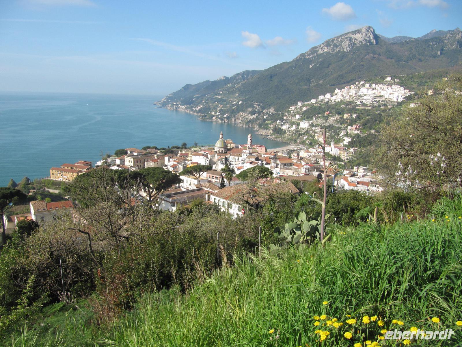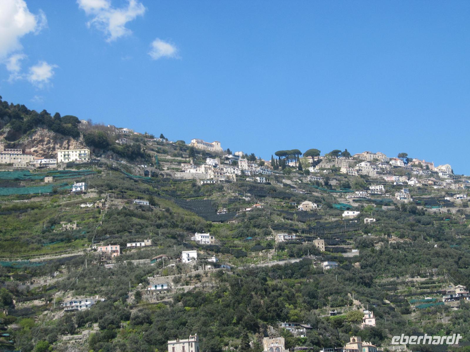 Wir nutzen das herrliche Wetter, um noch einen Spaziergang mit Petra zum Aussichtspunkt am Castello Lauritano zu unternehmen. Wir haben einen herrlichen Ausblick auf Amalfi, Ravello und die Amalfiküste im Golf von Salerno. Petra gibt im Namen von Eberhardt-Travel einige Gläschen Wein aus, und wir trinken auf den schönen Urlaub an der Amalfiküste, denn leider ist das schon unser letzter Tag im Süden Italiens!