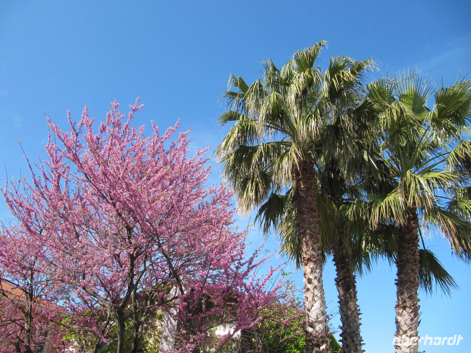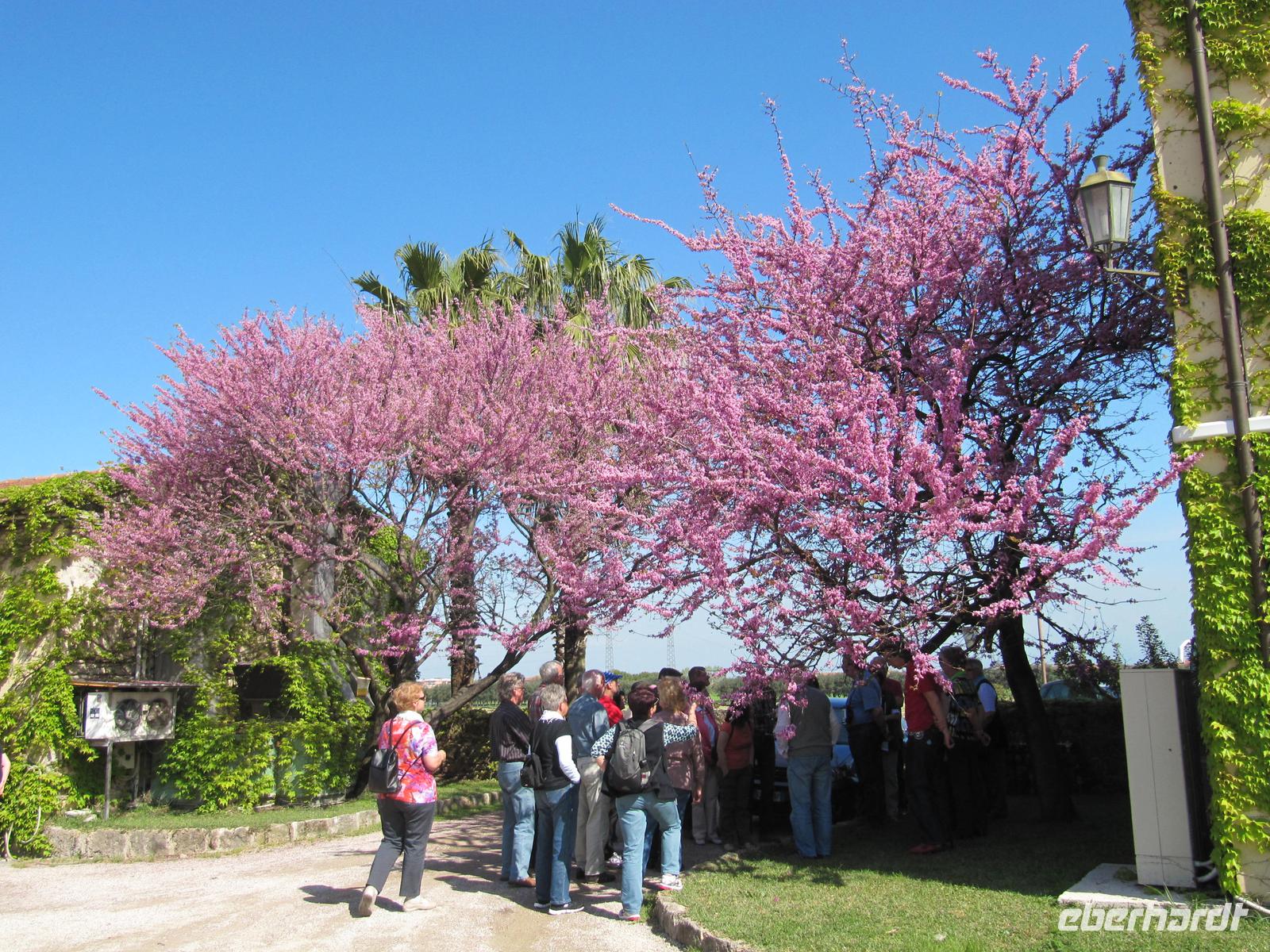 Vorbei an Nürnberg, München, Innsbruck, Bozen führt uns unser Weg zur Zwischenübernachtung nach Riva del Garda, ins Hotel Albarello, etwas nördlich vom Gardasee. Da wir keinerlei Stau haben, sind wir recht früh am Gardasee und unsere Reiseleiterin Petra macht mit uns noch einen kleinen Bummel in Torbole an den See. Die erste Vegetation des Südens mit Zypressen und Palmen begrüßt uns. Auch vor dem Abendessen kann man noch einen Spaziergang durch das Örtchen Varone machen und die ersten Frühlingsblüher genießen, denn bei uns in Deutschland ist es ja noch kalt und grau!