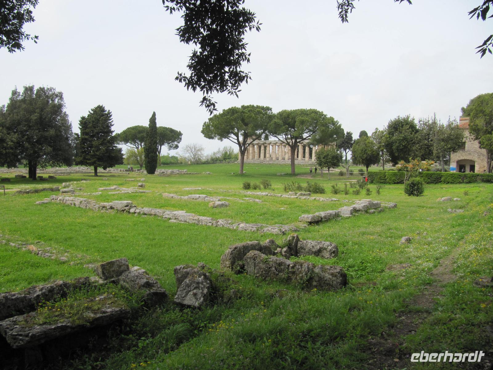 Anschließend besuchten wir die Weltkulturerbestätte Paestum, die Ruinen von 3 großen dorischen Tempeln. Angelo führte uns zuerst ins Museum, das eine bedeutende Sammlung griechischer Altertümer zeigt. Beeindruckend sind die bemalten Steinplatten, die als Sargdeckel oder -seitenwände dienten.