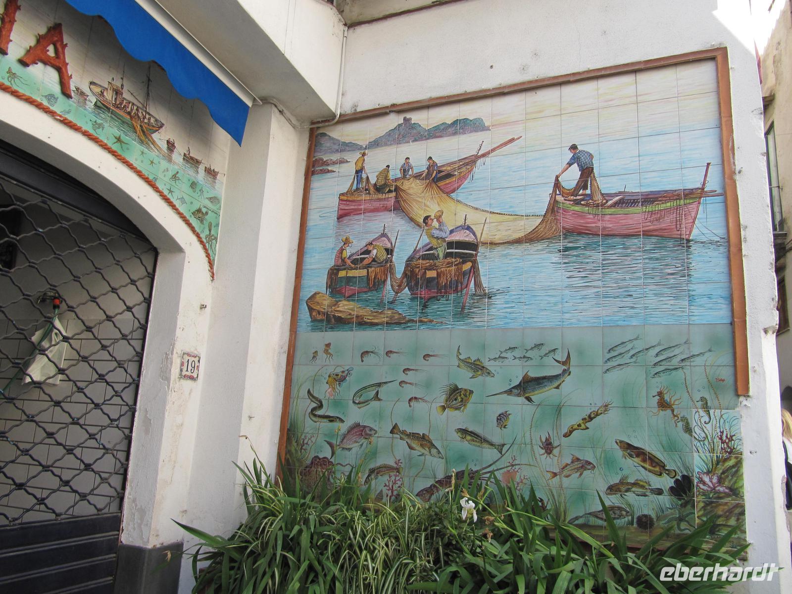 Bekannt ist das Grab des Turmspringers, wo der Übergang vom Leben in das Totenreich als Sprung in das Wasser gedeutet wird. Über die Autobahn fahren wir wieder zurück nach Agerola.