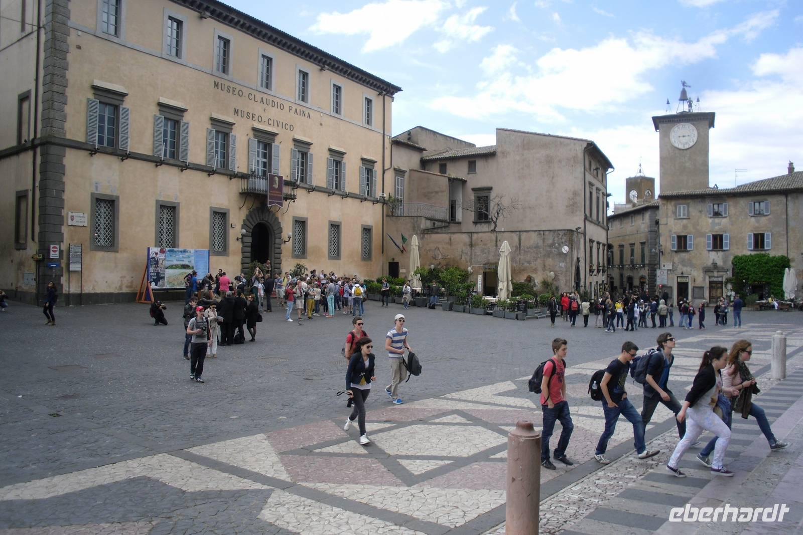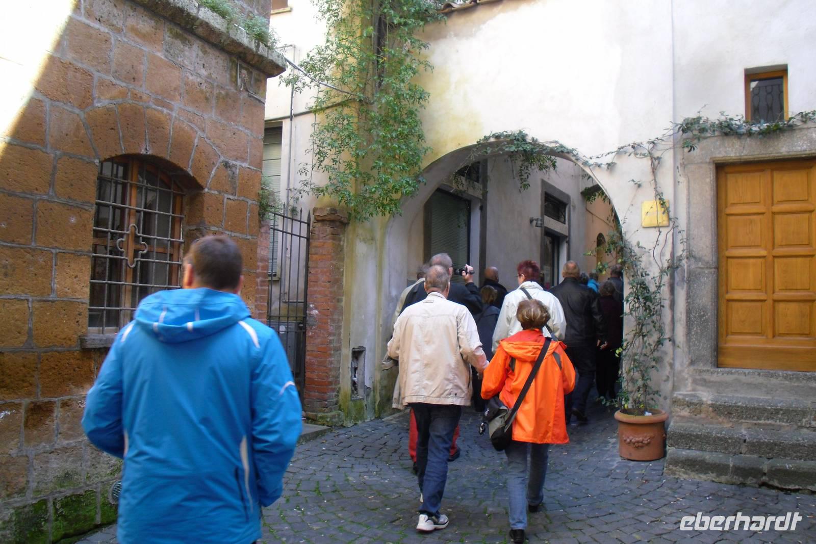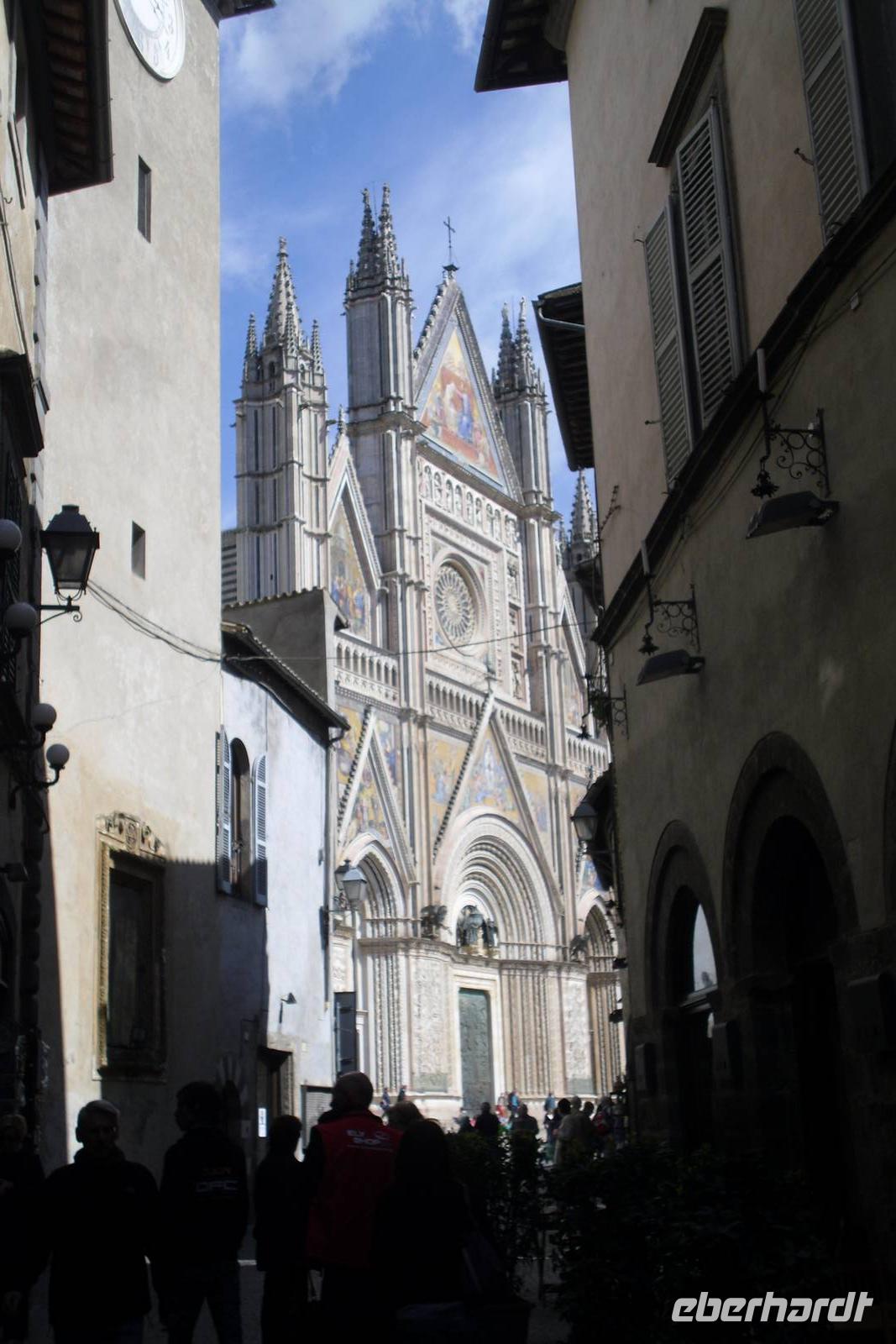 Nach einem für italienische Verhältnisse „reichhaltigen Frühstücksbuffet" mit Wurst und Käse - für einen Italiener völlig unnormal, wie man bereits am Morgen so viel essen kann! - fuhren wir weiter in Richtung Süden. Wir entschieden uns noch ein Stück die Ostuferstraße entlang zu fahren und erlebten so den Gardasee hautnah. Wir sahen unter anderem die berühmte Skaligerburg von Malcesine, fuhren durch Torri del Benaco und verließen den Gardasee bei Garda, um wieder auf die Brennerautobahn zu gelangen. An Verona vorbei ging es nun durch die weitläufige Po-Ebene, natürlich überquerten wir dabei auch den Po, der der Ebene den Namen gab. Der Po ist mit 652 Kilometern der längste Fluss Italiens; er entspringt in den Kottischen Alpen und mündet südlich von Venedig ins Adriatische Meer. Wenig später erreichten wir Modena, hier endet nun übrigens nach insgesamt 333 Kilometern auch erst die Brennerautobahn! Am Südrand der Po-Ebene entlang bis Bologna, der Hauptstadt der Region Emilia-Romagna, führte uns unser Weg nun hinein in den tosco-emilianisch-romagnolischen Apennin. Der Scheitelpunkt der Autobahn liegt auf über 700 Metern. Im Apennin erreichten wir dann etwa 40 Kilometer nördlich von Florenz eine der bekanntesten Regionen Italiens - die Toskana! Florenz ließen wir leider nur links liegen, aber wir hatten heute schließlich auch noch einiges vor. Wir genossen die Fahrt durch die sanft gewellte Hügellandschaft der Toskana, fuhren vorbei an Arezzo und Montepulciano in die Region Umbrien hinein. Umbrien ist eine der wenigen Binnenregionen Italiens und wird oft auch als das „grüne Herz Italiens" bezeichnet. Unser Ziel war Orvieto, einzigartig auf einem 300 Meter hohen vulkanischen Tuff-Felsen gelegen. Gemeinsam mit unserem Stadtführer Marco fuhren wir mit einer Funicolare hinauf in die Altstadt von Orvieto. Die unter den Etruskern bedeutende Stadt nahm als Zufluchtsort von Papst Klemens VII. während der Plünderung Roms (Sacco di Roma, 1527) eine herausragende Stellung ein. Heute gehört Orvieto mit seinen herrlichen Baudenkmälern zu den interessantesten Städten Mittelitaliens. Wahrzeichen ist der Dom - mit seinem Bau wurde 1290 begonnen zur Aufbewahrung der Reliquien des Blutwunders von Bolsena. Die Errichtung des Bauwerks erforderte bis zur Vollendung im Jahr 1600 die Zusammenarbeit von ungefähr hundert Architekten, Bildhauern, Malern und Mosaiklegern. Die Fassade des Doms ist die kühnste und farbenprächtigste der italienischen Gotik. Mit vielen schönen Eindrücken im Gepäck erreichten wir am Abend die Hauptstadt Italiens - Rom! Gegen 19 Uhr kamen wir im Hotel "Artis", unserem Quartier für die nächsten drei Nächte, an. Hier begrüßten wir auch weitere 11 Fluggäste und somit war nunmehr unsere Gruppe mit insgesamt 37 Personen komplett. Gemeinsam nahmen wir unser Abendessen im Hotel ein. Der erste Eindruck eines römischen Abendessens hätte besser sein können, das Hotel war so ganz und gar nicht auf eine größere Gruppe eingerichtet und auch der Service ließ leider ziemlich zu wünschen übrig! Trotzdem hatten wir viel Spaß, denn wir waren auf diese Situation eingestellt. Es war schließlich der einzige Abend, wo wir hier gegessen haben.