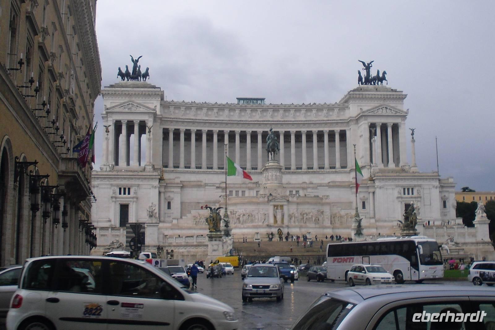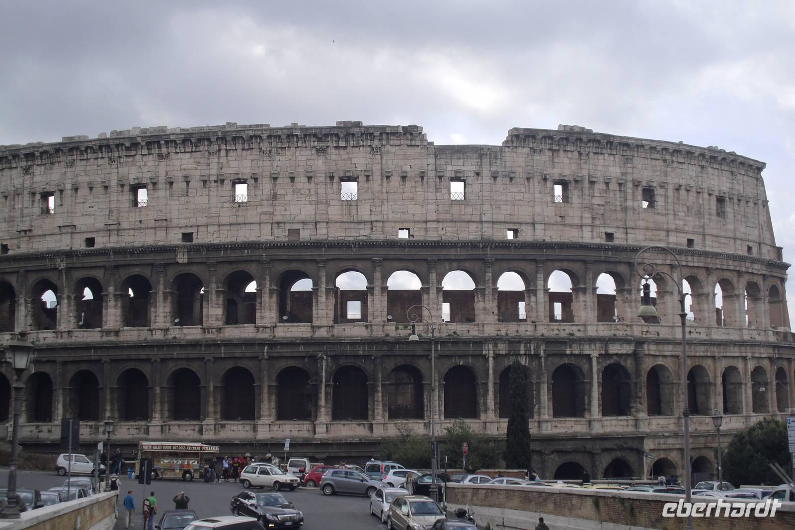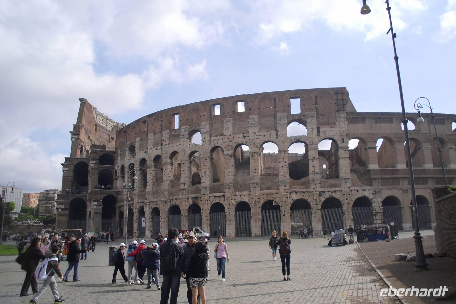 Das Frühstück im Hotel gestaltete sich entgegen unserer Erwartungen als sehr üppig und somit fuhren wir gut gelaunt mit unserem eigenen Reisebus in die Stadt hinein. Wir wurden für die nächsten Tage mit Audio-Geräten ausgestattet, damit wir die Führungen ganz intensiv erleben konnten. Unsere nette Stadtführerin Marilisa Santoro erwartete uns bereits am Piazza Porta Maggiore. Dann ging es sofort zur Besichtigung der Lateransbasilika, welche eine der ältesten Kirchen Roms ist. Sie ist die eigentliche Kathedrale des Papstes und gilt als Mutter und Haupt aller Kirchen der Welt. Im Lauf der Jahrzehnte wurde die Basilika beschädigt und wieder gebaut, das jetzige Aussehen der Basilika San Giovanni im Lateran ist Borrominis Werk. Die weitere Stadtrundfahrt führte uns vorbei an den Caracalla-Thermen, welche mehr als nur ein Badehaus waren, zum Circus Maximus. Es war das größte Stadium im antiken Rom. Fast ein ganzes Jahrtausend lang wurden dort beliebte Wagenrennen gehalten. An einem Punkt der Geschichte bot der Circus Platz für 250.000 Leute - ein Viertel von Roms Bevölkerung. Ein weiterer Höhepunkt unserer Reise stand danach auf dem Programm, das Kolosseum. Von hier aus ging es nun zu Fuß weiter. Das Kolosseum sahen wir allerdings nur von außen, ansonsten hätte das unseren zeitlichen Rahmen gesprengt. Kaiser Vespasian begann den Bau 72 n. Chr., sein Sohn Titus weihte die Arena nach nur achtjähriger Bauzeit mit hunderttägigen Festspielen ein. Unzählige Tiere und Gladiatoren wurden geopfert. Sehr lebendig sind allerdings noch die Legionäre, mit denen man hier gegen ein Entgelt für ein Foto posieren kann. Weiter spazierten wir entlang des Forum Romanum. Von den Kaiserforen wurde nicht nur Rom, sondern das ganze Römische Reich regiert. Hier lag für fast 1.000 Jahre das Zentrum der Antike. Der Etruskerkönig Priscus hatte im 6. Jh. v. Chr. den Sumpf zwischen Kapitol, Palatin und Esquilin entwässert und als "Cloaca Maxima", die erste große Kläranlage der Antike, dem Tiber zugeführt. Das Forum Romanum, ursprünglich als Vesta-Heiligtum gedacht, entwickelte sich vom Viehmarkt zur politischen Arena. Nun ging es zum Kapitolshügel hinauf - hier standen einst die Tempel Jupiters und Junos. Michelangelo gestaltete im Jahr 1536 den trapezförmigen Kapitolsplatz, der vom Palazzo dei Senatori, dem Palazzo dei Conservatori und dem Palazzo Nuovo gerahmt wird. Den Piedestal, wo Kaiser Mark Aurel seit 1538 mit erhobener Hand grüßte, schmückt heute eine Kopie. Vor Umweltschäden bewahrt steht das originale Reiterstandbild aus dem 2. Jh. in den Kapitolinischen Museen. Unser Spaziergang führte uns nun weiter über den Piazza Venezia zum berühmten Trevi-Brunnen, wo wir eine kleine wohlverdiente Mittagspause einlegten. Roms beliebteste Wasserorgel steht auf einem kleinen Platz, umgeben von sechsstöckigen Palazzi. Mit dem Bau schufen sich die Barockpäpste 1750 ein letztes großes Denkmal, denn ihre Macht im Kirchenstaat schwand dahin. Meeresgott Ozeanus braust mit zwei Pferden durch einen Triumphbogen heran. Viele Gäste warfen Münzen in den Brunnen, um nach Rom zurückzukehren. Weiter führte uns unser Stadtrundgang durch die engen Gassen Roms zum Pantheon - ein Zylinder mit einer Kuppel drauf, so einfach-genial ist die Konstruktion des Pantheons. Markus Agrippa, Schwiegersohn von Augustus, ließ das Pantheon 27 v. Chr. den Göttern bauen. Zusätzlich zum eigentlichen Programm machten wir am Nachmittag noch einen kleinen Abstecher auf den Quirinalshügel, der zu den berühmten sieben Hügeln des antiken Rom zählt. An der Piazza del Quirinale fällt der Blick über die Dächer von Rom direkt auf die Kuppel des Petersdoms. Neben der Aussichtsterrasse findet man auf der Piazza del Quirinale den Dioskurenbrunnen und einen Obelisken. Auf der bebauten Seite des Platzes steht der Palazzo della Consulta, der Sitz des Verfassungsgerichts und der Quirinalspalast. Diese frühere Residenz des Königs von Italien dient heute als Dienstsitz des Präsidenten der Republik Italien. Danach spazierten wir weiter durch die engen Gassen der Altstadt und erreichten zum Abschluss des heutigen Besichtigungsprogramms die Spanische Treppe. Die beschwingten Balustraden der Spanischen Treppe unter der französischen Kirche Trinita dei Monti sind das harmonische Ergebnis eines jahrzehntelangen Streits zwischen den Päpsten und der französischen Krone. Die Franzosen finanzierten den Aufgang zu ihrer Nationalkirche, und der Sonnenkönig Ludwig XIV. hätte sich am liebsten selbst auf der Piazza di Spagna ein Denkmal gesetzt. Aber die Päpste brachten schließlich ihre Version durch und ließen 1723 die elegante Treppenanlage schaffen. Übrigens erlebten wir die Spanische Treppe mit herrlichen Azaleen, die nur im Frühjahr hier zu sehen sind. Hier hatten wir zum Glück auch noch etwas Freizeit, um uns in den zahlreichen Straßencafés einen leckeren Cappuccino schmecken zu lassen - einfach himmlisch...! Nach einem leckeren Abendessen in der Innenstadt kehrten wir schließlich am Abend nach einem erlebnisreichen Tag gemeinsam zum Hotel zurück. Es war zwar ein leider sehr regnerischer Tag, aber es konnte ja nur besser werden...!