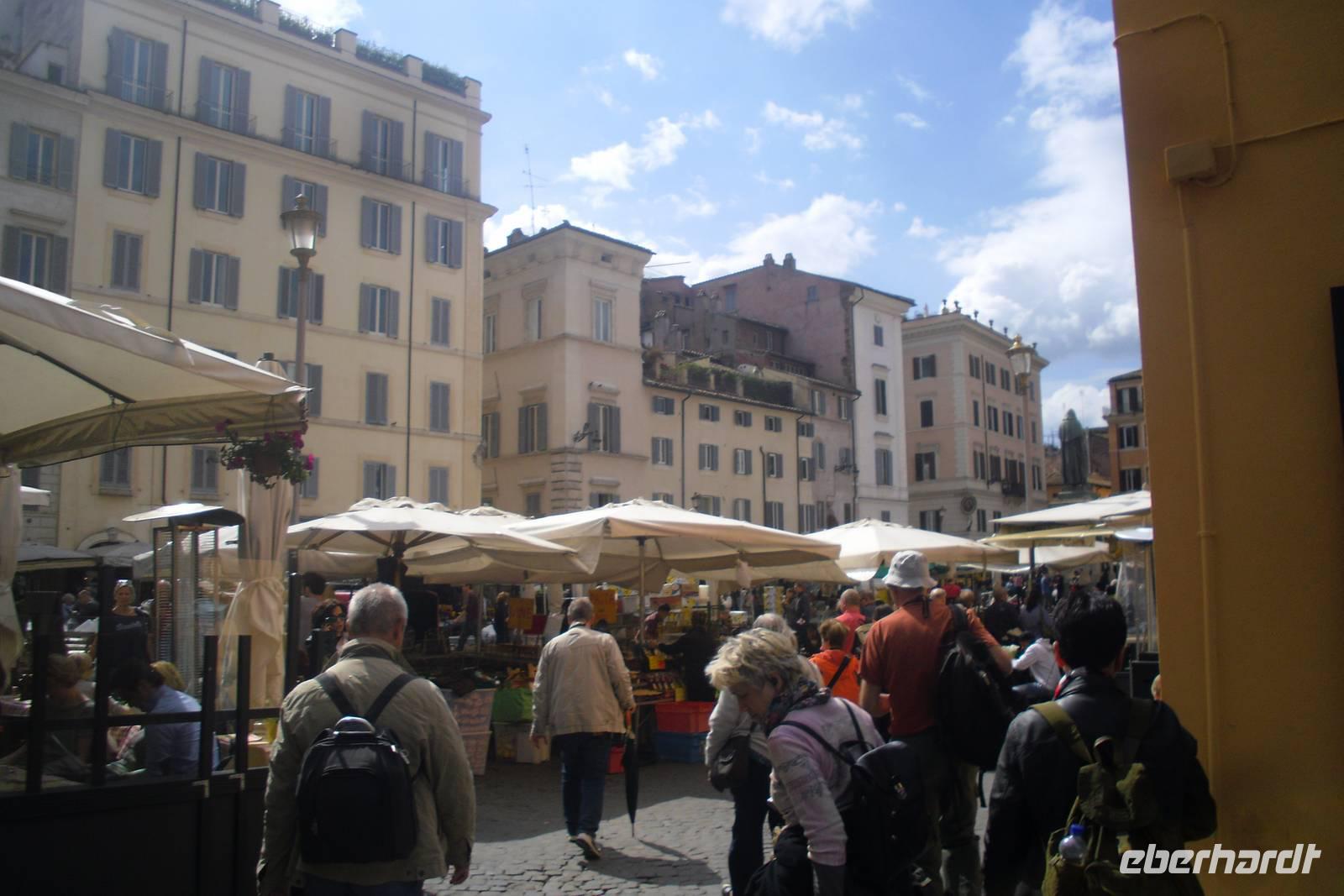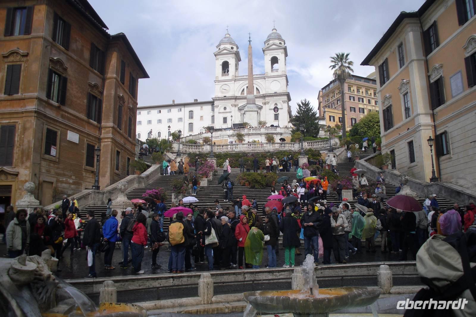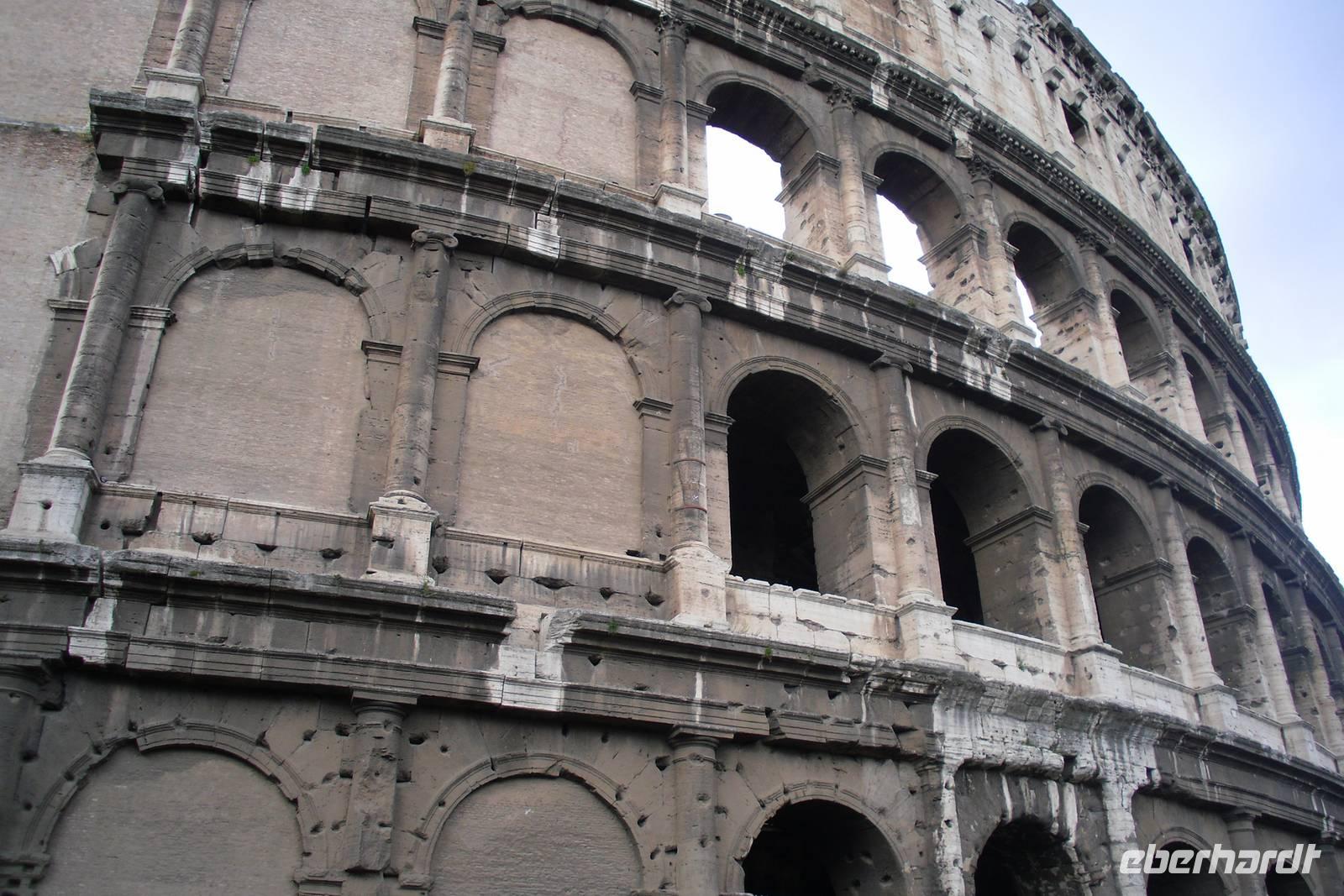 Das Frühstück im Hotel gestaltete sich entgegen unserer Erwartungen als sehr üppig und somit fuhren wir gut gelaunt mit unserem eigenen Reisebus in die Stadt hinein. Wir wurden für die nächsten Tage mit Audio-Geräten ausgestattet, damit wir die Führungen ganz intensiv erleben konnten. Unsere nette Stadtführerin Marilisa Santoro erwartete uns bereits am Piazza Porta Maggiore. Dann ging es sofort zur Besichtigung der Lateransbasilika, welche eine der ältesten Kirchen Roms ist. Sie ist die eigentliche Kathedrale des Papstes und gilt als Mutter und Haupt aller Kirchen der Welt. Im Lauf der Jahrzehnte wurde die Basilika beschädigt und wieder gebaut, das jetzige Aussehen der Basilika San Giovanni im Lateran ist Borrominis Werk. Die weitere Stadtrundfahrt führte uns vorbei an den Caracalla-Thermen, welche mehr als nur ein Badehaus waren, zum Circus Maximus. Es war das größte Stadium im antiken Rom. Fast ein ganzes Jahrtausend lang wurden dort beliebte Wagenrennen gehalten. An einem Punkt der Geschichte bot der Circus Platz für 250.000 Leute - ein Viertel von Roms Bevölkerung. Ein weiterer Höhepunkt unserer Reise stand danach auf dem Programm, das Kolosseum. Von hier aus ging es nun zu Fuß weiter. Das Kolosseum sahen wir allerdings nur von außen, ansonsten hätte das unseren zeitlichen Rahmen gesprengt. Kaiser Vespasian begann den Bau 72 n. Chr., sein Sohn Titus weihte die Arena nach nur achtjähriger Bauzeit mit hunderttägigen Festspielen ein. Unzählige Tiere und Gladiatoren wurden geopfert. Sehr lebendig sind allerdings noch die Legionäre, mit denen man hier gegen ein Entgelt für ein Foto posieren kann. Weiter spazierten wir entlang des Forum Romanum. Von den Kaiserforen wurde nicht nur Rom, sondern das ganze Römische Reich regiert. Hier lag für fast 1.000 Jahre das Zentrum der Antike. Der Etruskerkönig Priscus hatte im 6. Jh. v. Chr. den Sumpf zwischen Kapitol, Palatin und Esquilin entwässert und als "Cloaca Maxima", die erste große Kläranlage der Antike, dem Tiber zugeführt. Das Forum Romanum, ursprünglich als Vesta-Heiligtum gedacht, entwickelte sich vom Viehmarkt zur politischen Arena. Nun ging es zum Kapitolshügel hinauf - hier standen einst die Tempel Jupiters und Junos. Michelangelo gestaltete im Jahr 1536 den trapezförmigen Kapitolsplatz, der vom Palazzo dei Senatori, dem Palazzo dei Conservatori und dem Palazzo Nuovo gerahmt wird. Den Piedestal, wo Kaiser Mark Aurel seit 1538 mit erhobener Hand grüßte, schmückt heute eine Kopie. Vor Umweltschäden bewahrt steht das originale Reiterstandbild aus dem 2. Jh. in den Kapitolinischen Museen. Unser Spaziergang führte uns nun weiter über den Piazza Venezia zum berühmten Trevi-Brunnen, wo wir eine kleine wohlverdiente Mittagspause einlegten. Roms beliebteste Wasserorgel steht auf einem kleinen Platz, umgeben von sechsstöckigen Palazzi. Mit dem Bau schufen sich die Barockpäpste 1750 ein letztes großes Denkmal, denn ihre Macht im Kirchenstaat schwand dahin. Meeresgott Ozeanus braust mit zwei Pferden durch einen Triumphbogen heran. Viele Gäste warfen Münzen in den Brunnen, um nach Rom zurückzukehren. Weiter führte uns unser Stadtrundgang durch die engen Gassen Roms zum Pantheon - ein Zylinder mit einer Kuppel drauf, so einfach-genial ist die Konstruktion des Pantheons. Markus Agrippa, Schwiegersohn von Augustus, ließ das Pantheon 27 v. Chr. den Göttern bauen. Zusätzlich zum eigentlichen Programm machten wir am Nachmittag noch einen kleinen Abstecher auf den Quirinalshügel, der zu den berühmten sieben Hügeln des antiken Rom zählt. An der Piazza del Quirinale fällt der Blick über die Dächer von Rom direkt auf die Kuppel des Petersdoms. Neben der Aussichtsterrasse findet man auf der Piazza del Quirinale den Dioskurenbrunnen und einen Obelisken. Auf der bebauten Seite des Platzes steht der Palazzo della Consulta, der Sitz des Verfassungsgerichts und der Quirinalspalast. Diese frühere Residenz des Königs von Italien dient heute als Dienstsitz des Präsidenten der Republik Italien. Danach spazierten wir weiter durch die engen Gassen der Altstadt und erreichten zum Abschluss des heutigen Besichtigungsprogramms die Spanische Treppe. Die beschwingten Balustraden der Spanischen Treppe unter der französischen Kirche Trinita dei Monti sind das harmonische Ergebnis eines jahrzehntelangen Streits zwischen den Päpsten und der französischen Krone. Die Franzosen finanzierten den Aufgang zu ihrer Nationalkirche, und der Sonnenkönig Ludwig XIV. hätte sich am liebsten selbst auf der Piazza di Spagna ein Denkmal gesetzt. Aber die Päpste brachten schließlich ihre Version durch und ließen 1723 die elegante Treppenanlage schaffen. Übrigens erlebten wir die Spanische Treppe mit herrlichen Azaleen, die nur im Frühjahr hier zu sehen sind. Hier hatten wir zum Glück auch noch etwas Freizeit, um uns in den zahlreichen Straßencafés einen leckeren Cappuccino schmecken zu lassen - einfach himmlisch...! Nach einem leckeren Abendessen in der Innenstadt kehrten wir schließlich am Abend nach einem erlebnisreichen Tag gemeinsam zum Hotel zurück. Es war zwar ein leider sehr regnerischer Tag, aber es konnte ja nur besser werden...!