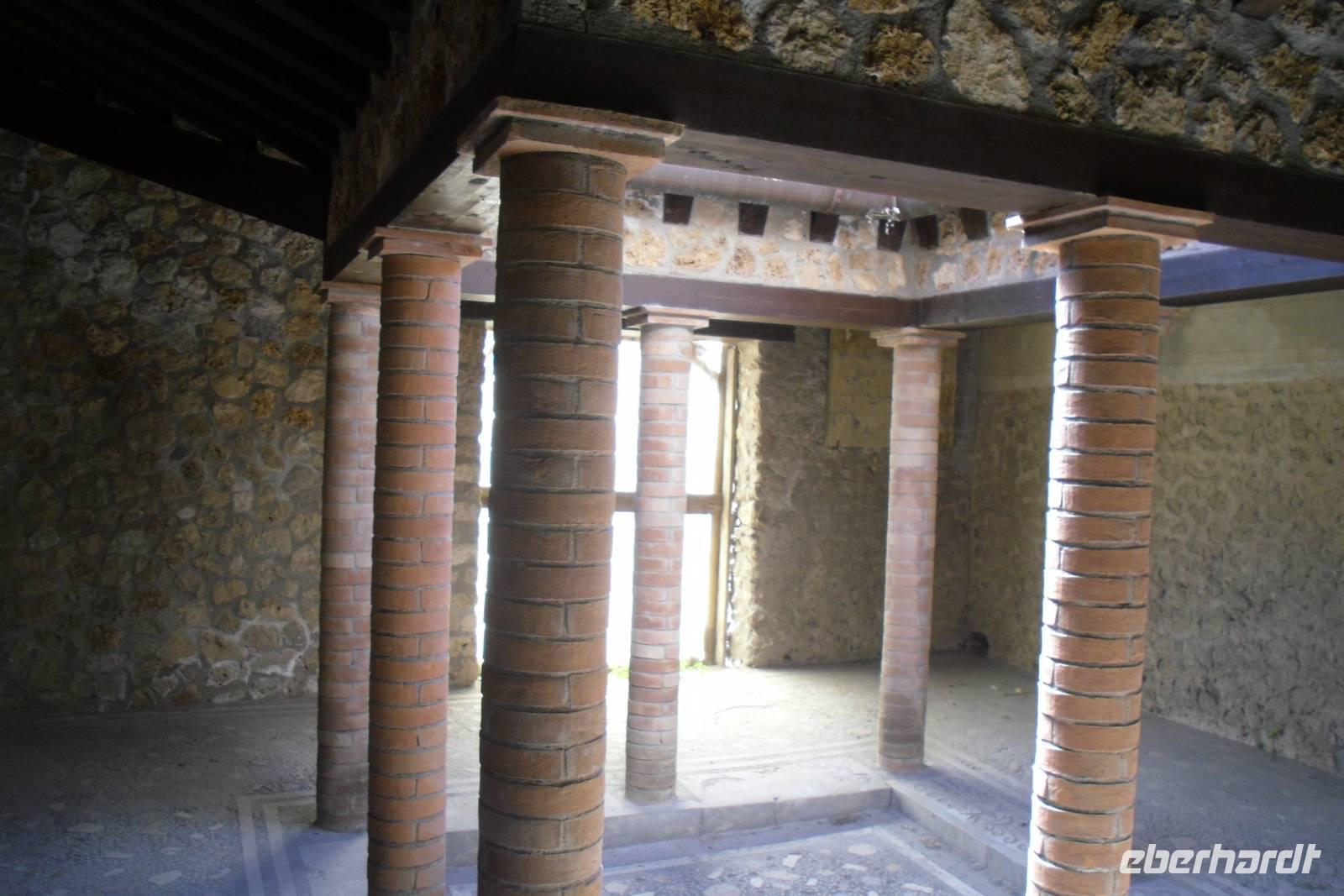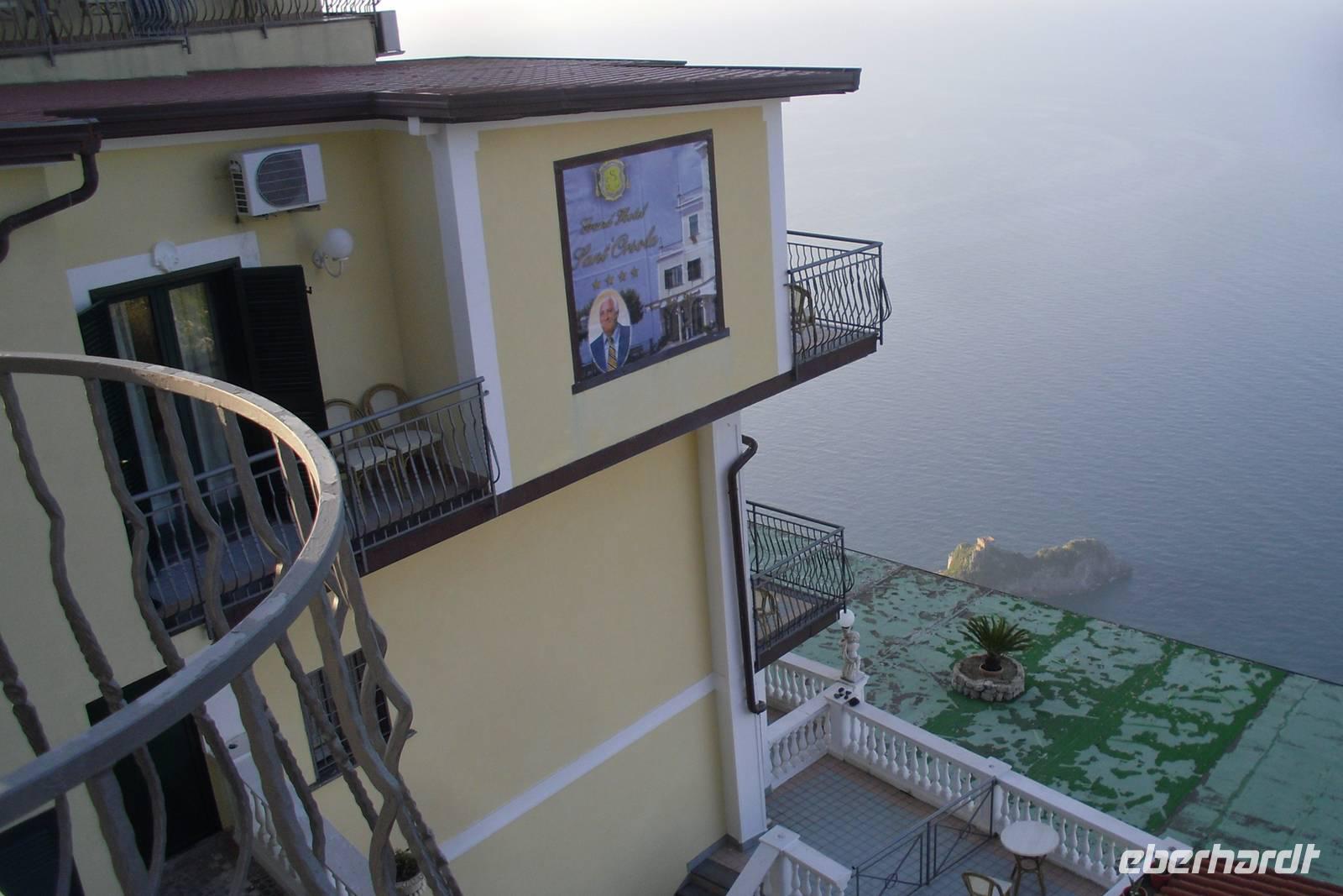 Heute hieß es "Arrividerci Roma" - wir fuhren weiter in den Süden und zwar in Richtung Neapel. Schon von weitem sahen wir, dass der heutige Vesuv eigentlich zwei Gipfel hat, nämliche den Monte Somma, den Rest des alten Vesuv, der beim Ausbruch 79 n. Chr. regelrecht explodiert ist und den 1.280 Meter hohen eigentlichen Gipfel des Vesuvs. Der Bus brachte uns bis auf knapp 1.000 m hinauf, die restlichen etwa 300 Höhenmeter mussten wir zu Fuß zurücklegen. Das erste Drittel war ziemlich steil, dann ging es gemächlicher voran, nach reichlich einer halben Stunde standen wir am Kraterrand. Der Berg scheint völlig zu ruhen, wir sahen nur ein paar Dampfquellen. Umso erstaunlicher ist für uns die Tatsache, dass dieser Vulkan ein Pulverfass ist - der letzte Ausbruch war 1944, das ist lange her. Experten sagen, dass ein gewaltiger Gesteinspfropfen den Krater versperrt und die vulkanischen Kräfte sich somit aufstauen, je länger der Berg ruhig bleibt, desto heftiger wird eines Tages die Eruption sein. Etwa 700.000 Neapolitaner leben weniger als zehn Kilometer vom Krater entfernt, jedem ist die Gefahr bewusst, man verdrängt sie allerdings permanent. Die vulkanische Erde ist sehr fruchtbar und sichert den Bewohnern gute Einnahmen in der Landwirtschaft. Am frühen Nachmittag erreichten wir das nahe gelegene Pompei, wo wir unseren sympathischen Führer Angelo trafen. Die archäologische Zone von Pompei ist heute ein riesiges Freilichtmuseum römischer Lebensweise. Pompei ist eine Stadt, die innerhalb von Stunden von ihren Bewohnern verlassen wurde und dann bis zu ihrer Ausgrabung keine Veränderung mehr erfuhr. Mit der Katastrophe des Jahres 79 hatte niemand gerechnet. Das schwere Erdbeben 16 Jahre zuvor signalisierte nach heutigen Erkenntnissen wahrscheinlich das Ende einer langen Ruhephase des Vulkans, denn auch in späterer Zeit waren Ausbruchsperioden fast immer von Erdbeben begleitet oder vorangekündigt. Das ausgegrabene Pompei zeigt deutliche Spuren des Erdbebens und überall in der Stadt weisen Mörtelhaufen und Baumaterial auf den noch andauernden Wiederaufbau hin. Es ist für uns heute unvorstellbar, aber man muss sich vorstellen, dass im Jahre 79 der obere Teil des Vesuvs unter dem Druck der aufsteigenden Gase regelrecht explodierte. Über dem Berg stand eine riesige, wie eine Pinie geformte Aschenwolke, die dann auf die Umgebung, besonders auf Pompei nieder regnete. Der Untergang Pompeis erfolgte keineswegs innerhalb von Minuten, sondern dauerte Stunden und Tage, so dass mit Sicherheit der größte Teil der Einwohner zumindest das nackte Leben retten konnte. Schließlich erstickten hochgiftige Gase und die sich meterhoch auftürmenden heißen Vulkanaschen alles Leben. Was jetzt noch an lebenden Wesen zurückgeblieben war, wurde von der Asche wie von einer Gussform eingehüllt, Fleisch und Knochen verbrannten und wurden von ätzenden, scharfen Mineralsalzen zerfressen - ein Hohlraum entstand. Während der Ausgrabungen wurden viele dieser Hohlräume mit Gips ausgegossen und wir haben heute ein makaber-plastisches Bild des Todeskampfes der Zurückgebliebenen: Hunde, Gefangene, Zögernde, die noch möglich viel von ihrem Besitz retten wollten, wahrscheinlich auch Plünderer. Pompei ist einzigartig - wir gingen durch Straßen, an Geschäften, Restaurants und Bädern vorbei, bis wir schließlich das Freudenhaus erreichten; ja, es ist nicht umsonst das älteste Gewerbe der Welt und selbst bei den Römern gab es bereits diese Etablissements. Nach dieser interessanten Führung in Pompei brachen wir nach Agerola auf, wo wir bereits im Grand Hotel "Sant´Orsola" erwartet und herzlich begrüßt wurden. Das Grand Hotel "Sant'Orsola" liegt auf ca. 600 Metern Höhe genau über der Amalfitanischen Küste, der Ausblick auf die Amalfiküste ist von hier aus einzigartig! Nach einem schmackhaften Abendessen ging wiederum ein eindrucksvoller Tag zu Ende. Manch einer ließ sich anschließend noch von einem der sogenannten "Super-Sonder-Lockangebote" von unserem Hotelier Stefano inspirieren und ließ den Abend bei einem Getränk an der Hotelbar ausklingen.