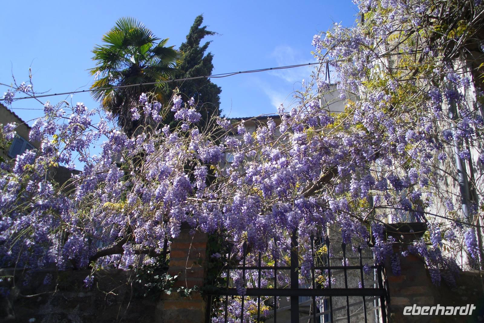 Nachdem unsere Reisegruppe mit 26 Gästen vorerst komplett war, führte uns die Fahrt vorbei an Bayreuth, Nürnberg, Ingolstadt und München in Richtung Inntal. Gegen 13.30 Uhr passierten wir bereits die Innbrücke zwischen Kiefersfelden und Kufstein und damit auch die deutsch-österreichische Grenze. Durch das wunderschöne Inntal und vorbei an Innsbruck ging es nun hinauf zum Brennerpass, den mit 1.375 Metern niedrigsten Übergang über die Hauptkette der Alpen und seit 1919 (Frieden von St. Germain) die österreichisch-italienische Grenze. Jetzt fuhren wir durch das Südtiroler Eisacktal, vorbei an zahlreichen Burgen hinunter nach Bozen. Weiter in Richtung Süden und durch das Etschtal, teilweise auch parallel zur Südtiroler Weinstraße kamen wir zur sogenannten „Salurner Klause" - dies ist eine Engstelle des Etschtales und gleichzeitig die Grenze zwischen Südtirol und dem Trentino; des weiteren auch eine Sprachgrenze. In Südtirol ist Deutsch neben dem Italienischen und Ladinischen eine Amtssprache, im Trentino hingegen wir nur Italienisch gesprochen. Nun fuhren wir noch an Trient vorbei und letztendlich verließen wir bei Rovereto die Brennerautobahn, wir wollten ja erst einmal zum Gardasee zur Zwischenübernachtung! Gegen 18 Uhr kamen wir in unserem Hotel „Alberello" in Riva del Garda an. Das kleine familiengeführte Hotel liegt etwa knapp dreißig Gehminuten vom See entfernt. Zum Abendessen ließen wir uns ein leckeres 3-Gänge-Menü schmecken und natürlich durfte hier die typische italienische Pasta nicht fehlen! Dazu ein Glas Hauswein und müde fielen alle ins Bett.