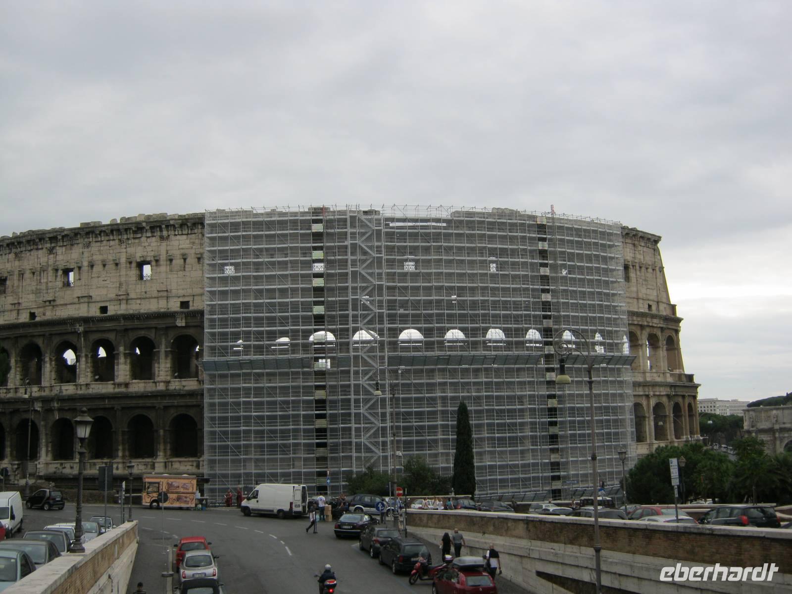 Unser Streifzug durch Rom - ausgestattet mit modernen Audiogeräten - begann am nächsten Tag mit Maria Theresa, die wir aus praktischen Gründen an der Piazza Venezia aufnahmen, mit der Lateransbasilika und einer Stadtrundfahrt (u.a. Caracallathermen und Circus Maximus), um uns einen Überblick zu verschaffen. Kreuz und quer ging es dann vom Kolosseum an den Foren entlang über den Kapitolinischen Hügel und die Piazza Venezia mit dem Nationalmonument (wegen der Form „Schreibmaschine" genannt) zum Pantheon, Trevi-Brunnen und Piazza Navona bis hin zum Fuße der Spanischen Treppe. Nach einer solchen tour de force hat man sich einen guten Espresso verdient; wer wollte, konnte denselben in Goethes Stammcafé nehmen. Das Restaurant, in dem wir unser Abendessen einnahmen, befand sich übrigens ganz in der Nähe. Unser zunächst guter Eindruck von römischer Gastfreundschaft wurde ein wenig getrübt, als man uns hinauskomplimentierte, weil schon die nächste Gruppe wartete. Den Rückweg zum Hotel genossen wir als Lichterfahrt.