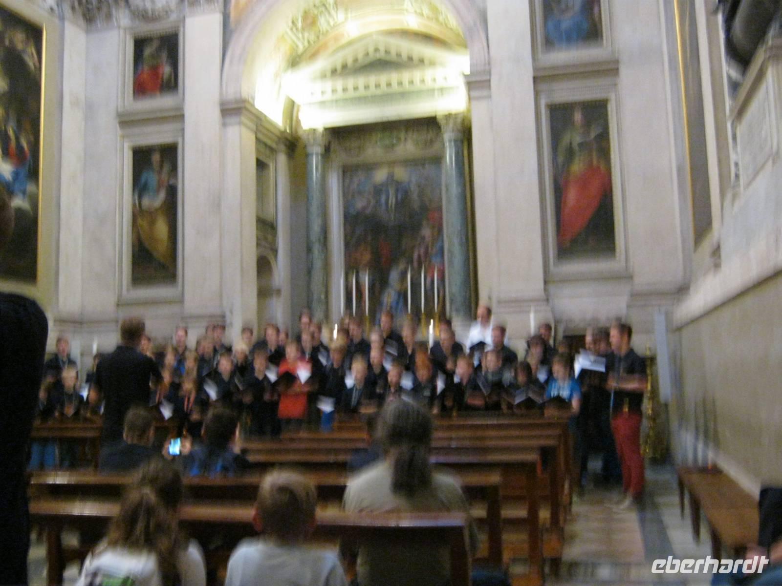 Der nächste Tag, den wir mit Bus und Metro absolvierten (das war auch ein authentisches Erlebnis!) stand ganz im Zeichen der Kirchen. Beginnend mit Santa Maria Maggiore arbeiteten wir uns bis zum Vatikan durch, dem kleinsten Staat der Welt und als Sitz des Papstes Zentrum der katholischen Christenheit. Seine Museen haben unermessliche Schätze in ihrem Fundus. Und der Petersdom wirkt immer wieder - selbst auf mich, der ich schon viele Male das Vergnügen hatte - einzigartig. So ist er ja auch konzipiert. Wer hätte vermutet, dass es dort auch ein Ehrengrab des großen Canova für die letzten schottischen Thronprätendenten aus dem Hause Stuart gibt? Die Schweizergarde, einst an mehreren europäischen Höfen zu finden, gibt es nur noch im Vatikan. Ihre Uniformen sind eine Augenweide. Der Weg zum Restaurant führte uns an der Engelsburg vorbei. Dort schien man uns zunächst gar nicht zu erwarten, aber dann servierte uns eine typisch-italienische „Mamma" ein köstliches Abendessen mit mehreren Gängen Pasta und knackigem Salat.