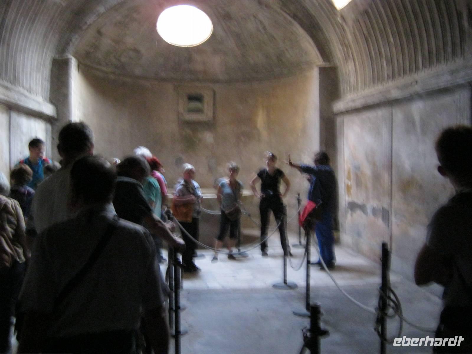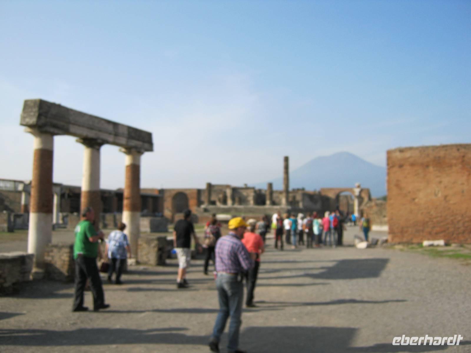 Vorbei an den legendären Albaner Bergen und Monte Cassino, einer Stätte mit hohem Symbolgehalt, ging es in den Großraum Neapel, der nicht nur optisch vom Vesuv beherrscht wird sondern auch seit Jahrtausenden permanent bedroht. Wenn der besterforschte und dennoch unberechenbare Vulkan schläft, kann man ganz gefahrlos sofern man sich den Aufstieg zumutet aber doch mit einem gewissen Nervenkitzel in seinen Krater schauen. Ein klein wenig geraucht hat er doch! Einige haben auch den berühmten Wein von seinen Hängen mit dem poetischen Namen „Tränen Christi" probiert. Was es bedeutet, wenn der Alte zornig wird, haben wir am erschütternden Beispiel von Pompeji mit eigenen Augen gesehen; ein Eindruck der wohl immer im Gedächtnis haften wird, wenn sich auch der örtliche Führer nicht gerade ein Bein ausgerissen hat.