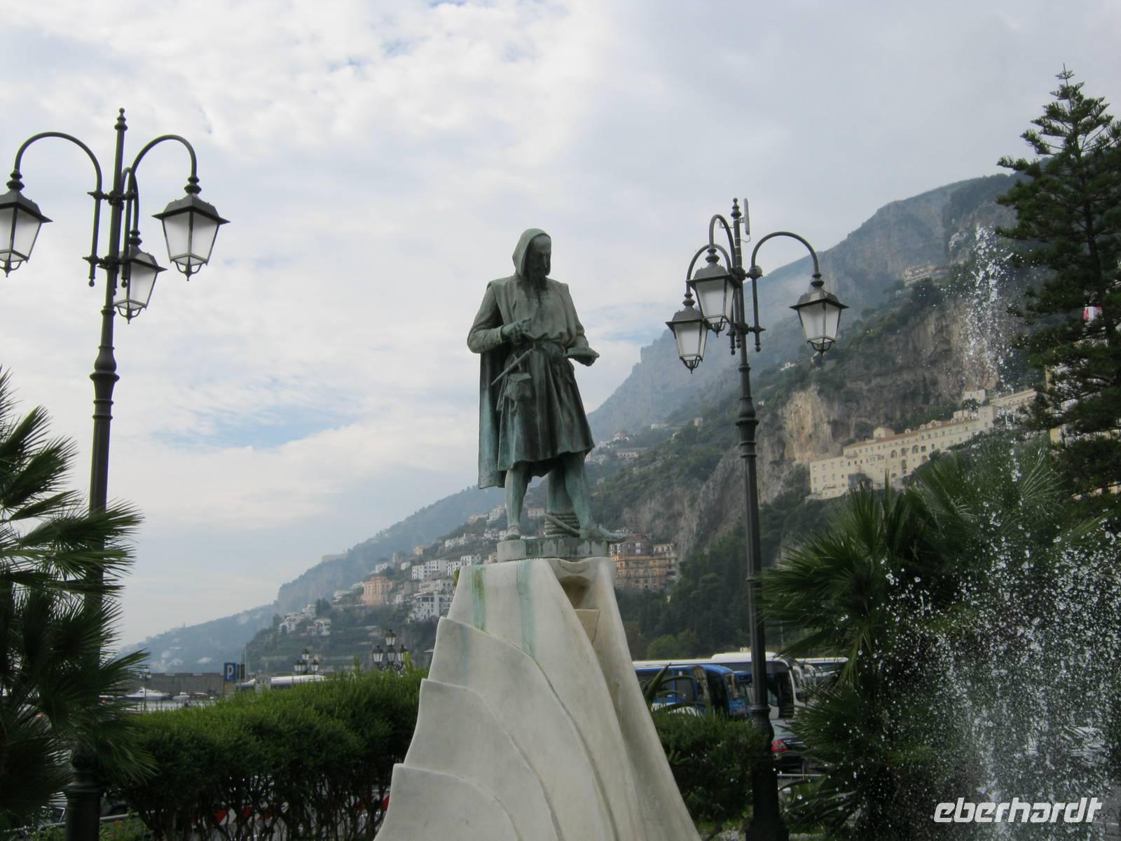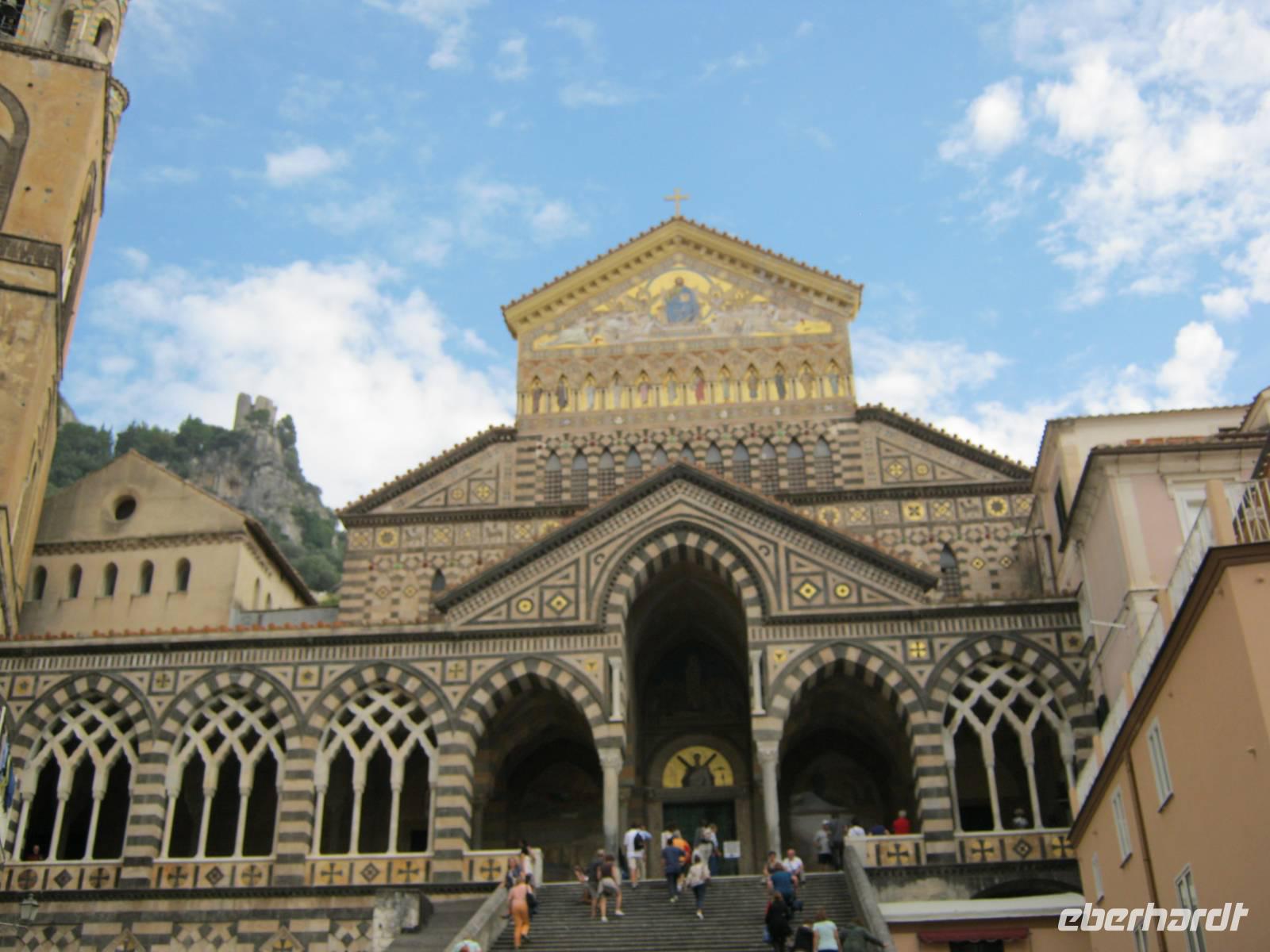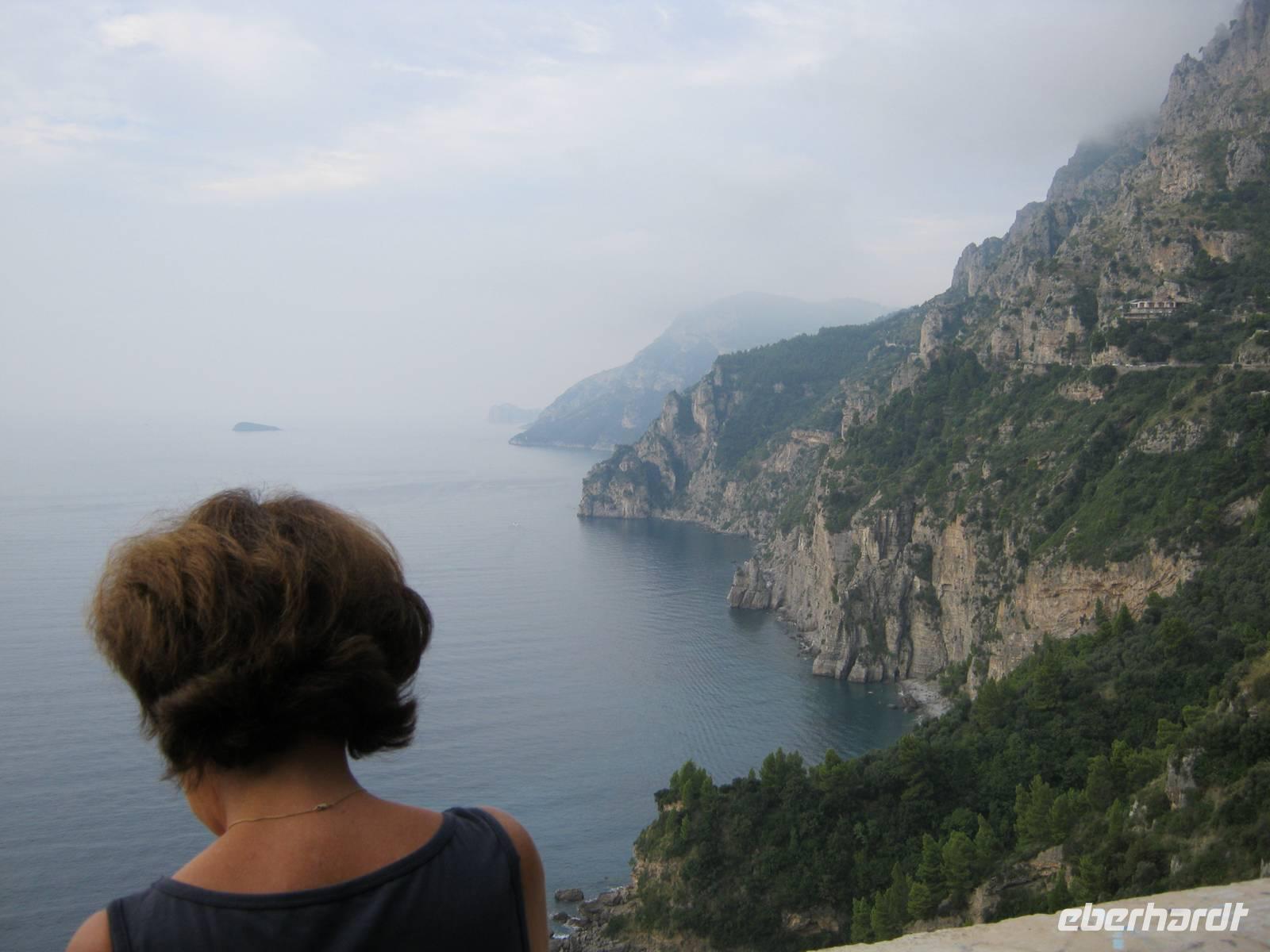 Die Fahrt auf der Amalfitana zwischen Himmel und Abgrund (seit einigen Jahren nur mit speziellen einheimischen Bussen befahrbar!) führt über Positano nach Amalfi. Allein schon die Namen - wie viele Dichter haben sie besungen! Und wer würde angesichts des pittoresken Städtchens Amalfi vermuten, dass dieses im Mittelalter neben Venedig und Genua zu den maritimen Großmächten zählte? Nur der Dom mit seiner majestätischen Treppe erinnert noch daran. Bezeichnenderweise rühmt man sich, dass der Erfinder des Kompasses aus Amalfi stammen soll. In der Freizeit haben einige Gäste (und der RL!) auch die Möglichkeit zum Baden genutzt. Das Wasser war wunderbar erfrischend. Am Abend gab es dann noch eine Überraschung: wir unternahmen einen Spaziergang zu dem alten Castello Lauritano in Agerola, das gerade renoviert und zu einem Luxushotel umgebaut wird, wo unser perfekter Gastgeber Stefano dann noch eine degustazione di vino stattfinden ließ.