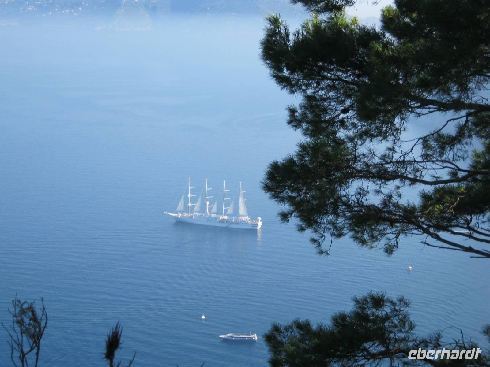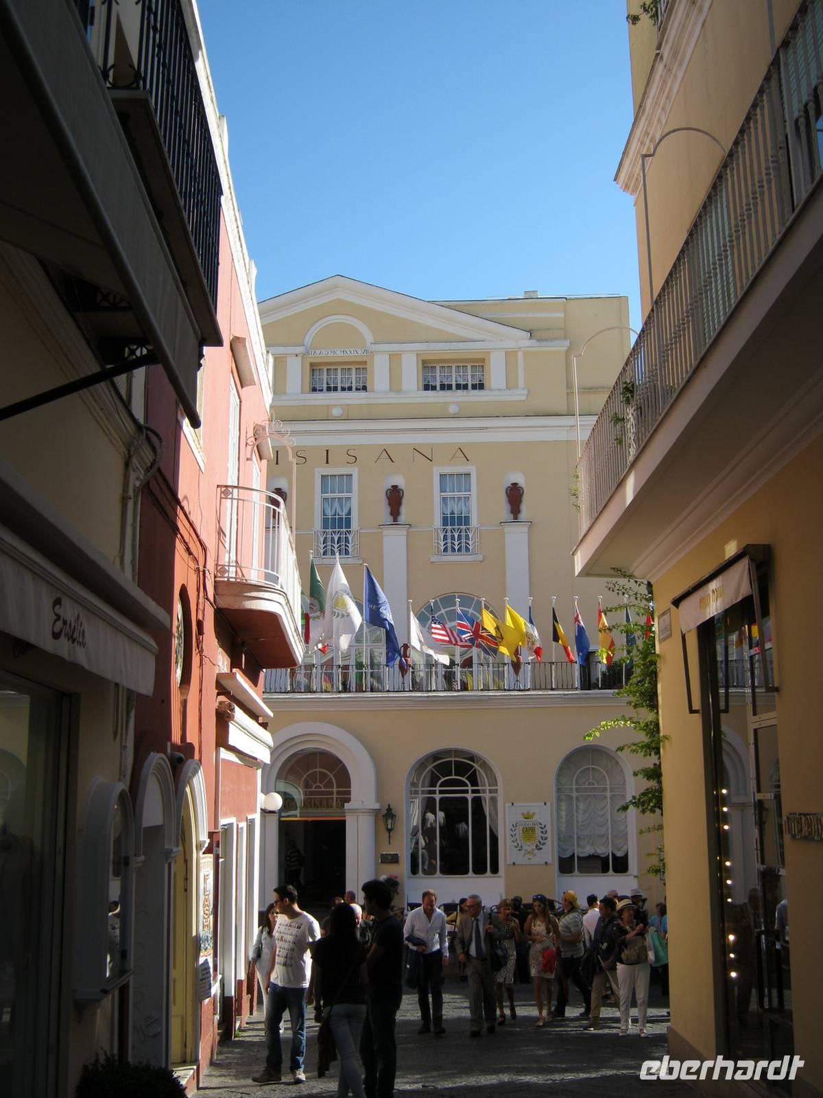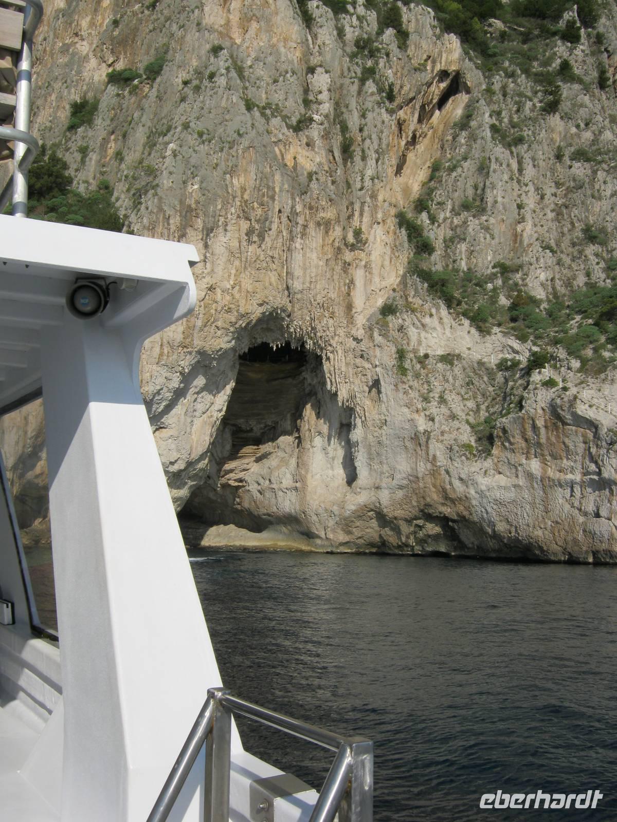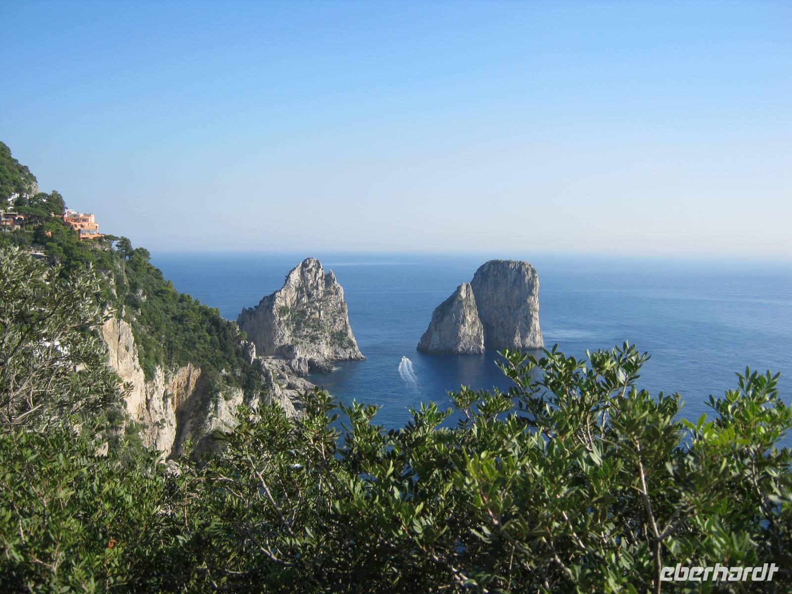 Glücklicherweise hatten wir für unseren fakultativen Ausflug nach Sorrent und Capri, der von der bekannten und kompetenten Dagy begleitet wurde, noch schönes Wetter (selbst die Einheimischen sagten, daß es für die Jahreszeit außergewöhnlich gut war), so dass wir auch mit einem kleinen Schiff eine Rundfahrt um die Insel machen konnten, bei der wir all die Attraktionen wie die diversen Grotten und die Faraglioni von der Wasserseite aus nächster Nähe sahen. Dann ging es in sausender Fahrt mit den speziellen Inselbussen hinauf zunächst nach Anacapri, wo es neben der Villa Munthe noch Limoncello zu kosten gab. Wer wollte konnte mit dem Lift noch höher hinaus auf den Monte Solaro, der einen unvergleichlichen Rundblick bietet. Der Hauch von Mondänität umweht Capri noch immer - besonders zwischen Piazzetta und Hotel Quisisana im Hauptort -, auch wenn tagsüber ganze Massen von Touristen sich auf der Insel drängen. Bei Sonnenuntergang waren wir schon wieder weg und können also Rudi Schurickes Behauptung nicht verifizieren.