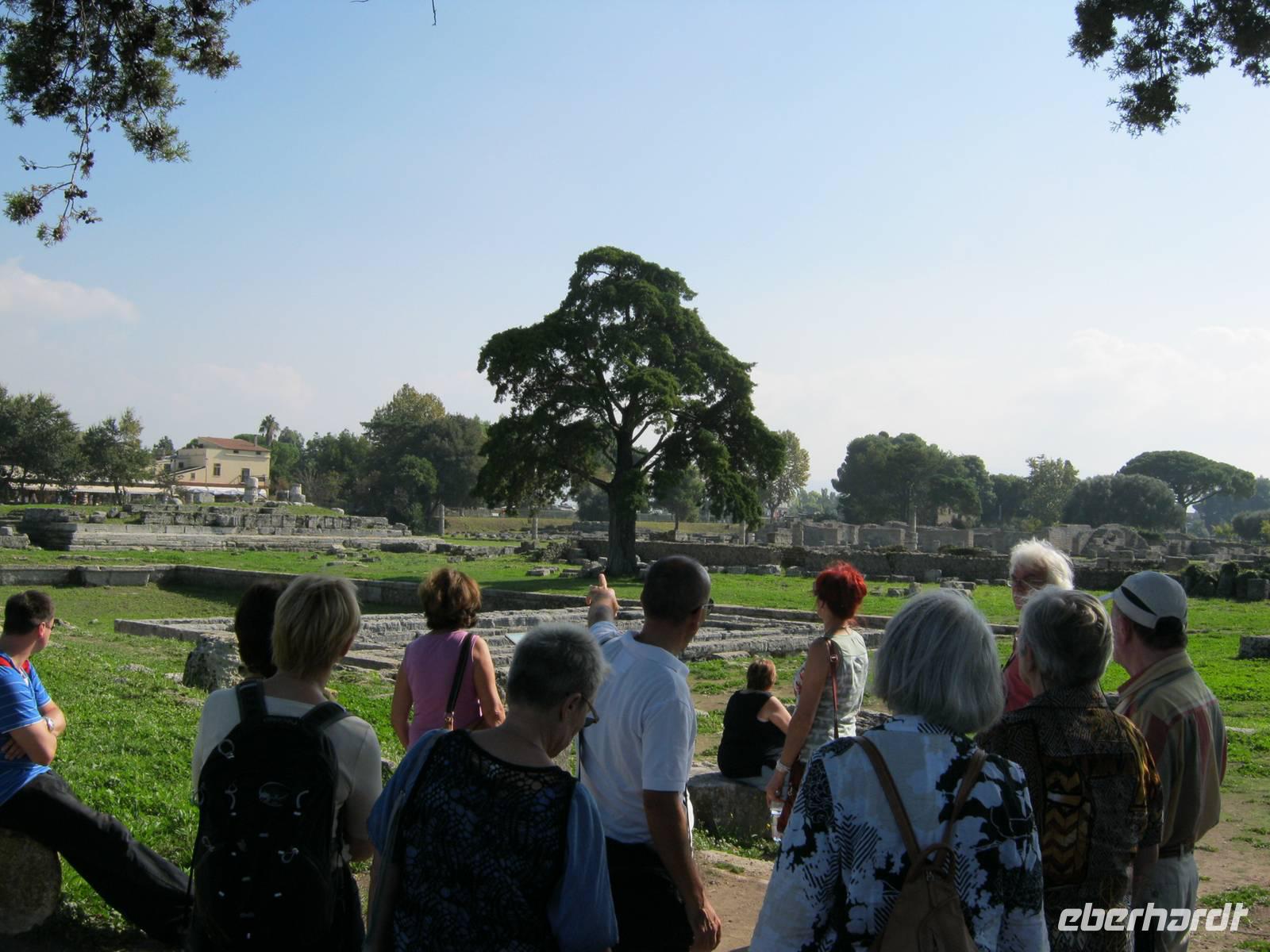 Unser letzter Tag im Süden war noch einmal ein echter Höhepunkt. Wir besuchten zunächst einen ökologischen Musterbetrieb, der den berühmten Büffelmozzarella herstellt. Den Tieren geht es da wirklich gut und uns auch: wir kosteten Mozzarella und Joghurt. Dann Archäologie vom Feinsten: Ich habe schon viele Ausgrabungen besucht, aber wie uns Angelo dann Paestum zeigte und das Schicksal der alten griechischen Kolonie schilderte, das war schon meisterhaft und der Besuch im Museum ein spannender Genuss.