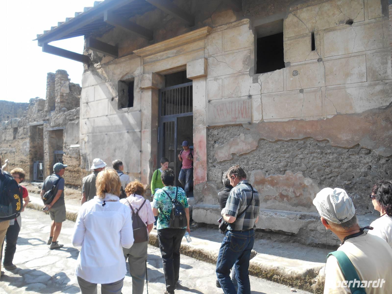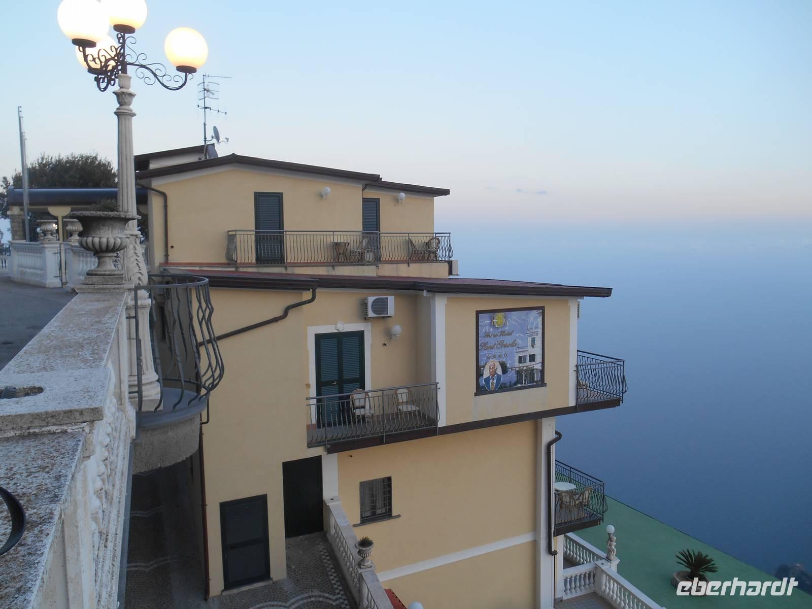 Heute hieß es "Arrividerci Roma" - wir fuhren weiter in den Süden und zwar in Richtung Neapel. Schon von weitem sahen wir, dass der heutige Vesuv eigentlich zwei Gipfel hat, nämliche den Monte Somma, den Rest des alten Vesuv, der beim Ausbruch 79 n. Chr. regelrecht explodiert ist und den 1.280 Meter hohen eigentlichen Gipfel des Vesuvs. Der Bus brachte uns bis auf knapp 1.000 m hinauf, die restlichen etwa 300 Höhenmeter mussten wir zu Fuß zurücklegen. Das erste Drittel war ziemlich steil, dann ging es gemächlicher voran, nach reichlich einer halben Stunde standen wir am Kraterrand. Der Berg scheint völlig zu ruhen, wir sahen nur ein paar Dampfquellen. Umso erstaunlicher ist für uns die Tatsache, dass dieser Vulkan ein Pulverfass ist - der letzte Ausbruch war 1944, das ist lange her. Experten sagen, dass ein gewaltiger Gesteinspfropfen den Krater versperrt und die vulkanischen Kräfte sich somit aufstauen, je länger der Berg ruhig bleibt, desto heftiger wird eines Tages die Eruption sein. Etwa 700.000 Neapolitaner leben weniger als zehn Kilometer vom Krater entfernt, jedem ist die Gefahr bewusst, man verdrängt sie allerdings permanent. Die vulkanische Erde ist sehr fruchtbar und sichert den Bewohnern gute Einnahmen in der Landwirtschaft. Am frühen Nachmittag erreichten wir das nahe gelegene Pompei, wo wir unseren sympathischen Führer Angelo trafen. Die archäologische Zone von Pompei ist heute ein riesiges Freilichtmuseum römischer Lebensweise. Pompei ist eine Stadt, die innerhalb von Stunden von ihren Bewohnern verlassen wurde und dann bis zu ihrer Ausgrabung keine Veränderung mehr erfuhr. Mit der Katastrophe des Jahres 79 hatte niemand gerechnet. Das schwere Erdbeben 16 Jahre zuvor signalisierte nach heutigen Erkenntnissen wahrscheinlich das Ende einer langen Ruhephase des Vulkans, denn auch in späterer Zeit waren Ausbruchsperioden fast immer von Erdbeben begleitet oder vorangekündigt. Das ausgegrabene Pompei zeigt deutliche Spuren des Erdbebens und überall in der Stadt weisen Mörtelhaufen und Baumaterial auf den noch andauernden Wiederaufbau hin. Es ist für uns heute unvorstellbar, aber man muss sich vorstellen, dass im Jahre 79 der obere Teil des Vesuvs unter dem Druck der aufsteigenden Gase regelrecht explodierte. Über dem Berg stand eine riesige, wie eine Pinie geformte Aschenwolke, die dann auf die Umgebung, besonders auf Pompei nieder regnete. Der Untergang Pompeis erfolgte keineswegs innerhalb von Minuten, sondern dauerte Stunden und Tage, so dass mit Sicherheit der größte Teil der Einwohner zumindest das nackte Leben retten konnte. Schließlich erstickten hochgiftige Gase und die sich meterhoch auftürmenden heißen Vulkanaschen alles Leben. Was jetzt noch an lebenden Wesen zurückgeblieben war, wurde von der Asche wie von einer Gussform eingehüllt, Fleisch und Knochen verbrannten und wurden von ätzenden, scharfen Mineralsalzen zerfressen - ein Hohlraum entstand. Während der Ausgrabungen wurden viele dieser Hohlräume mit Gips ausgegossen und wir haben heute ein makaber-plastisches Bild des Todeskampfes der Zurückgebliebenen: Hunde, Gefangene, Zögernde, die noch möglich viel von ihrem Besitz retten wollten, wahrscheinlich auch Plünderer. Pompei ist einzigartig - wir gingen durch Straßen, an Geschäften, Restaurants und Bädern vorbei, bis wir schließlich das Freudenhaus erreichten; ja, es ist nicht umsonst das älteste Gewerbe der Welt und selbst bei den Römern gab es bereits diese Etablissements. Nach dieser interessanten Führung in Pompei brachen wir nach Agerola auf, wo wir bereits im Grand Hotel "Sant´Orsola" erwartet und herzlich begrüßt wurden. Das Grand Hotel "Sant'Orsola" liegt auf ca. 600 Metern Höhe genau über der Amalfitanischen Küste, der Ausblick auf die Amalfiküste ist von hier aus einzigartig! Nach einem schmackhaften Abendessen ging wiederum ein eindrucksvoller Tag zu Ende. Manch einer ließ sich anschließend noch von einem der sogenannten "Super-Sonder-Lockangebote" von unserem Hotelier Stefano inspirieren und ließ den Abend bei einem Getränk an der Hotelbar ausklingen.