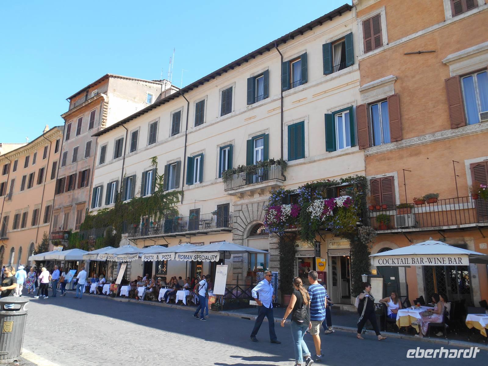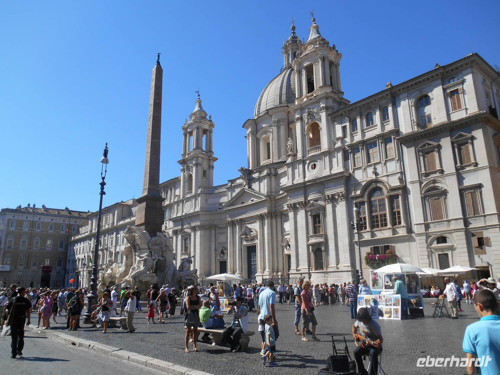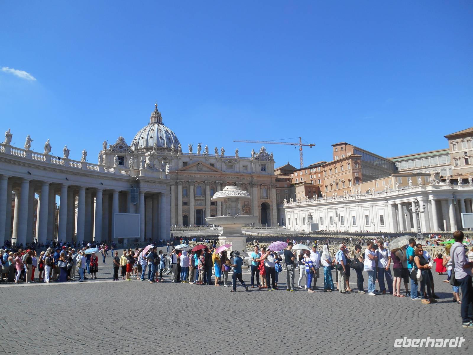 Nach dem Frühstück fuhren wir bei Sonnenschein mit öffentlichen Verkehrsmitteln in die Stadt hinein - normalerweise wollten wir gleich früh in den Petersdom! Daraus wurde allerdings nichts, denn der Papst hatte die Kirche heute Vormittag für sich in Beschlag genommenWeinend! Somit änderten wir ganz flexibel unseren Plan und erreichten gemeinsam mit unserer Stadtführerin Christina den Piazza Repubblica und besichtigten hier spontan die wirklich sehenswerte Kirche Maria degli Angeli. Von außen sieht der Bau, der ursprünglich von Michelangelo geplant wurde, ziemlich unscheinbar aus, denn die Kirche wurde in die Mitte der Ruinen ehemaliger römischer Thermen hinein gebaut. Ist man aber erst einmal drin, sieht die Sache ganz anders aus - was aber sind diese außergewöhnlichen Dinge? Ein besonderer Altar? Einzigartige Fresken? Nein, das ist es nicht. Vielmehr ist es eine Sonnenuhr gigantischer Ausmaße, die mit höchster Genauigkeit erbaut wurde. Auf 45 Meter Länge ist nämlich in den Boden der Kirche ein Meridian eingebaut, der mit wissenschaftlicher Genauigkeit den Zug der Sterne darstellt. Kunstvoll sind sowohl Tierkreiszeichen als auch Ziffern dargestellt. Oben an der Kuppel gibt es ein kleines Loch, das das Licht exakt auf den richtigen Punkt fallen lässt. Zu jeder Uhrzeit, in jedem Monat - der Einfall des Sonnenstrahls verrät sozusagen alles! Nur wenige Gehminuten von hier entfernt und wir gelangten zur Kirche Santa Maria Maggiore, eine der vier Patriarchalbasiliken Roms. Sie wurde unter Papst Sixtus III. errichtet, nachdem 431 das Konzil von Ephesus Maria, die Mutter Jesu, als Gottes Gebärerin verkündet hatte und dadurch die Marienverehrung aufgeblüht war. Weiter gelangten wir mit dem öffentlichen Linienbus zur Piazza Navona, einem herrlichen Platz inmitten der Stadt! Gian Lorenzo Bernini schuf hier im 17. Jahrhundert einen der schönsten Brunnen des Barocks, den Vier-Ströme-Brunnen (Fontana dei Quattro Fiumi). Die vier riesenhaften Flussgötter symbolisieren die vier großen Ströme: Donau, Nil, Ganges und Rio de la Plata. Unsere heutige Mittagspause verbrachten wir auf dem Campo dei Fiori, auf dem allmorgendlich ein üppiger Obst- und Gemüsemarkt abgehalten wird - ein lebhafter Platz mit sehr viel Flair! Am frühen Nachmittag kamen wir dann am Petersplatz, dem Zentrum der katholischen Christenheit, an. Ach so, wir waren ja jetzt eigentlich gar nicht mehr in Rom, sondern im Vatikan. Wenn man von hier nach ganz rechts oben schaut, sieht man das Arbeitszimmer des Papstes, letzter Stock des Apostolischen Palastes, zweites Fenster von rechts. Sonntags um zwölf spricht er hier das Angelus-Gebet. Unter den Kolonnaden des Bernini erspäht man die Schweizergarde - jawohl, immer noch echte Schweizer, und die Uniform ist noch die, welche Michelangelo entworfen hat. Am anderen Ende der Piazza, majestätisch wie ein ruhender Löwe - die Peterskirche, die wir nunmehr besichtigten. Allein der Baldachin über dem Petrusgrab ist genauso hoch wie der Palazzo Farnese, einfach gigantisch! Aber die größte Kirche der Christenheit befindet sich im kleinsten Staat der Welt, denn der Vatikan ist mit 44 Hektar Staatsgebiet nicht gewaltiger als ein mittlerer Bauernhof. Seine knapp 500 Einwohner bilden das, was man andernorts eine Dorfgemeinschaft nennen würde. Eine Kaffeebar gibt es nicht, dagegen hält der Vatikan zu 170 Staaten diplomatische Beziehungen und der Papst empfängt weitaus mehr Staatsmänner zur Audienz als die italienische Regierung zu offiziellen Unterredungen. Die katholische Kirche ist übrigens die einzige Weltreligion, deren Oberhaupt gleichzeitig unumschränkte Autorität eines souveränen Staates ist. Nach dem Passieren der Sicherheitskontrolle war es dann soweit - man ist einfach überwältigt! Der Petersdom ist die größte christliche Kirche der Welt und fasst 60.000 Menschen. Im Petersdom ist nach christlichem Glauben der Apostel Petrus begraben. Obwohl sie nicht offizieller Sitz des Papstes ist (diesen stellt die Lateranbasilika/San Giovanni in Laterano dar), hält der Papst hier fast alle seiner Messen. Die Kirche beherbergt zahlreiche Kunstwerke, zum Beispiel die "Pietà" von Michelangelo, die hinter Glas steht, da sie 1972 von einem Kirchenbesucher mit einer Axt beschädigt wurde. Im nordwestlichen Teil befindet sich die Statue des heiligen Petrus, deren Füße traditionell von den Pilgern geküsst werden. Über den Hauptaltar, dem Grab Petris, erstreckt sich ein 30 Meter hoher Baldachin aus Bronze, der von Bernini entworfen wurde. Wir trafen uns alle nach etwas Freizeit am Petersplatz wieder und schlenderten weiter in Richtung Engelsburg, einem ursprünglichen Grab-Bau für Kaiser Hadrian (117-138 n. Chr.). Den heutigen Namen erhielt das ehemalige Hadrianeum, als im Jahre 590 Papst Gregor der Große eine göttliche Vision hatte: ein Engel erschien ihm über dem Mausoleum und kündigte das Ende der damals herrschenden Pest an, indem er sein Schwert in die Scheide steckte - heute so dargestellt in der bronzenen Engelsstatue aus dem Jahre 1753 auf der Spitze des Kastells. Die anschließende Freizeit nutzten die meisten Gäste schließlich für die Innenbesichtigung der Engelsburg - oben angekommen, wird man übrigens mit einem herrlichen Blick über die Stadt belohnt! Nach einem schmackhaften Pasta-Abendessen in der Nähe der Engelsburg ging es am Abend mit öffentlichen Verkehrsmitteln zum Hotel zurück.