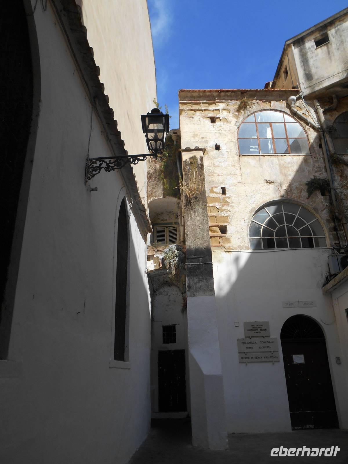 Da unser Bus nicht auf der Amalfiküsten-Straße fahren darf (er ist mit 12 Metern Länge nicht zugelassen), fuhren wir heute bei strahlendem Sonnenschein mit einem einheimischen Bus samt italienischen Buschauffeur Luigi auf einer der schönsten Küstenstraßen Italiens - die Straße ist streckenweise in die fast senkrecht abbrechende Felsküste eingehauen. Ein Großteil unserer Gruppe unternahm eine Schifffahrt ab/an Amalfi. Auf beiden Seiten eines schmalen Tals steigen die Häuser den Berg hoch. Ihre Bauweise ist städtisch mit 3 - 5 Stockwerken, am Hang stehen sie übereinander gebaut. Amalfi war im Mittelalter eine der reichen und mächtigen vier Seerepubliken (neben Pisa, Genua und Venedig). Die Amalfitaner wurden durch den Fernhandel mit dem Orient, Ägypten, Konstantinopel, Südfrankreich und Norditalien reich, hatten eigene Handelsniederlassungen und eigene Wohnviertel in vielen Städten des Orients und auch in Süditalien und Sizilien. Das Seebeben Ende des 14. Jahrhunderts, die korrupte Herrschaft des spanischen Vizekönigs in Neapel, die Türkengefahr und noch mehr die Verlagerung der Handelswege nach der Entdeckung Amerikas machten aus Amalfi ein armes, von der Außenwelt abgeschnittenes Nest hinter den Bergen. Erst die Entdeckung durch den Tourismus nach 1850 brachte Änderung. Wir hatten genügend Zeit, um den Ort ganz individuell zu entdecken. Besonders sehenswert ist übrigens der Dom; Fassade und Treppe sind nachempfunden, der Turm ist allerdings echt; es gibt eine schöne Bronzetür aus Konstantinopel, das Innere des Doms ist barockisiert. Am Nachmittag führte uns die Straße über Furore direkt nach Agerola zurück. Wir ließen diesen wunderschönen Tag am späten Nachmittag mit einem Spaziergang zum Castello Lauritano in Agerola ausklingen - von hier aus bot sich uns ein toller Blick auf Amalfi und Ravello. Dazu gab es Kräuterschnaps und nette Unterhaltungen - die Stimmung war ausgelassen!